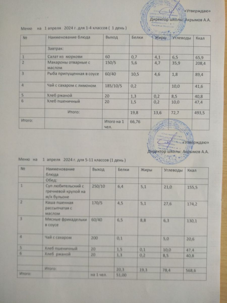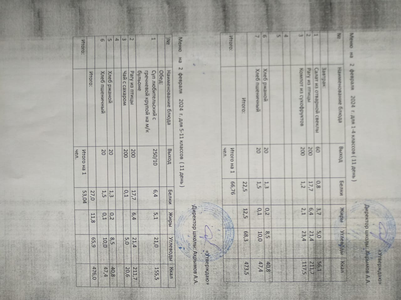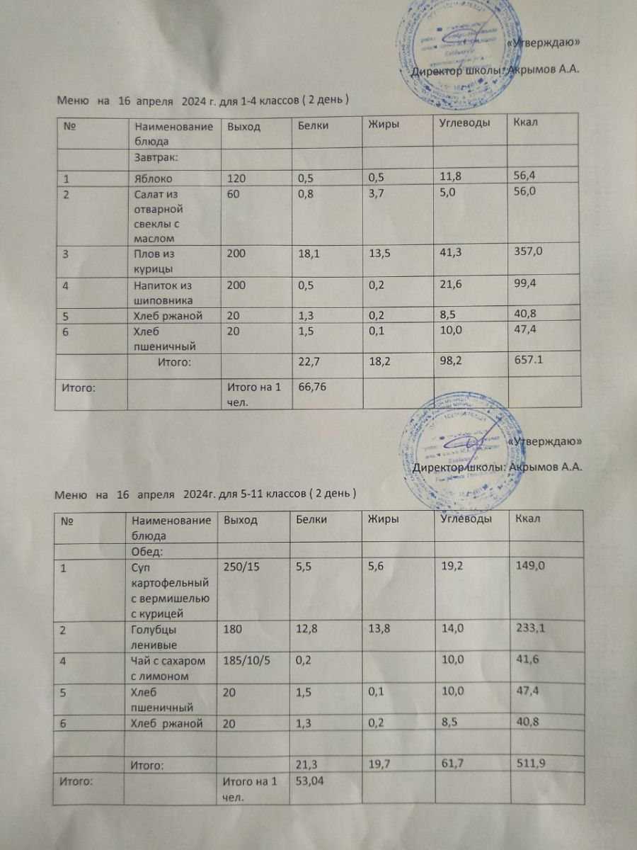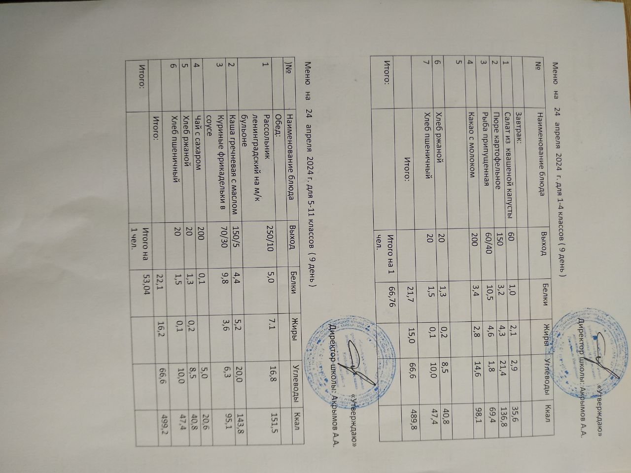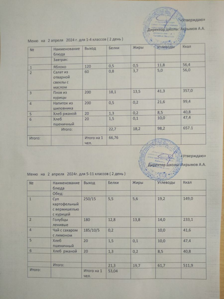 Ежедневное меню учащихся 1-4, 5-11 классов на 2023-2024 уч.год