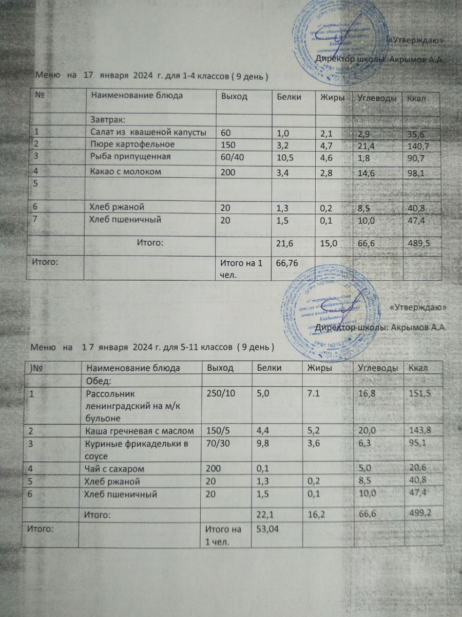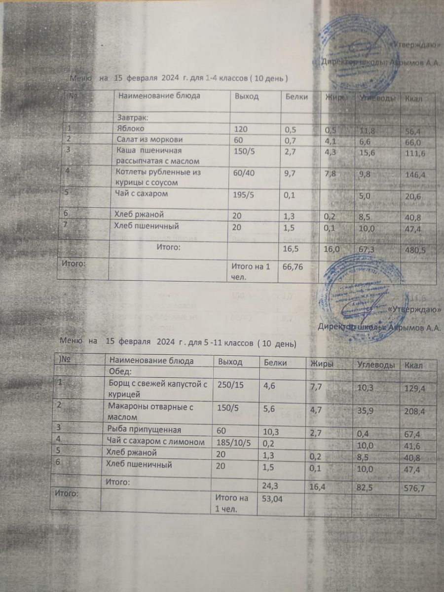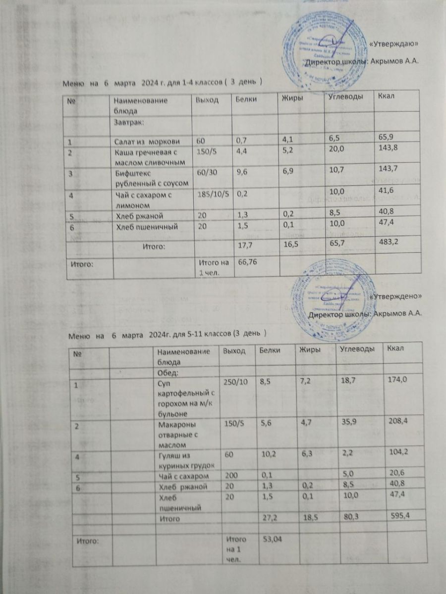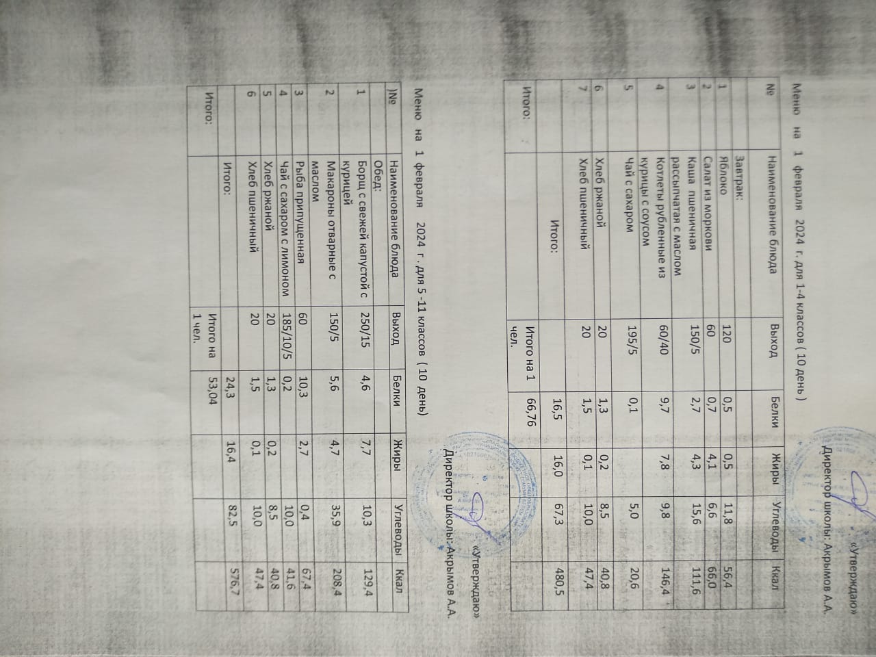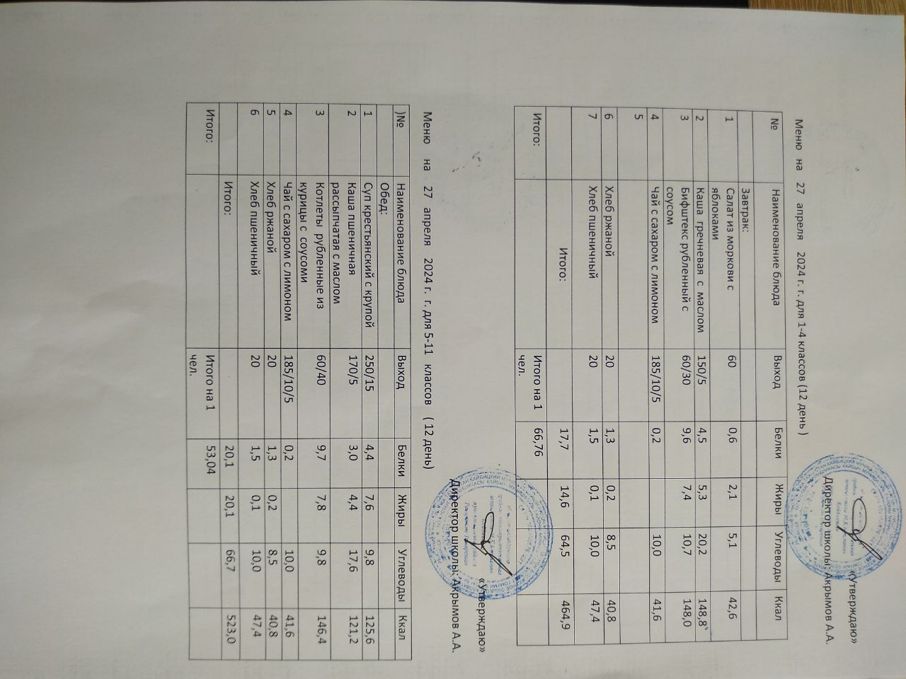 Ежедневное меню учащихся 1-4, 5-11 классов на 2023-2024 уч.год