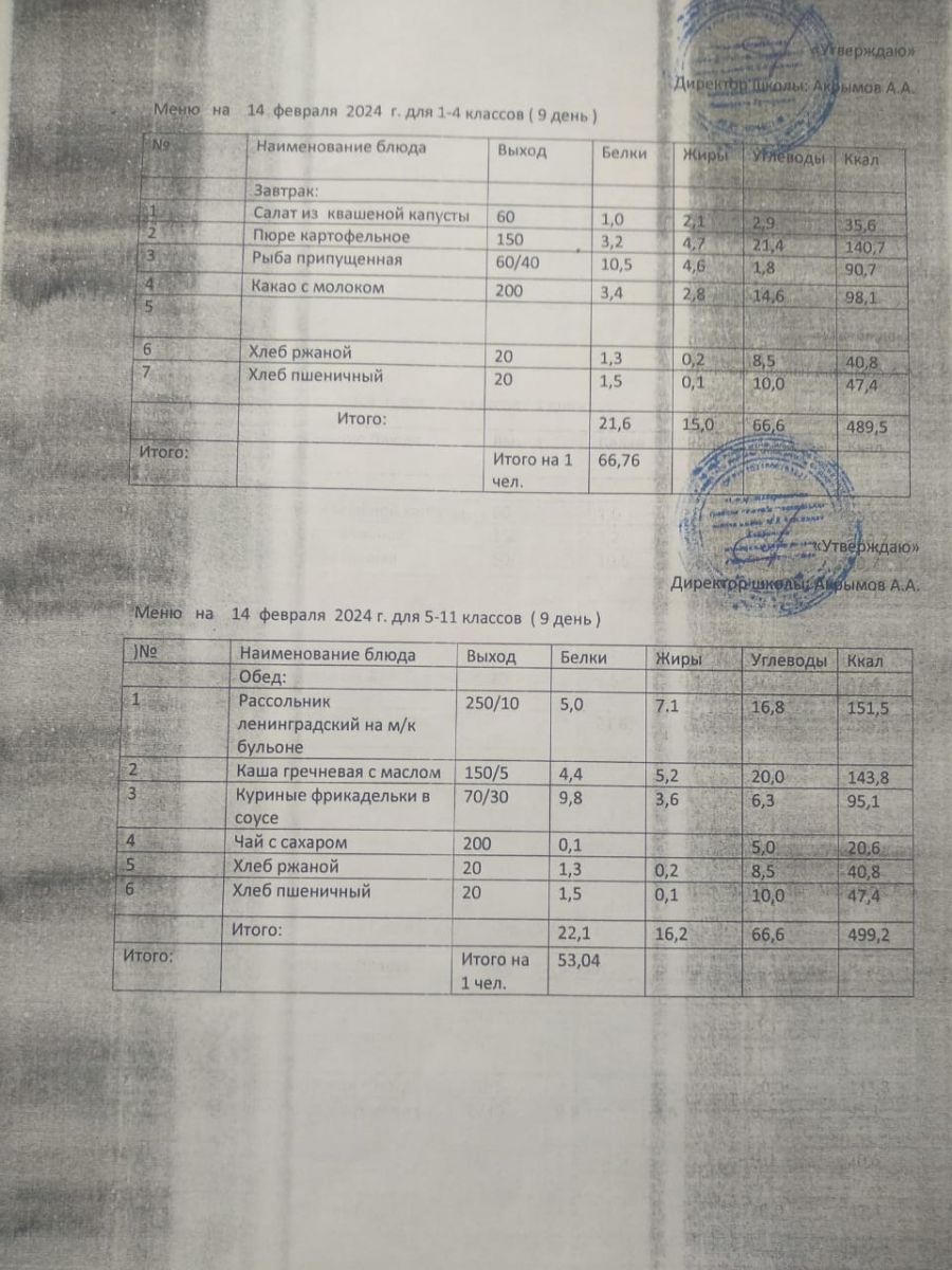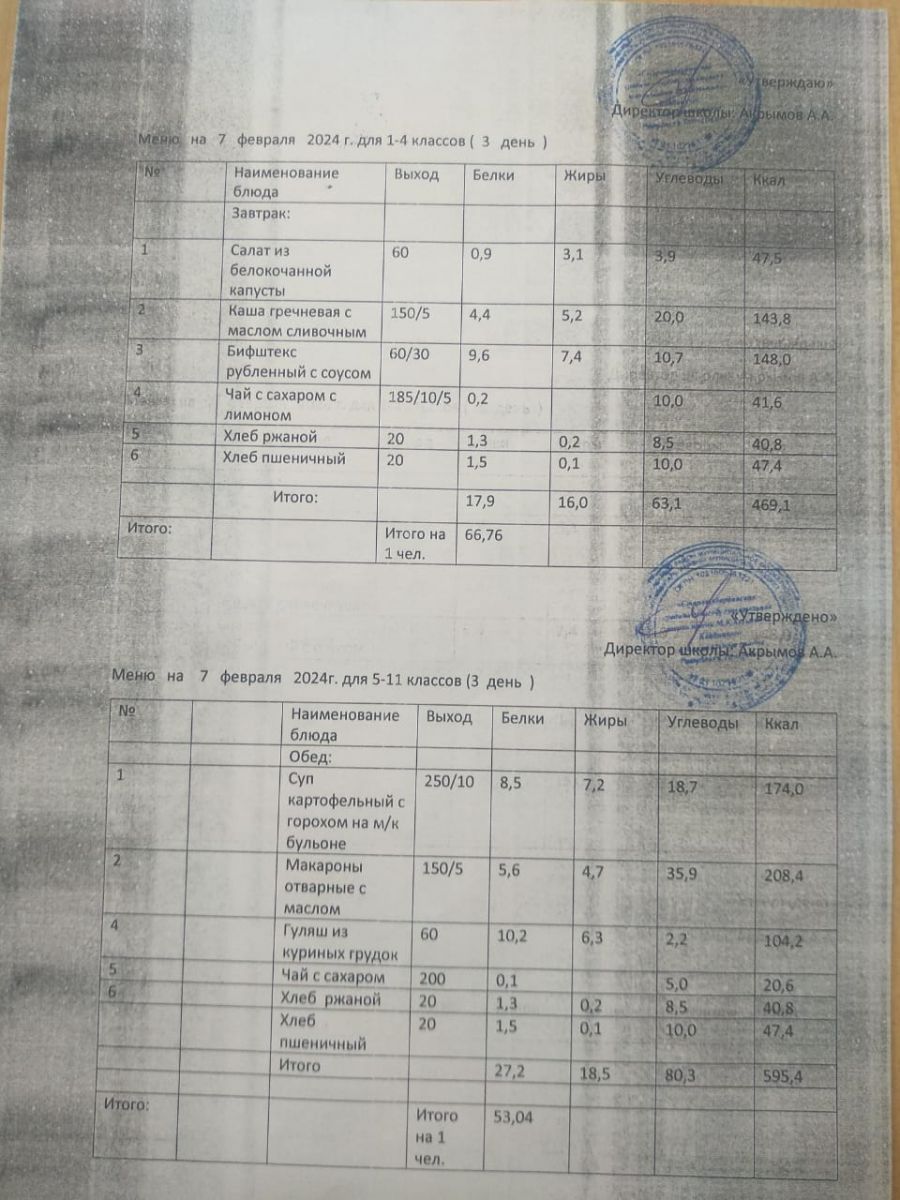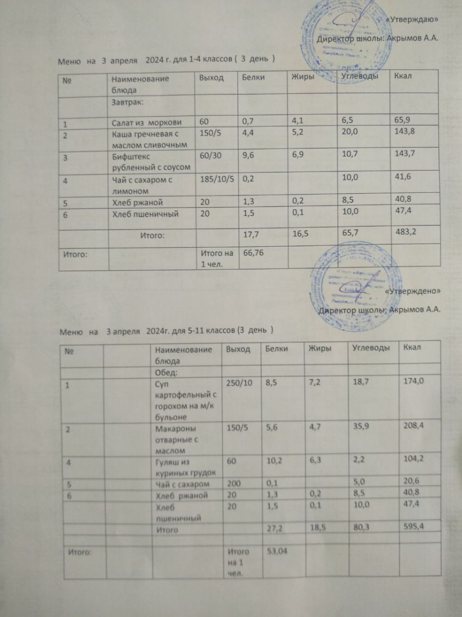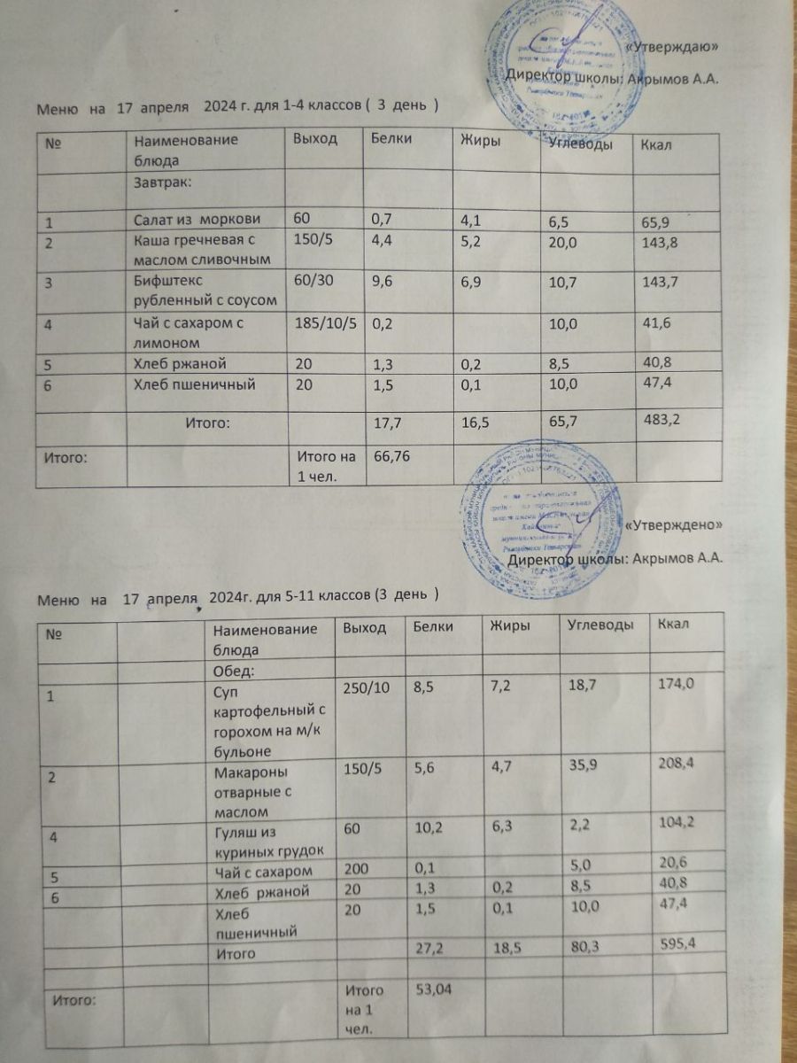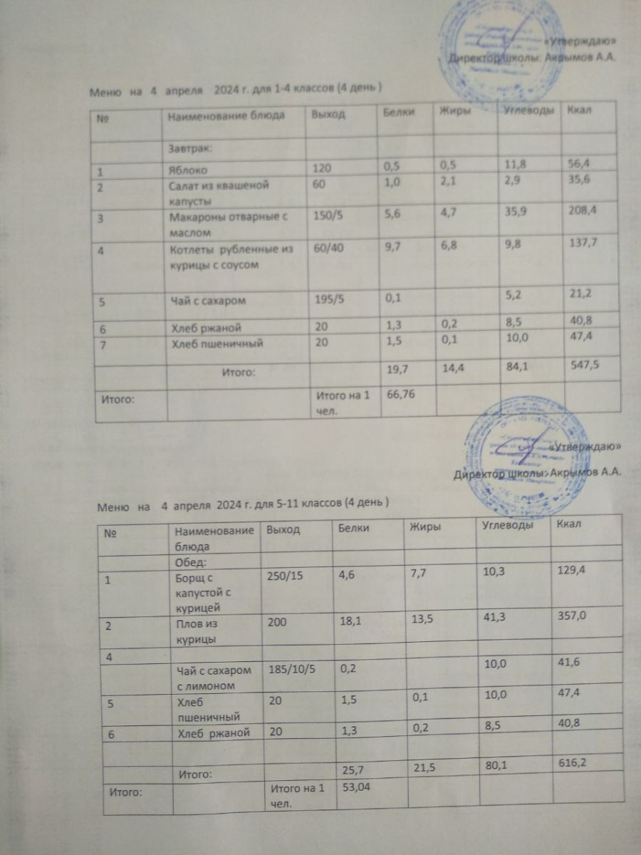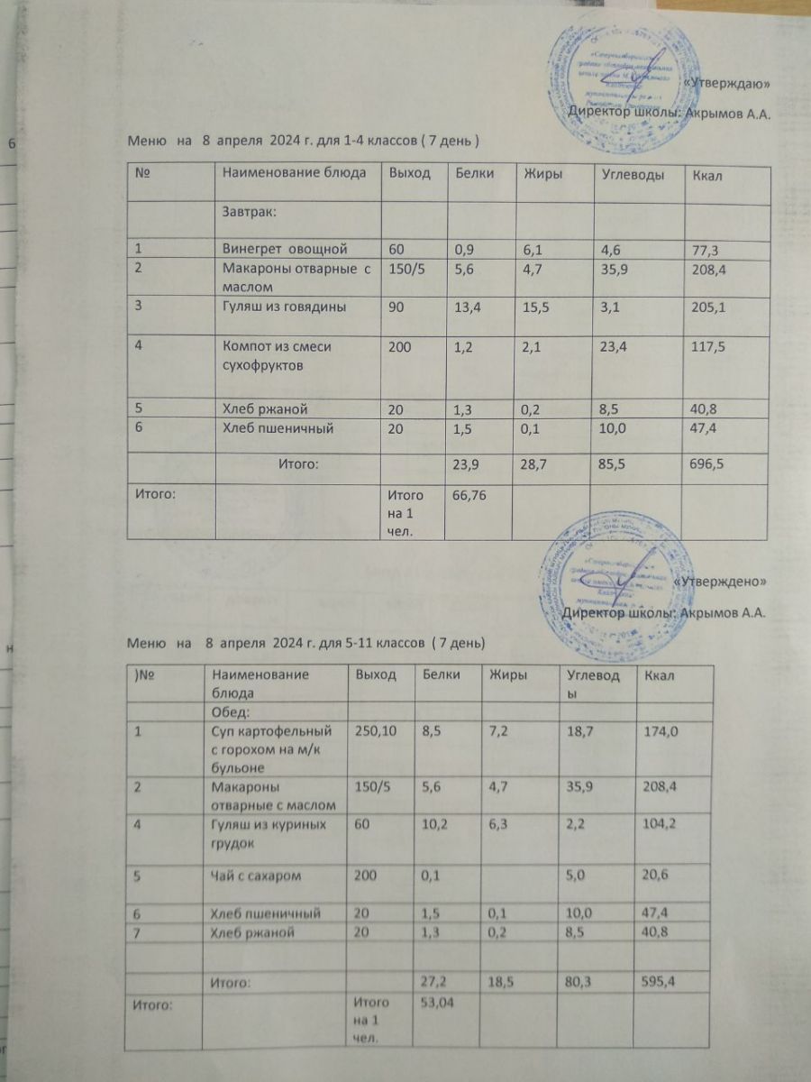 Ежедневное меню учащихся 1-4, 5-11 классов на 2023-2024 уч.год
