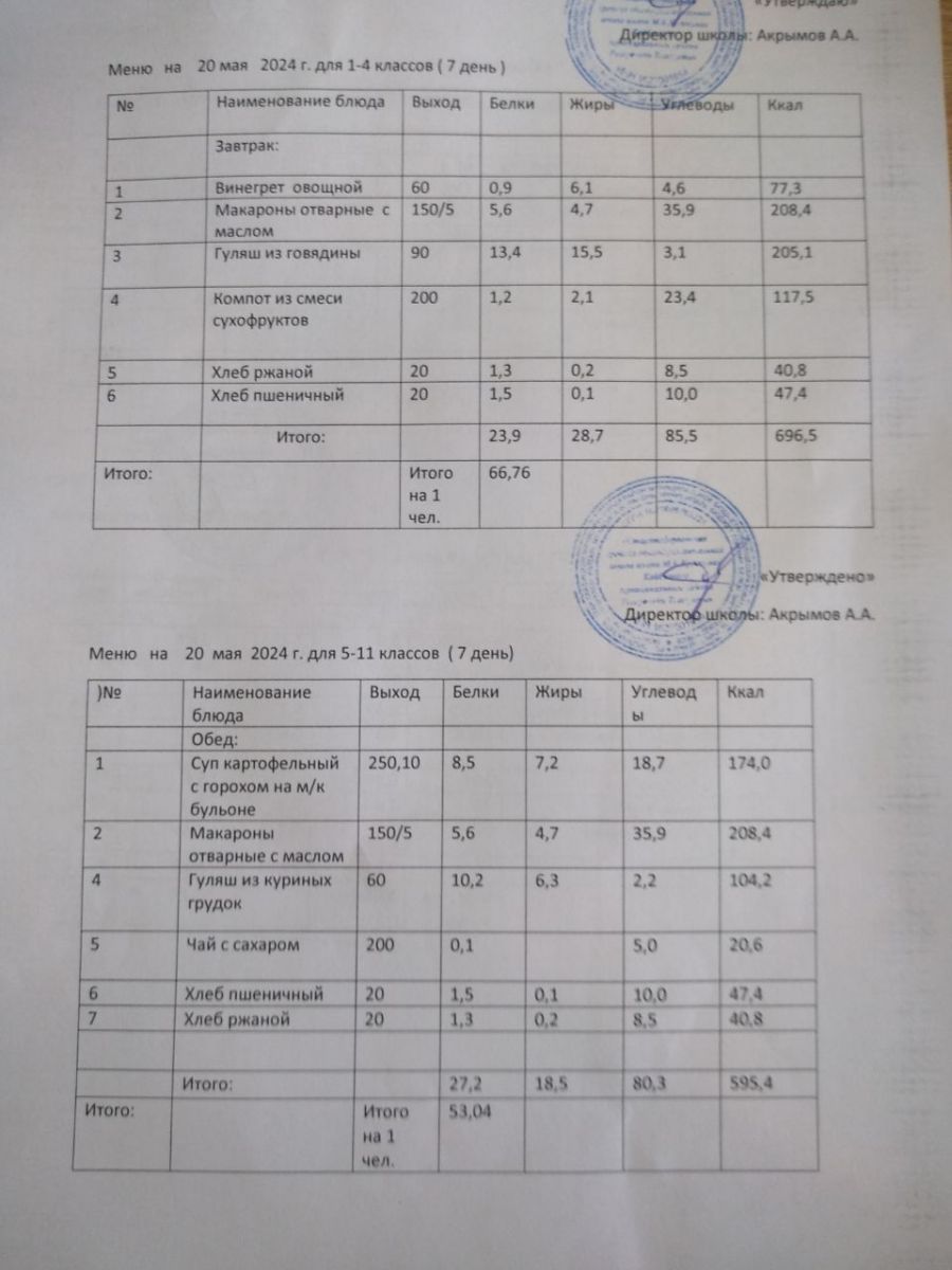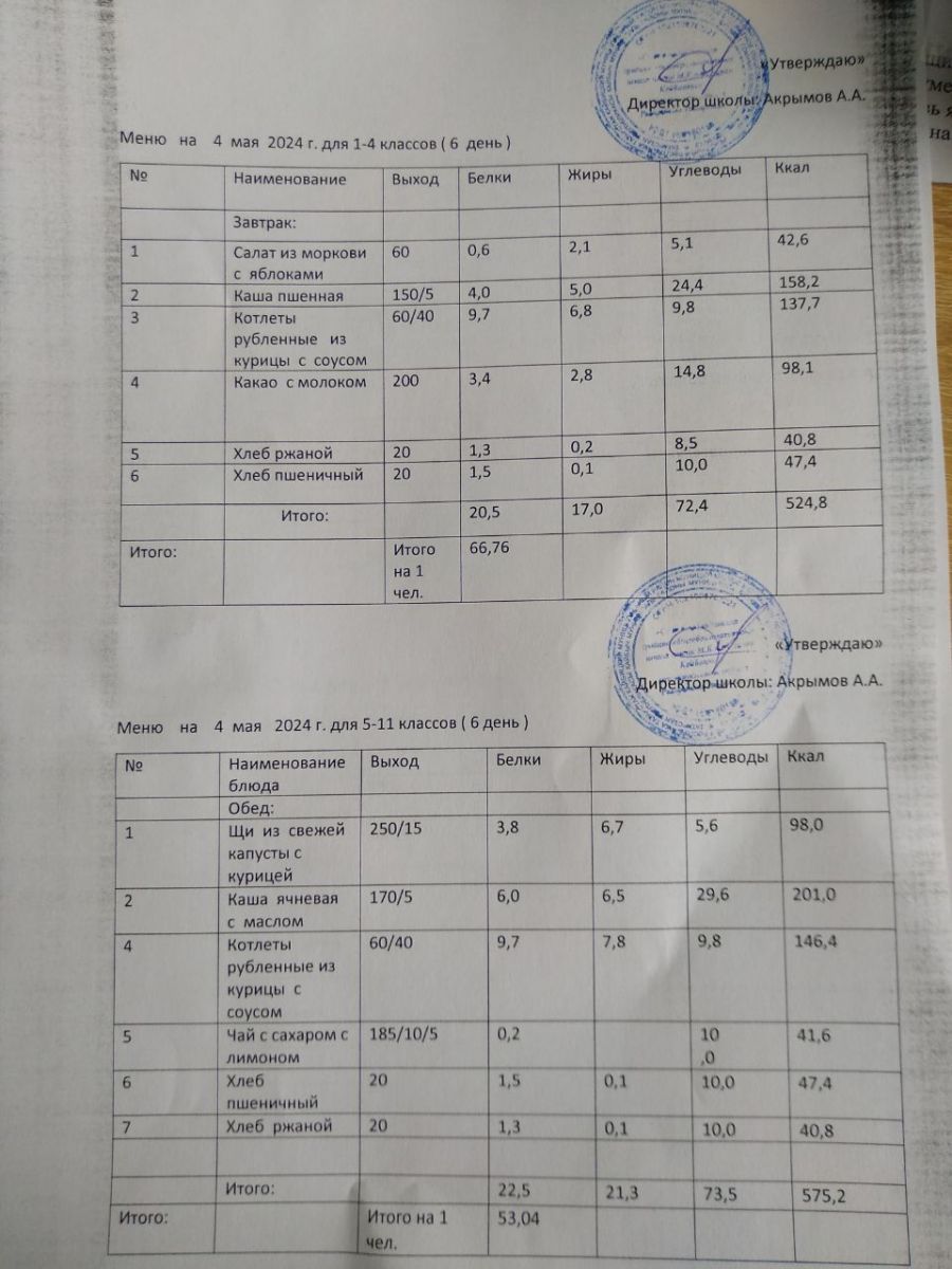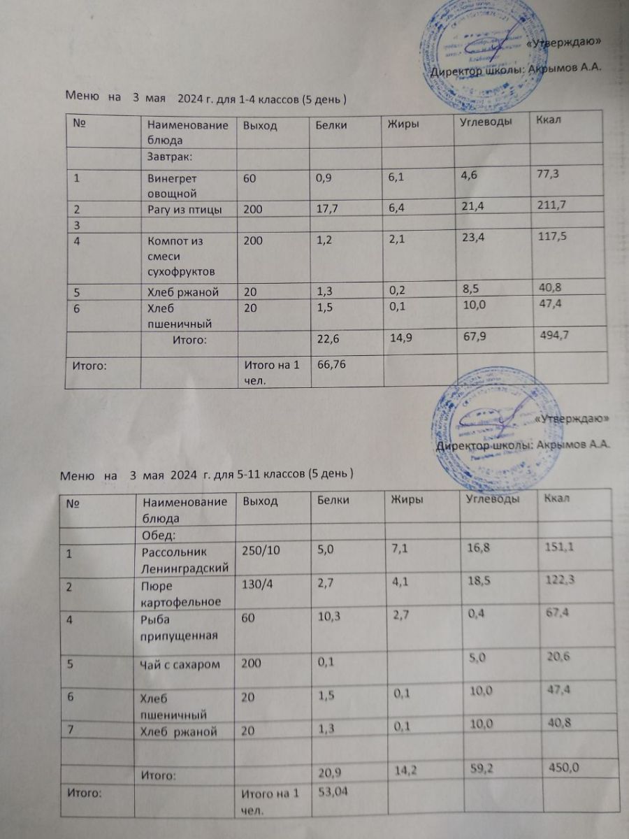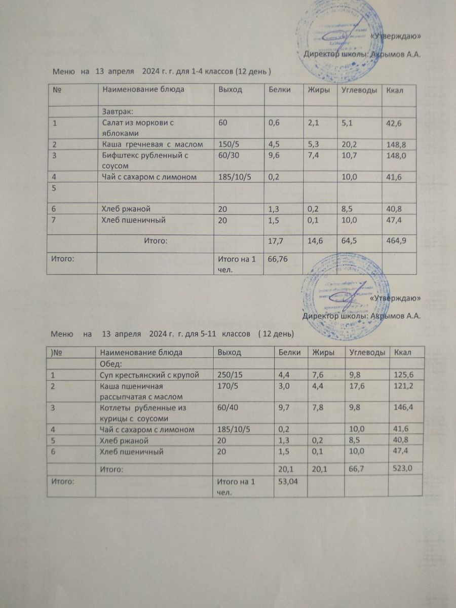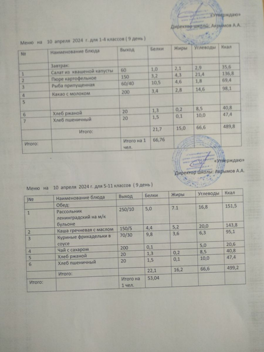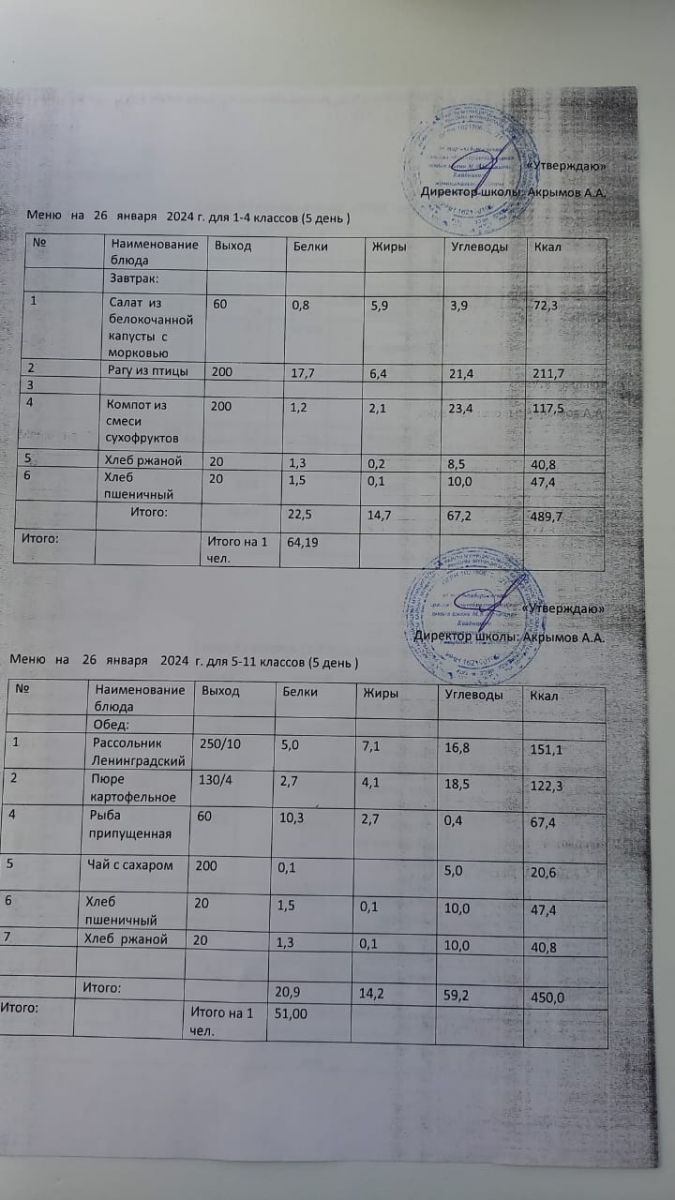 Ежедневное меню учащихся 1-4, 5-11 классов на 2023-2024 уч.год