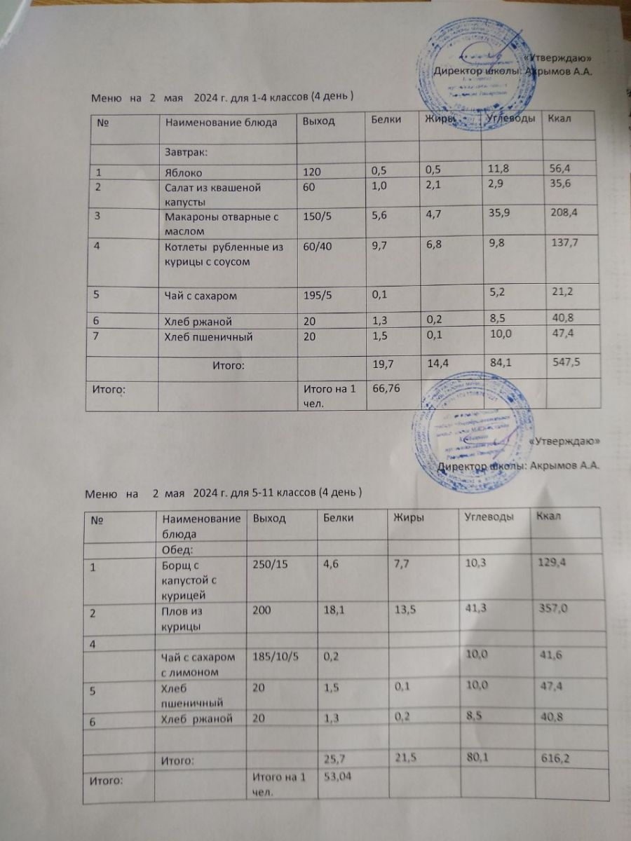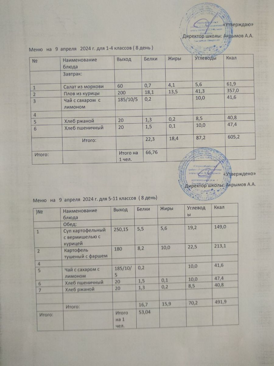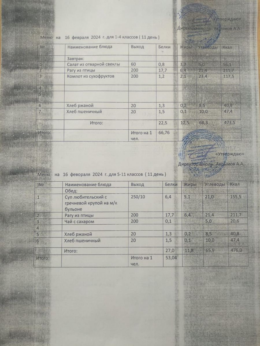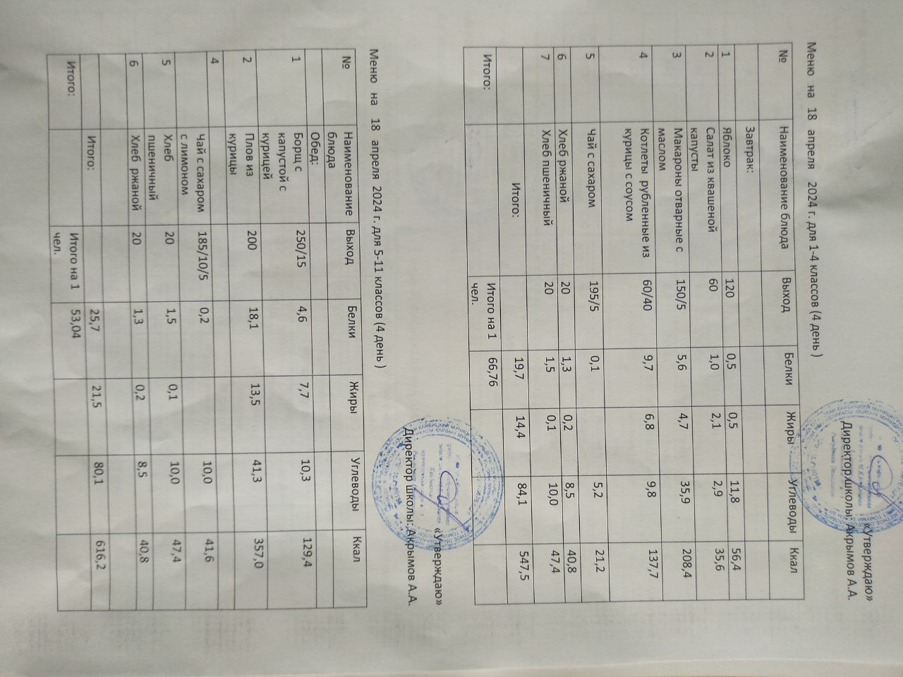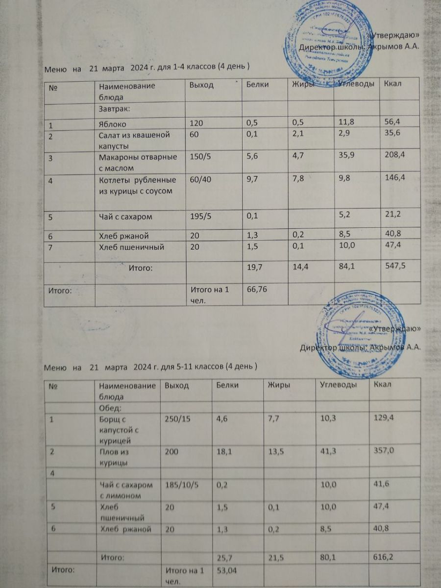 Ежедневное меню учащихся 1-4, 5-11 классов на 2023-2024 уч.год
