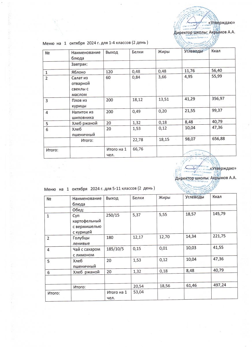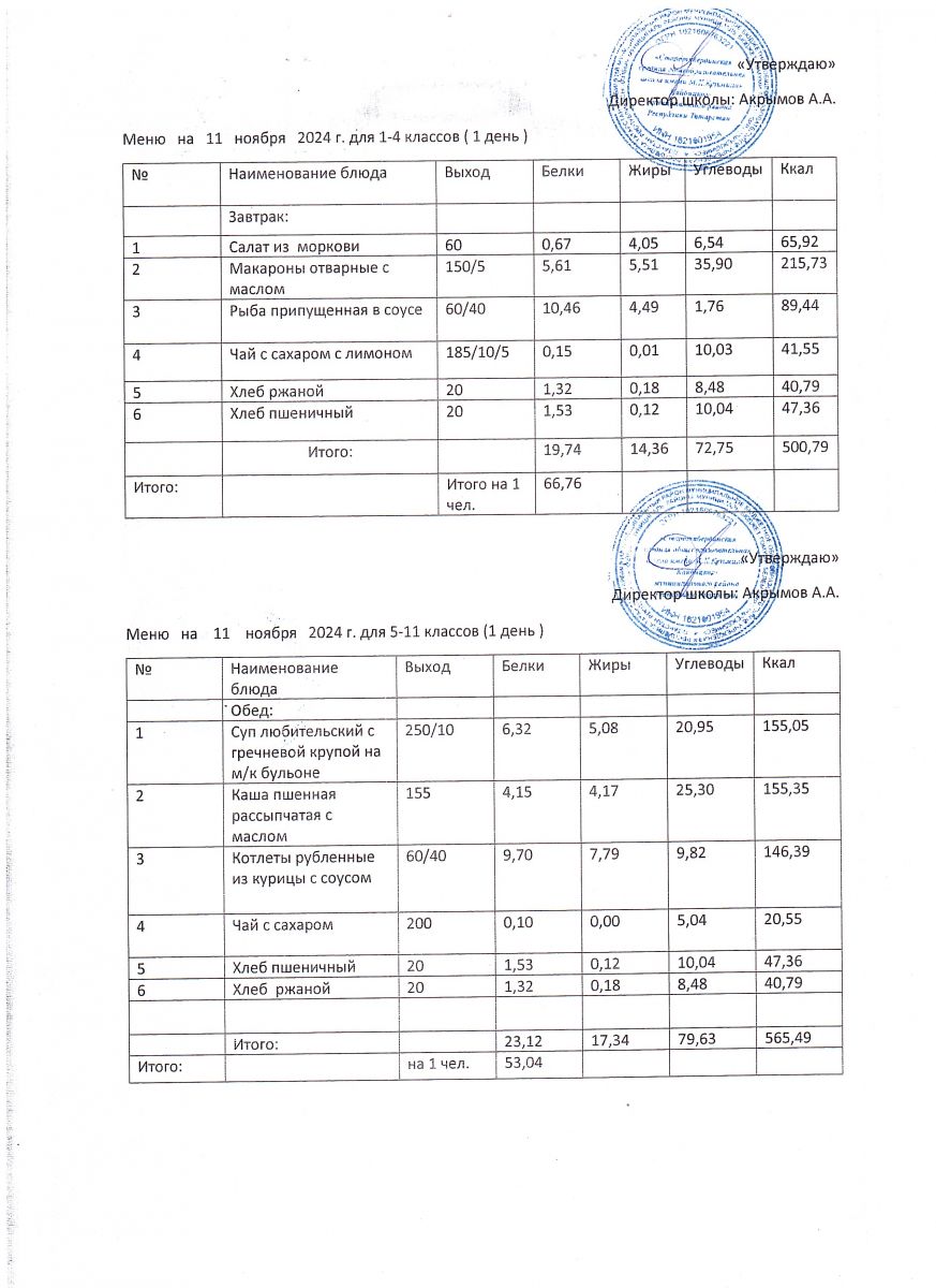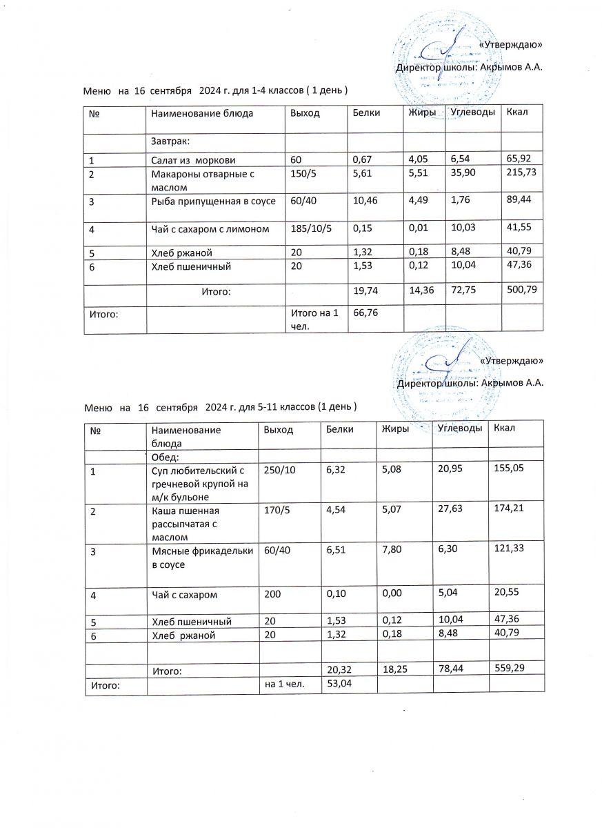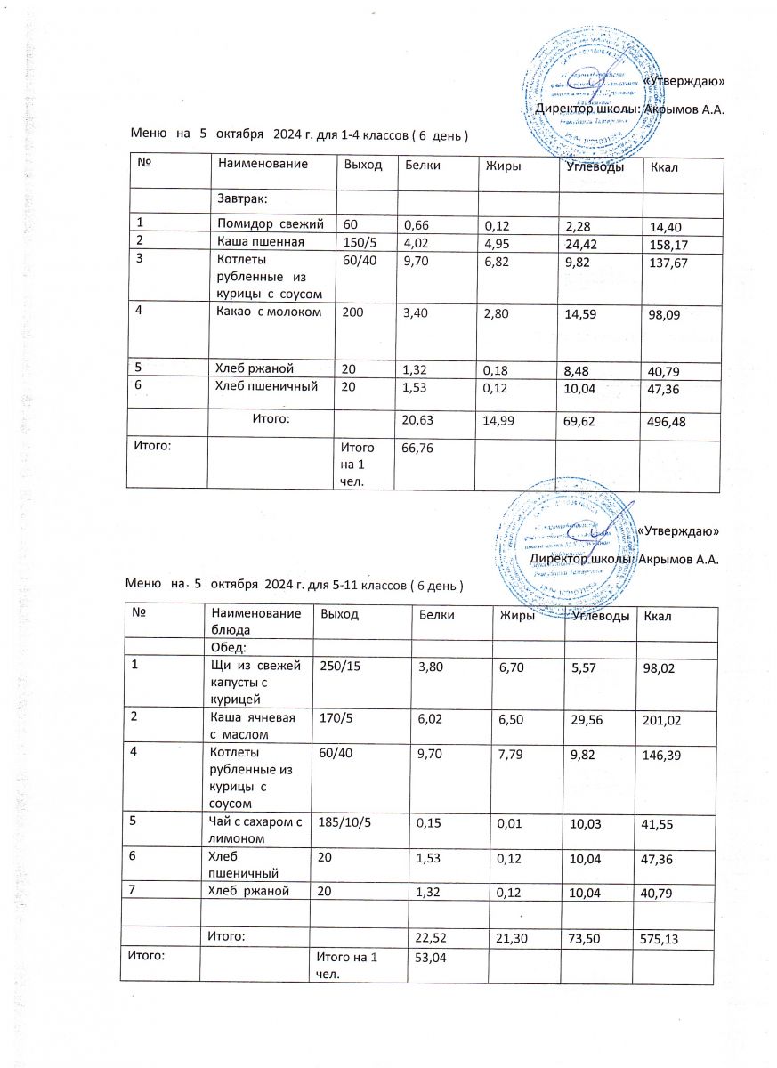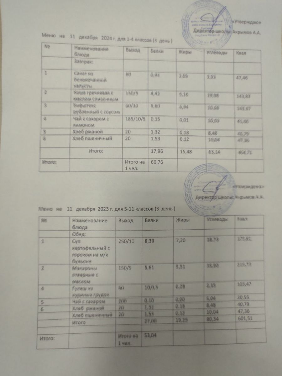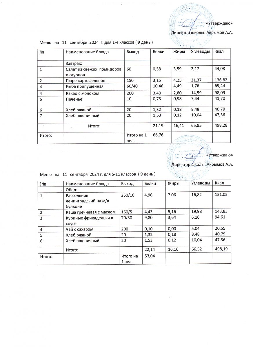 Ежедневное меню учащихся 1-4, 5-11 классов на 2024-2025 уч.год