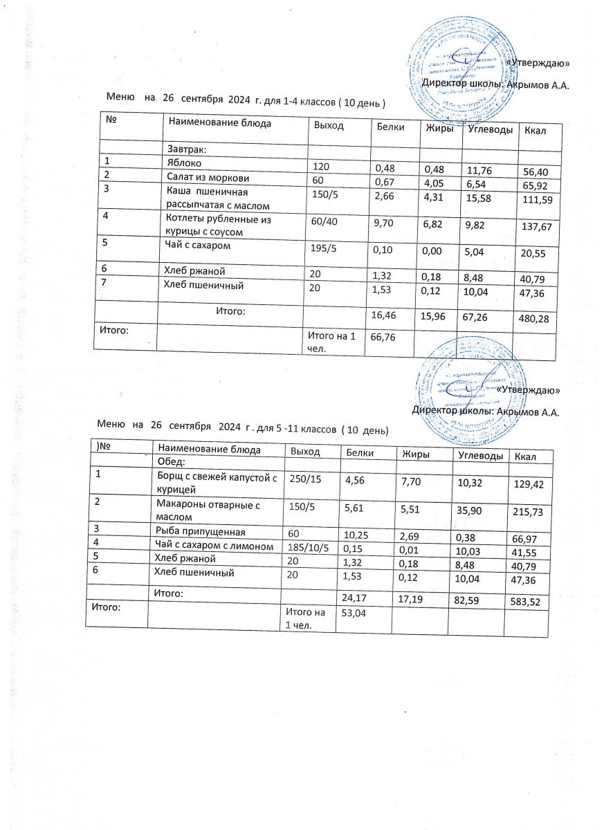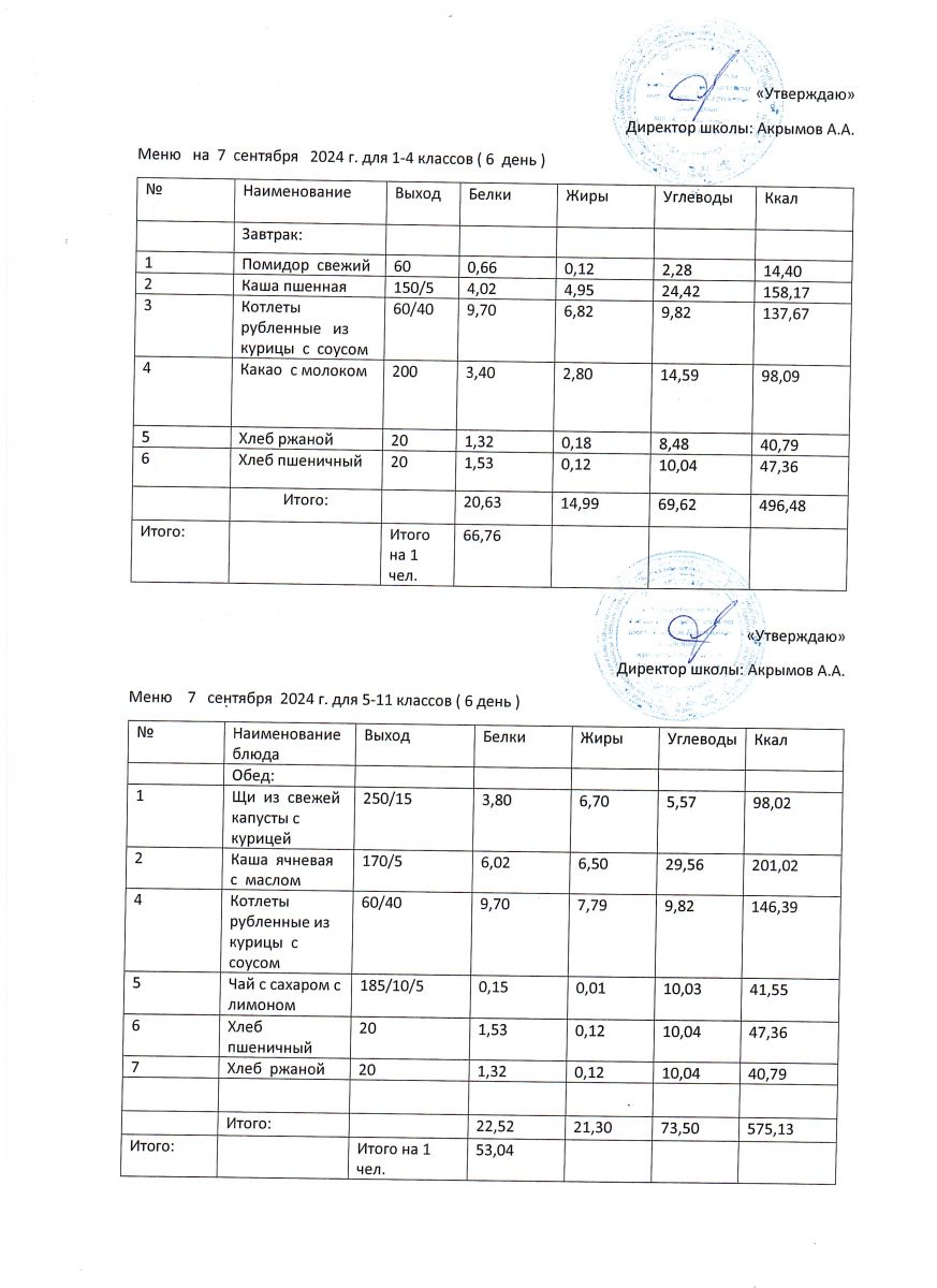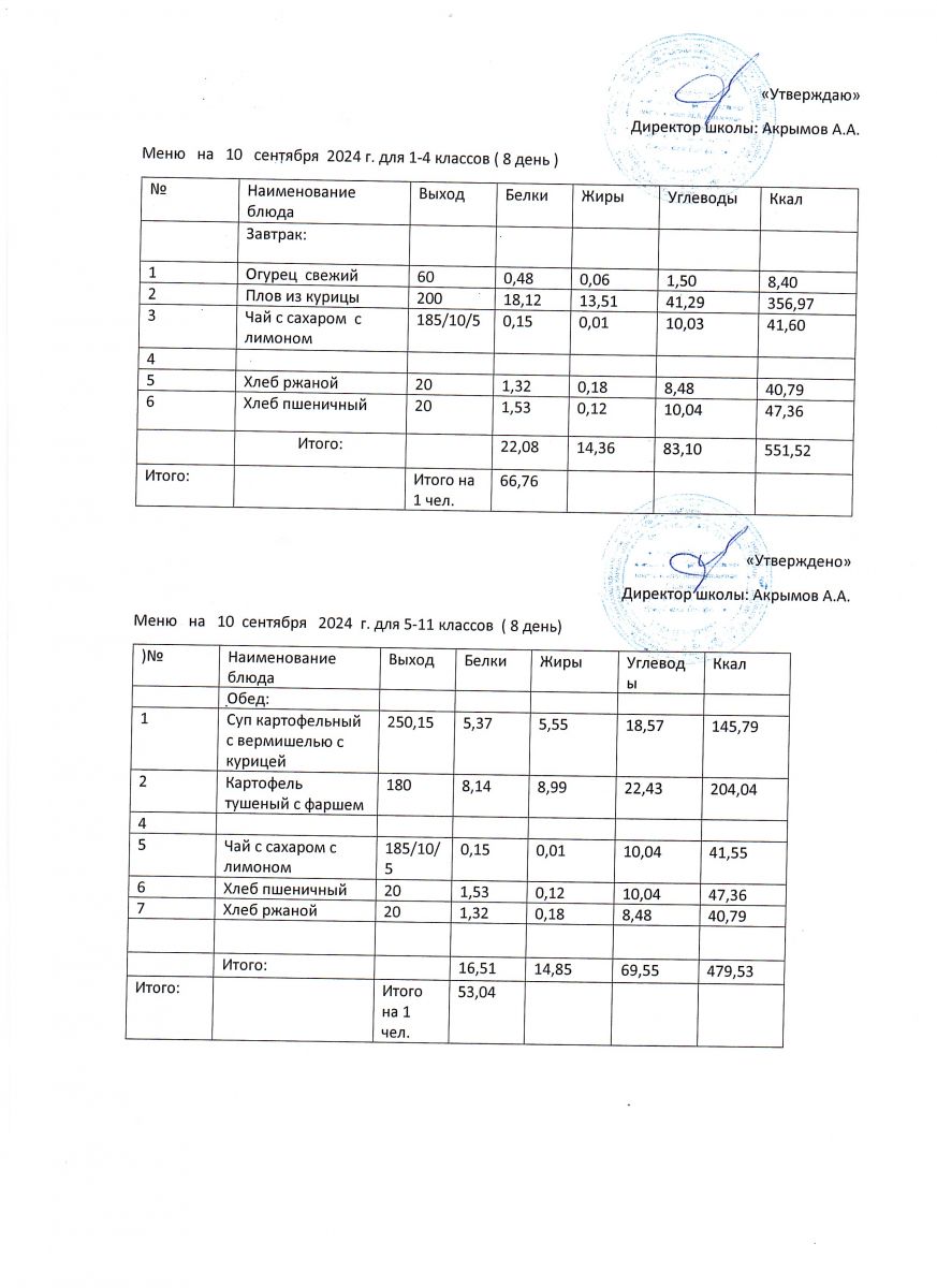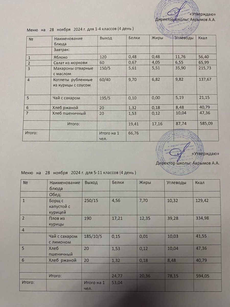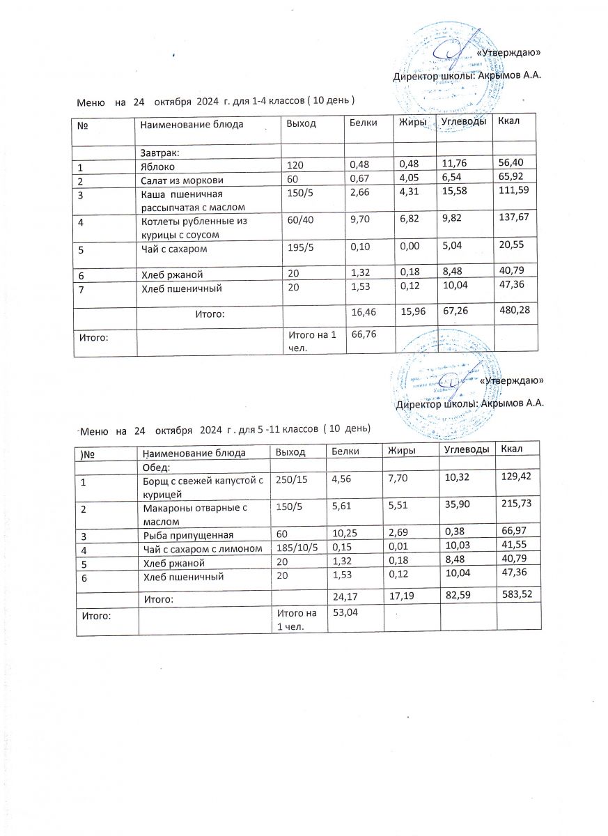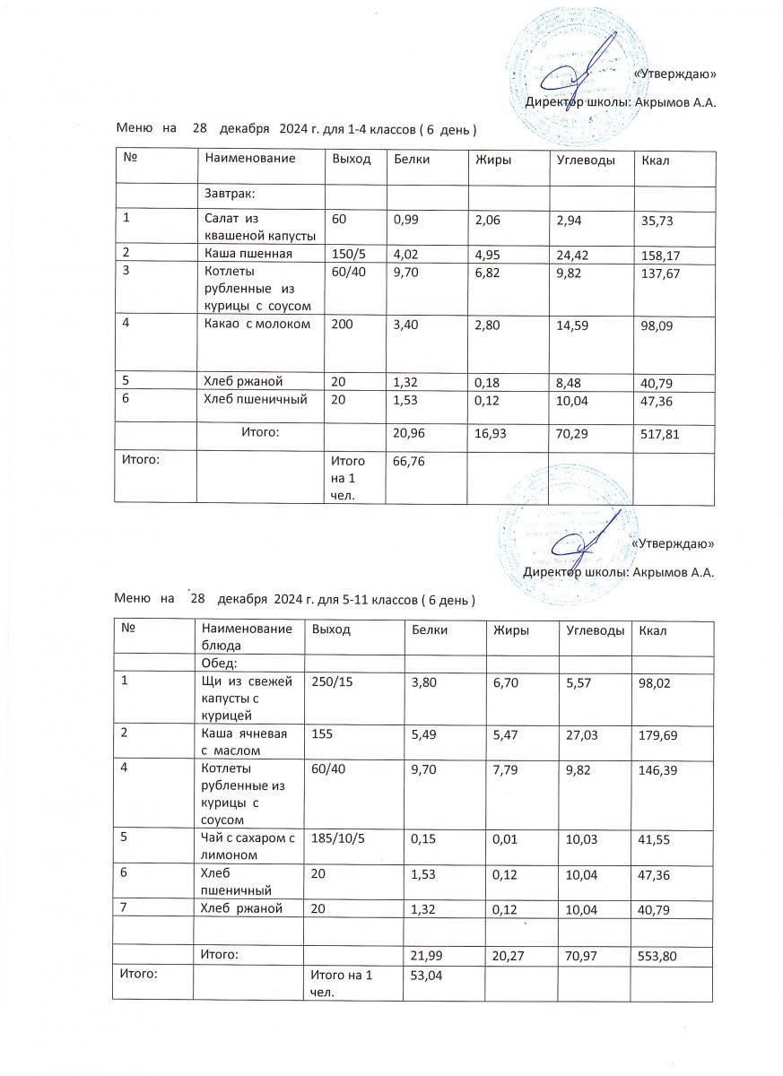 Ежедневное меню учащихся 1-4, 5-11 классов на 2024-2025 уч.год