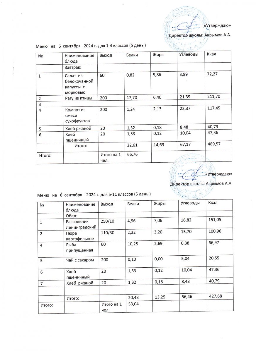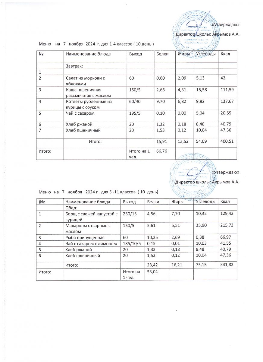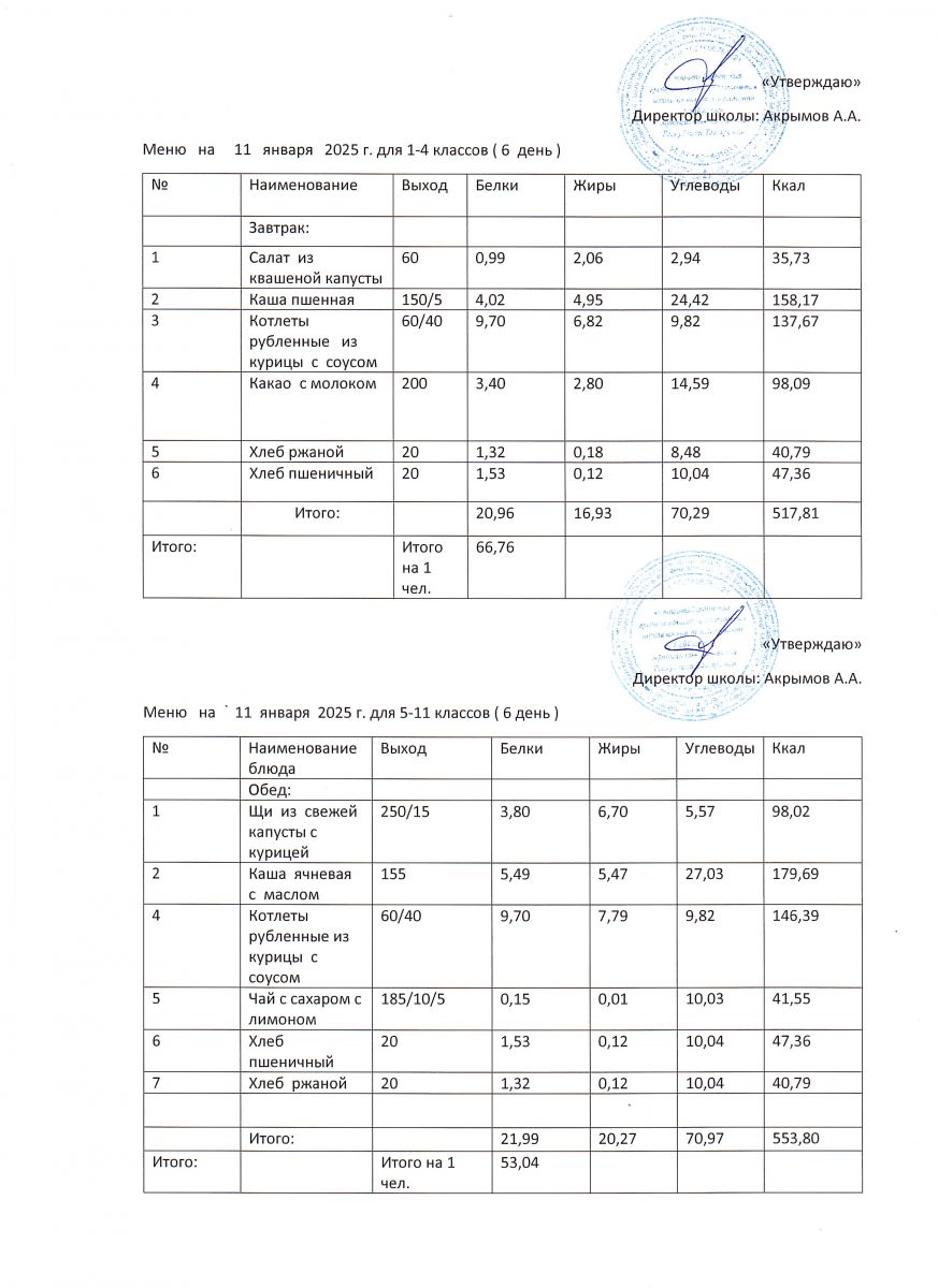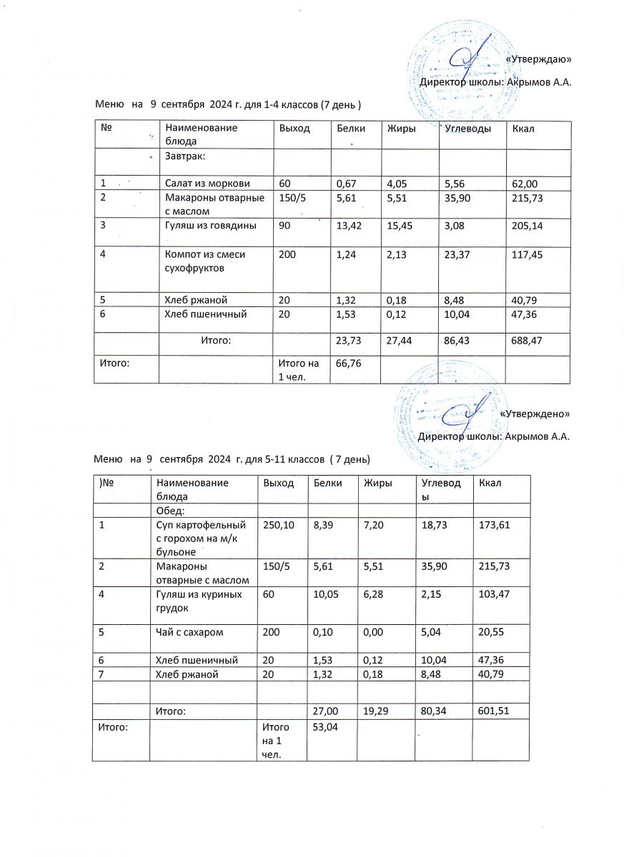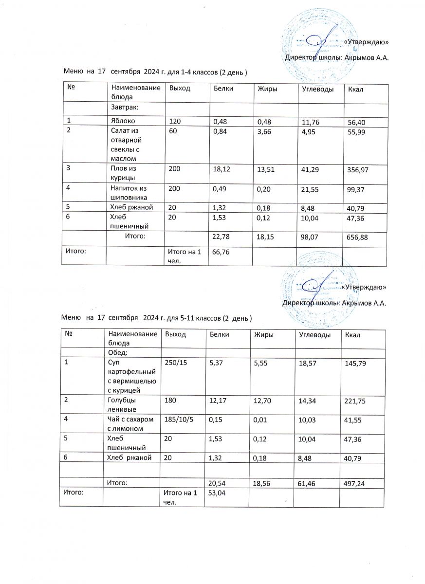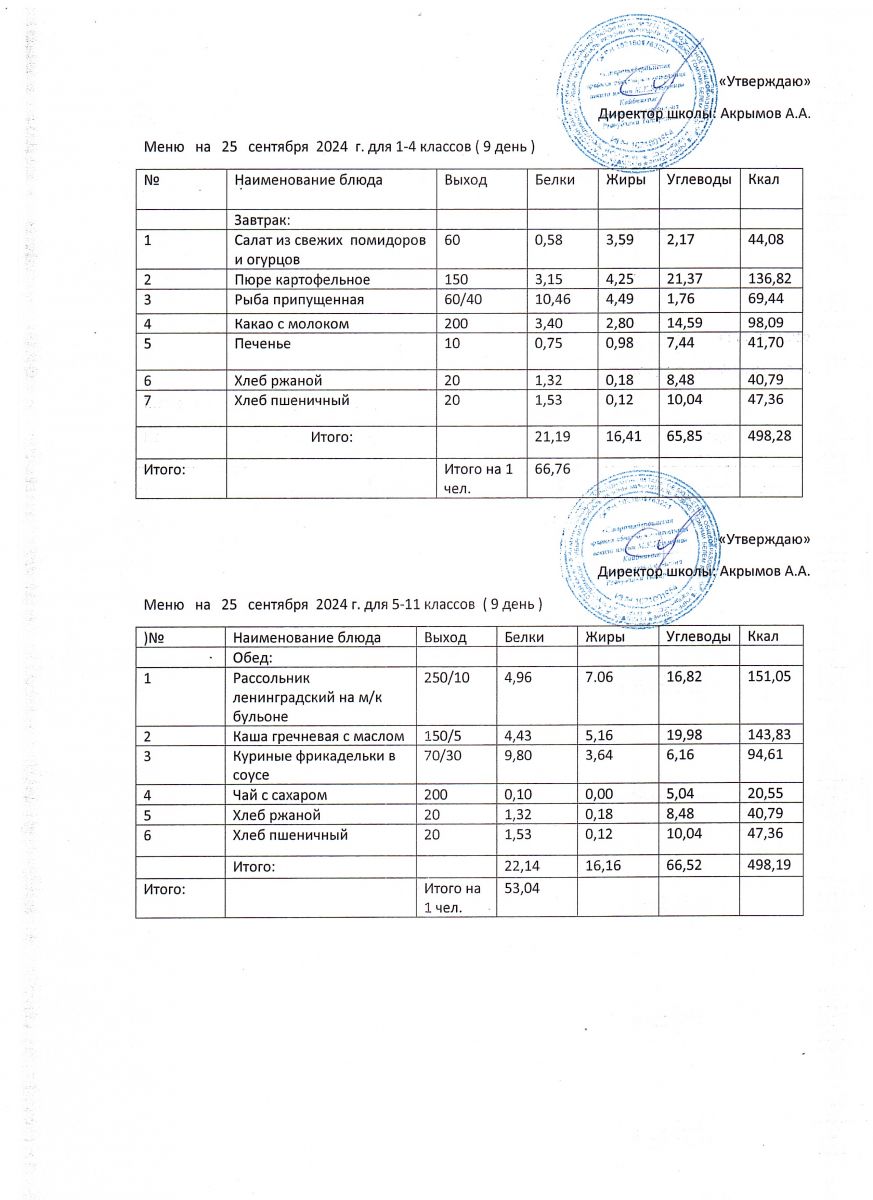 Ежедневное меню учащихся 1-4, 5-11 классов на 2024-2025 уч.год