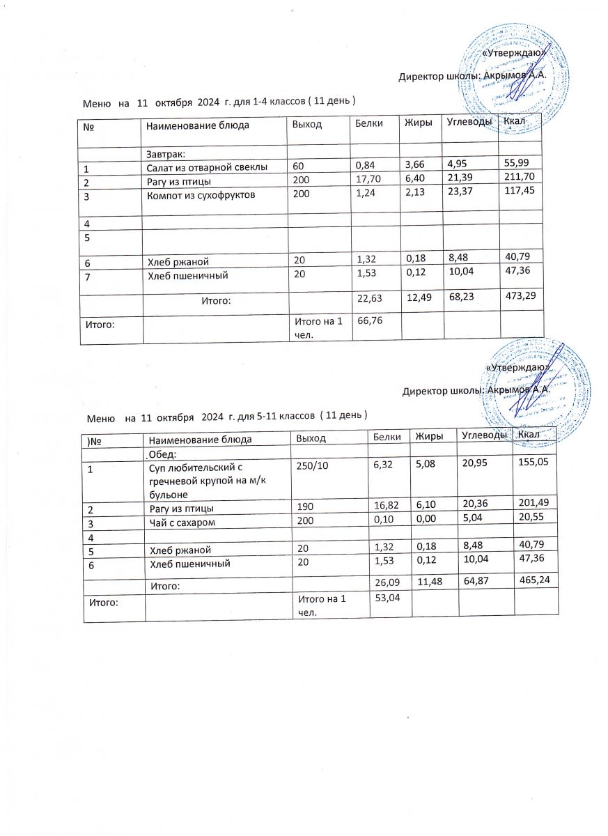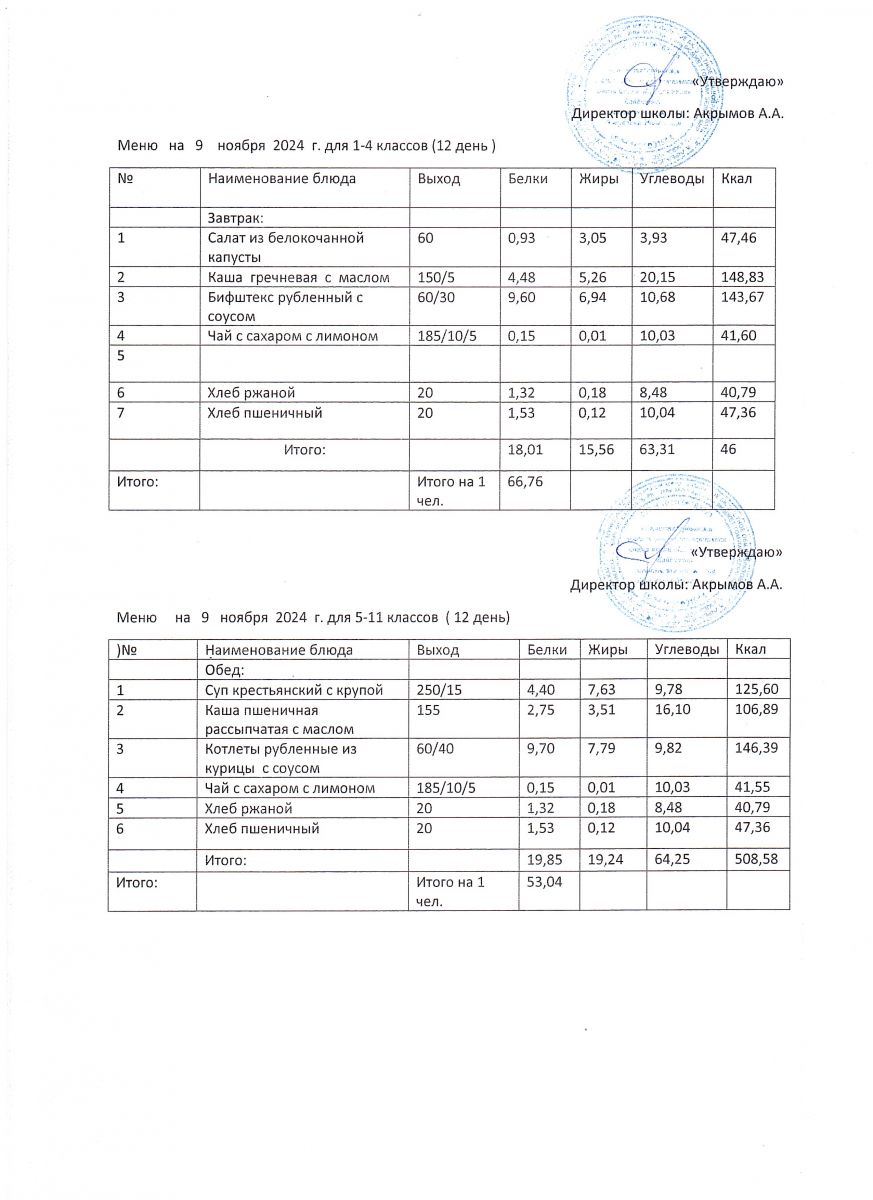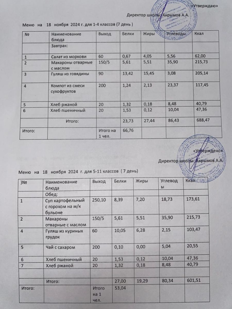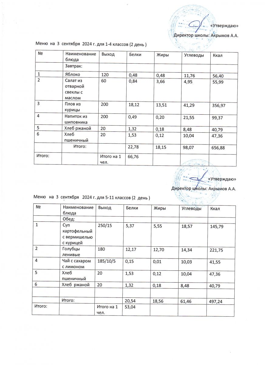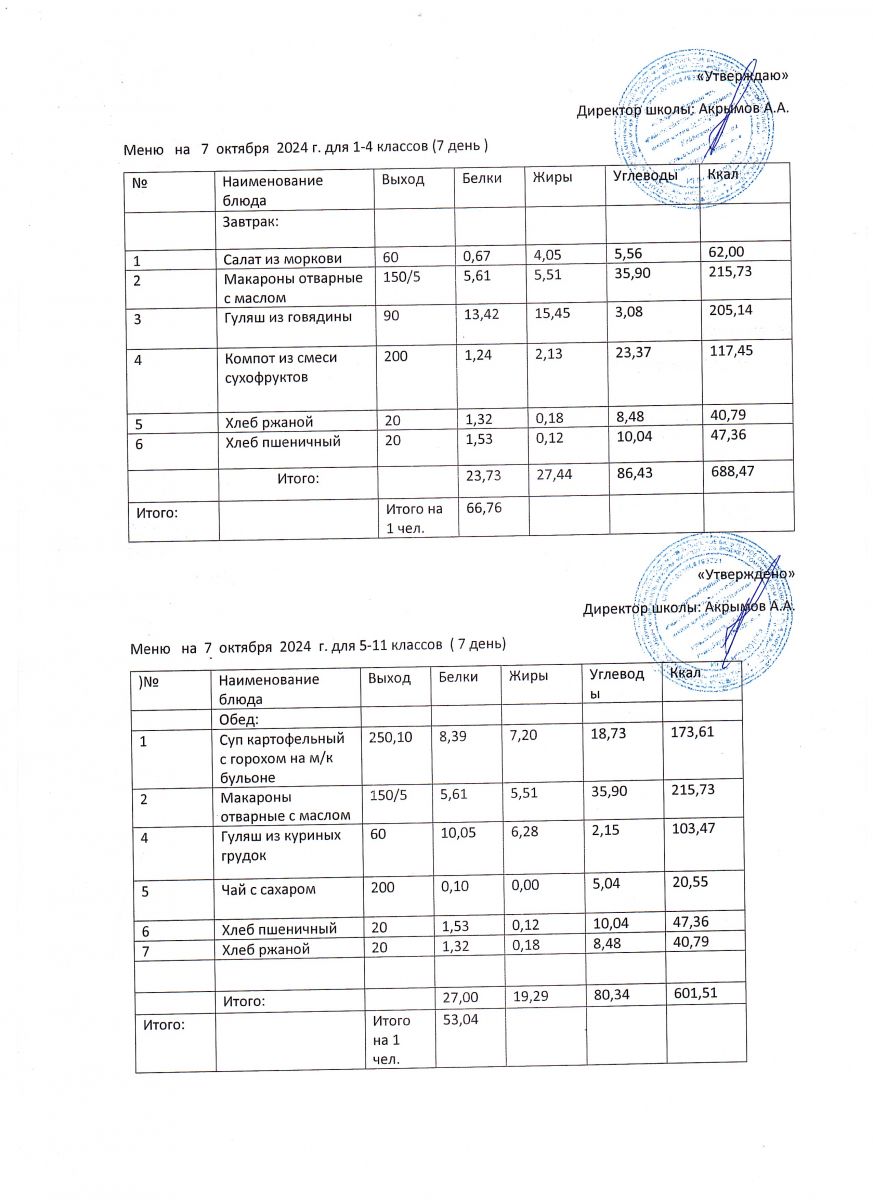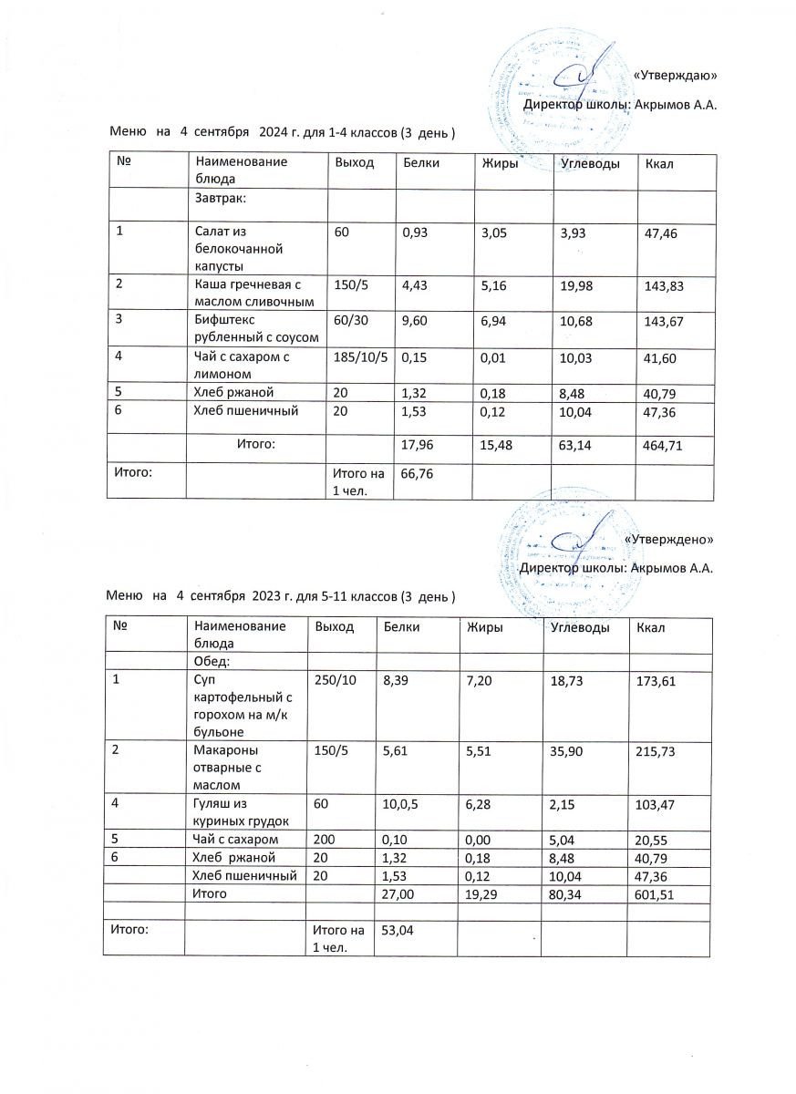 Ежедневное меню учащихся 1-4, 5-11 классов на 2024-2025 уч.год