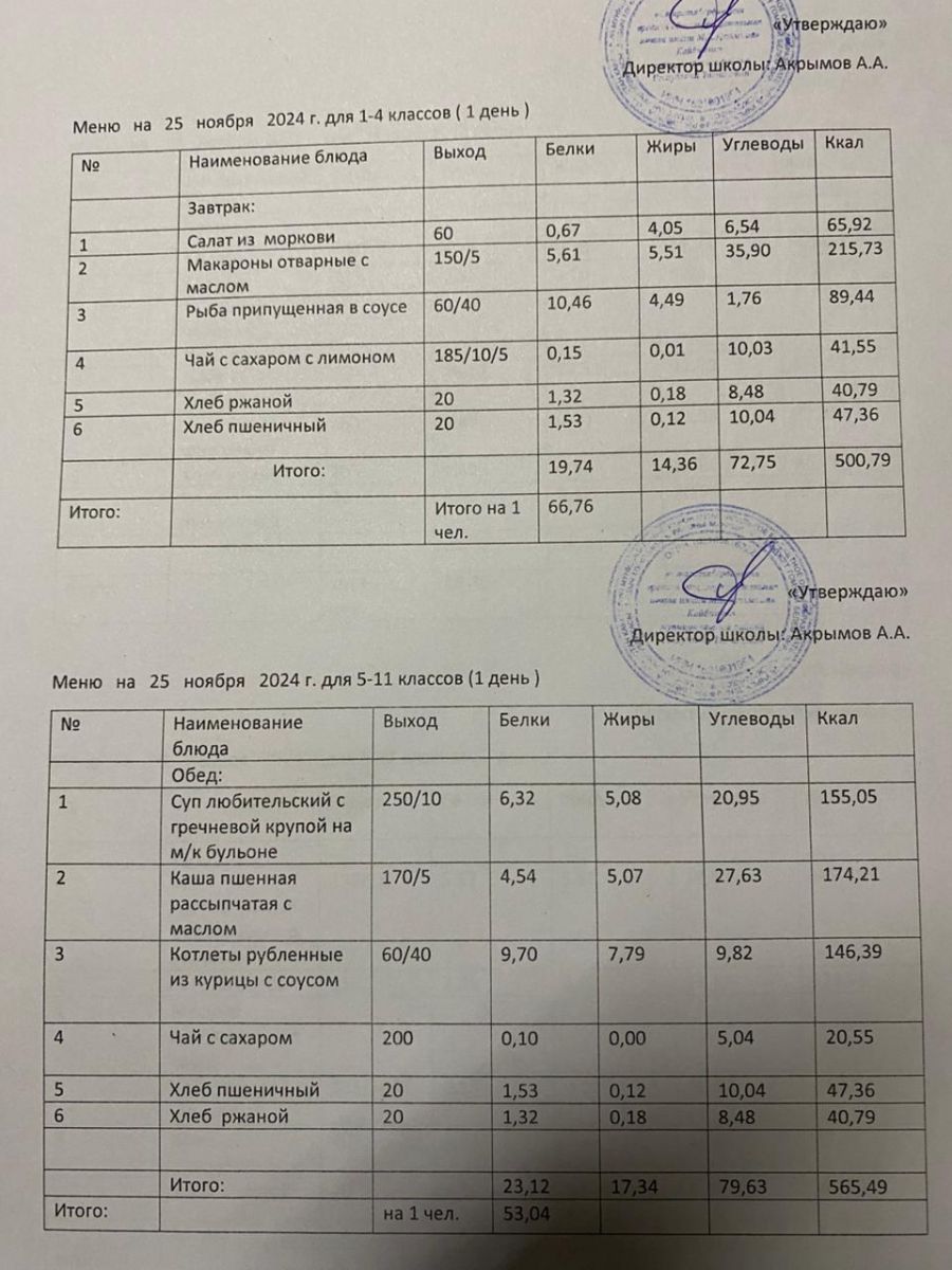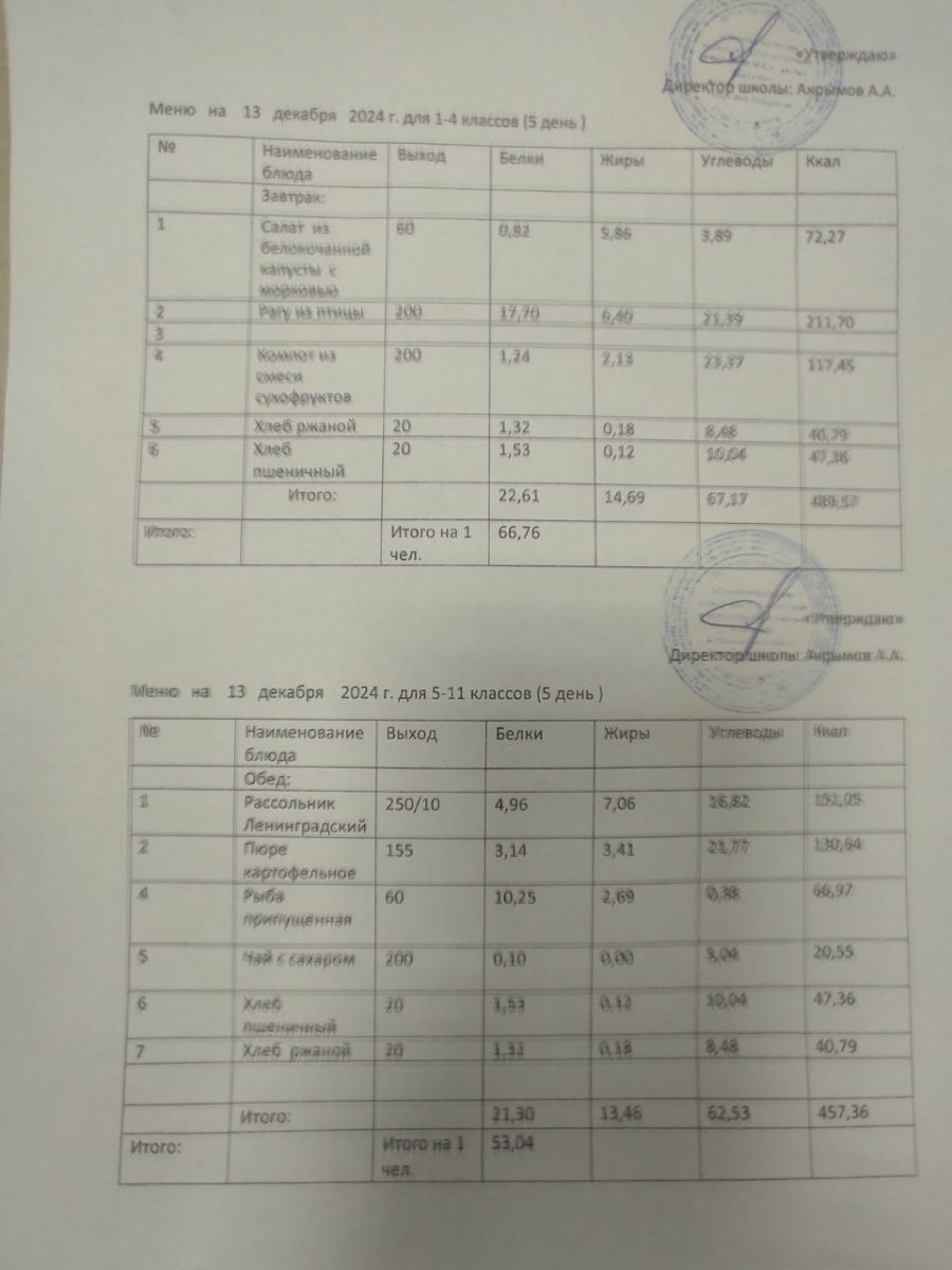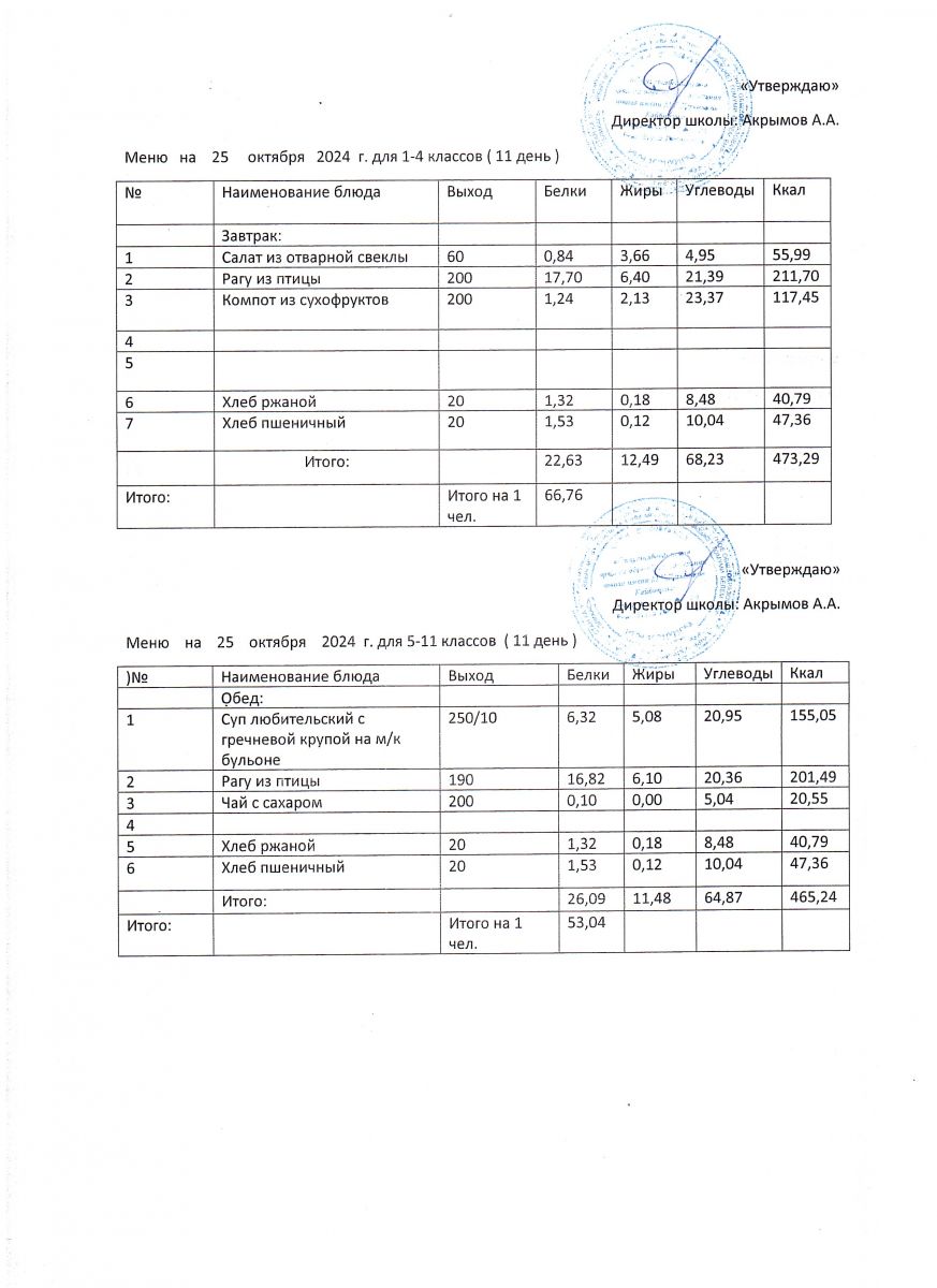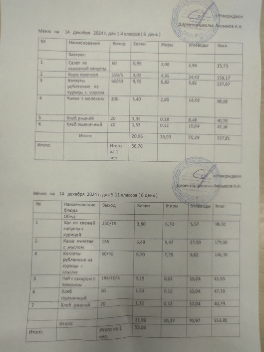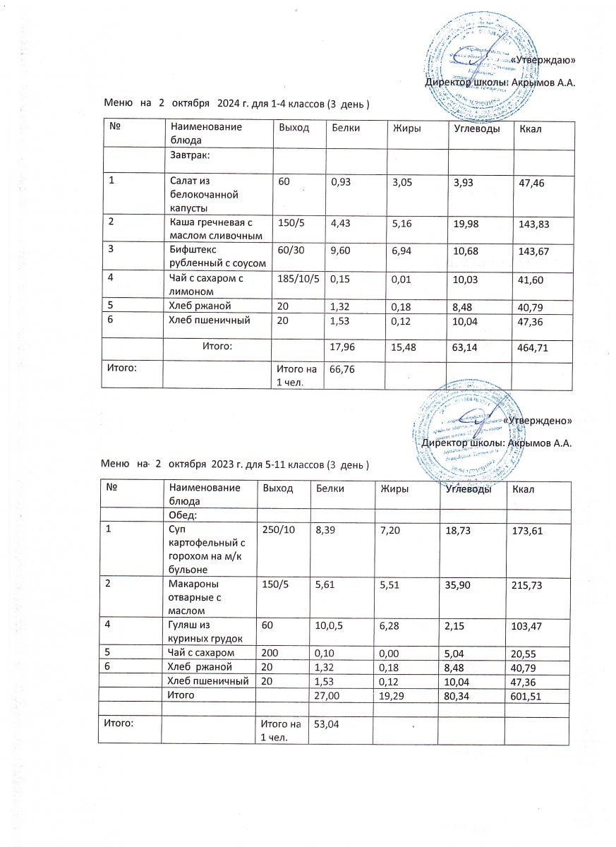Ежедневное меню учащихся 1-4, 5-11 классов на 2024-2025 уч.год