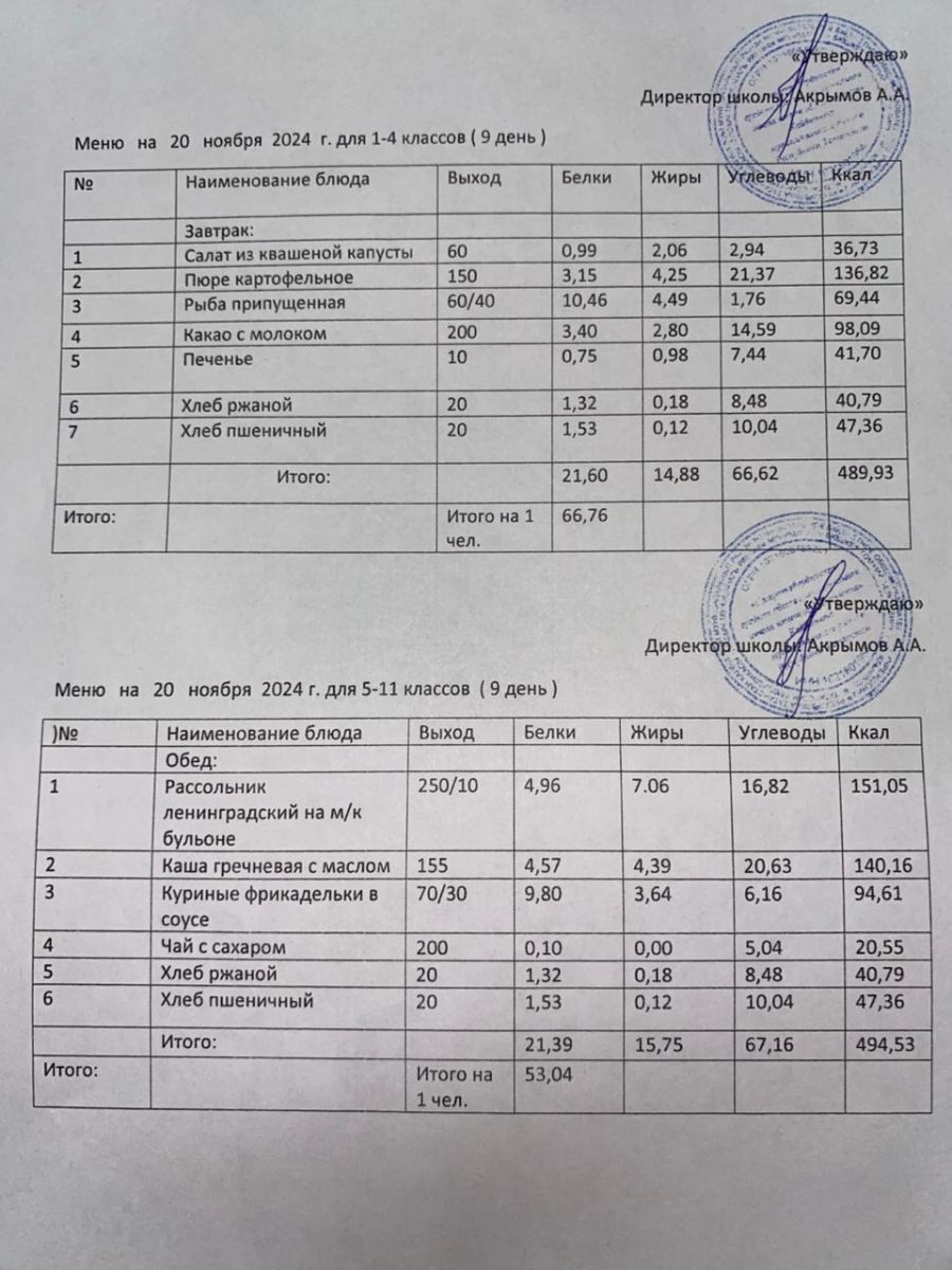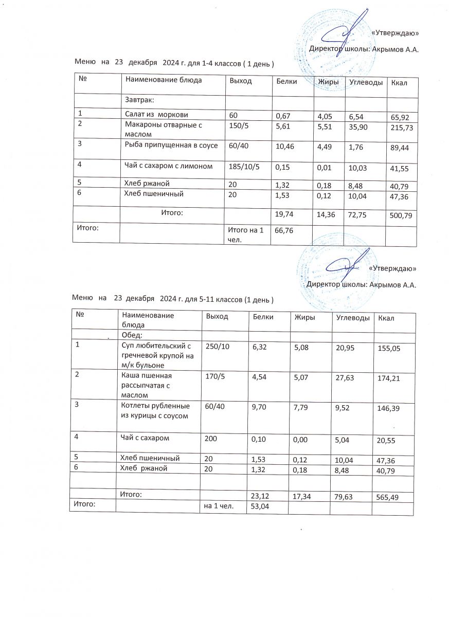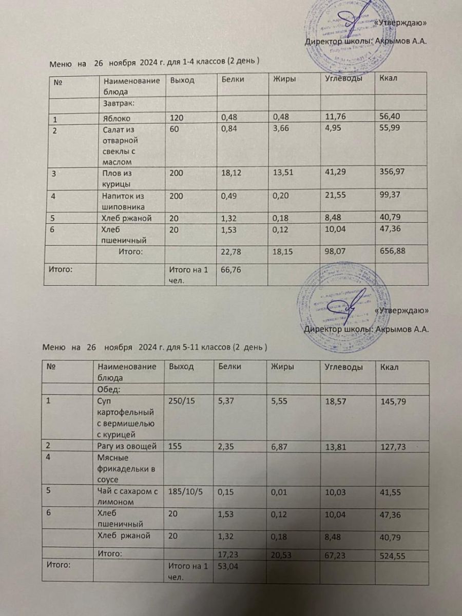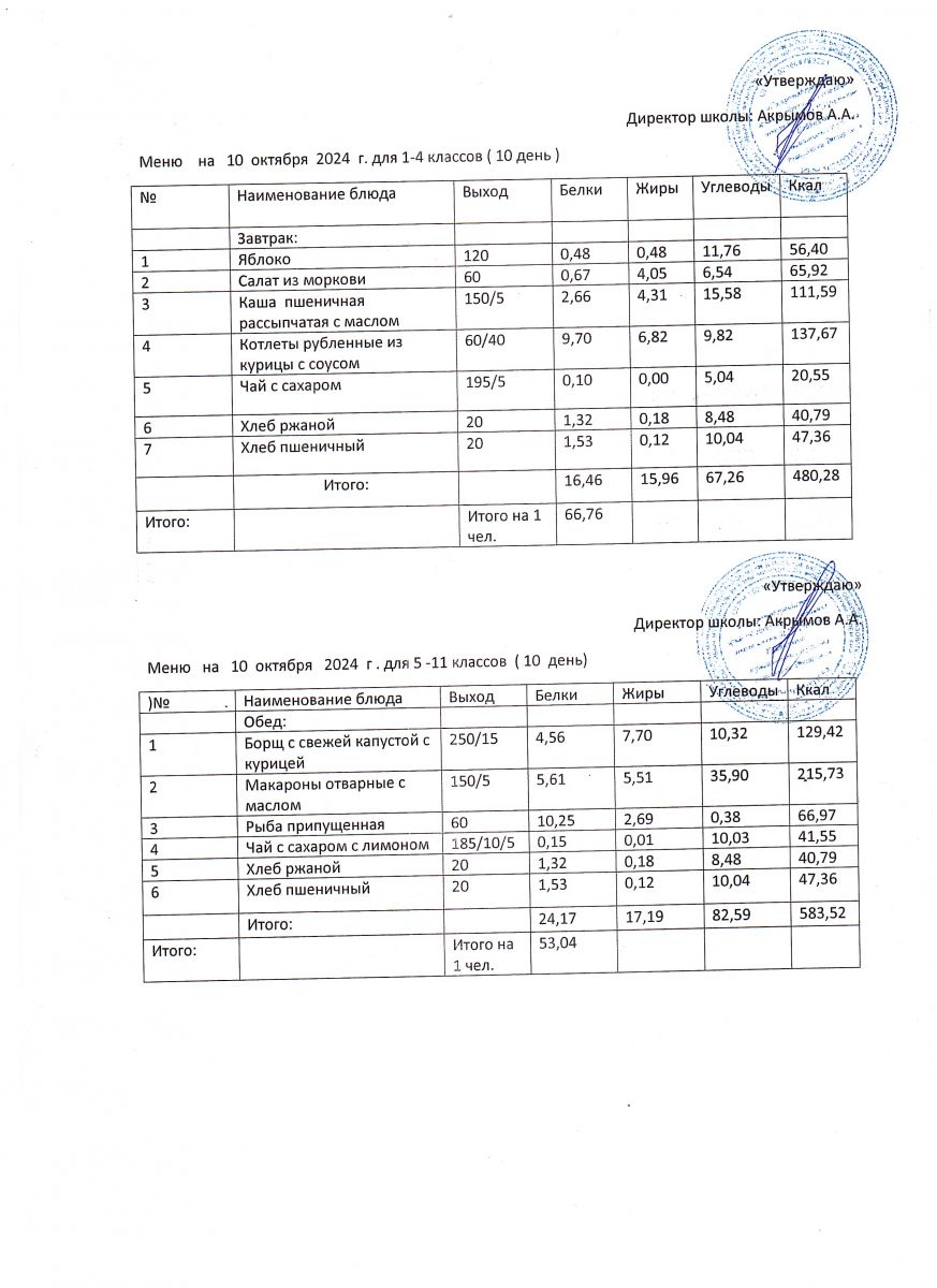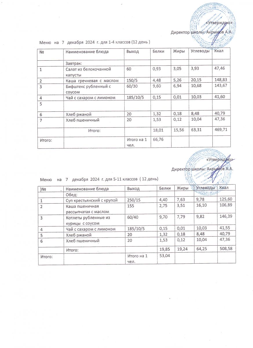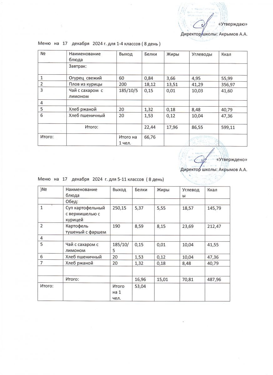 Ежедневное меню учащихся 1-4, 5-11 классов на 2024-2025 уч.год