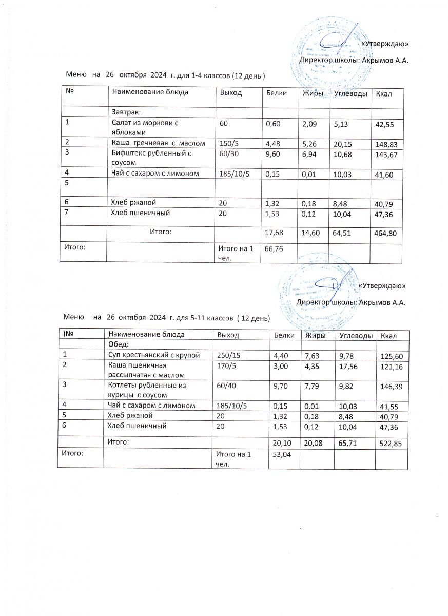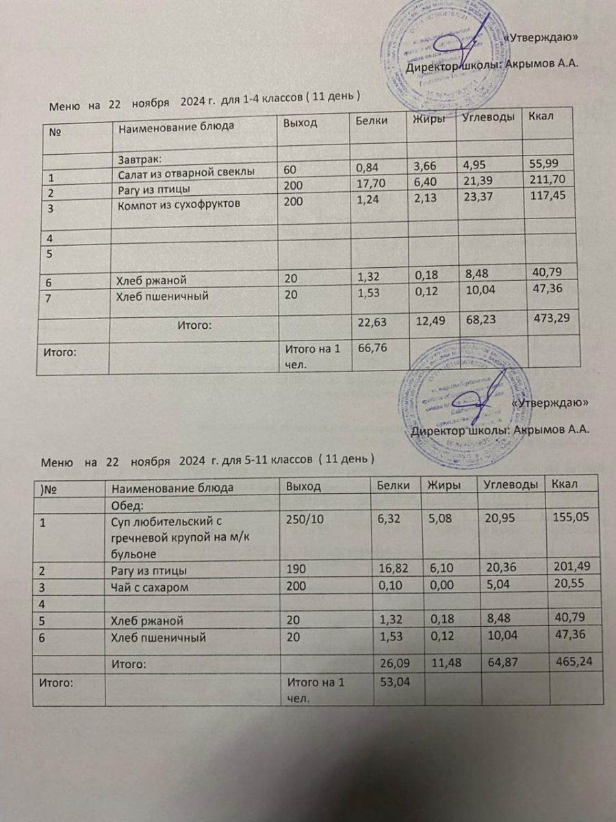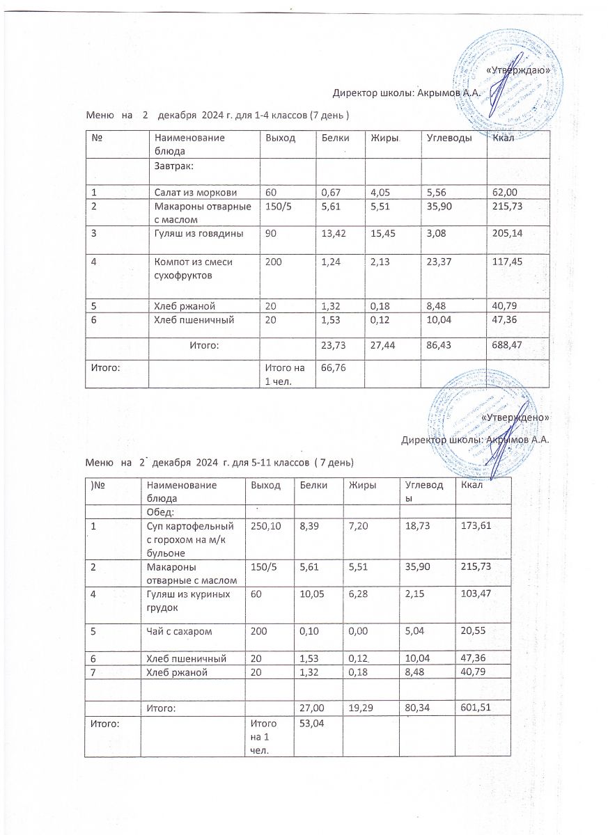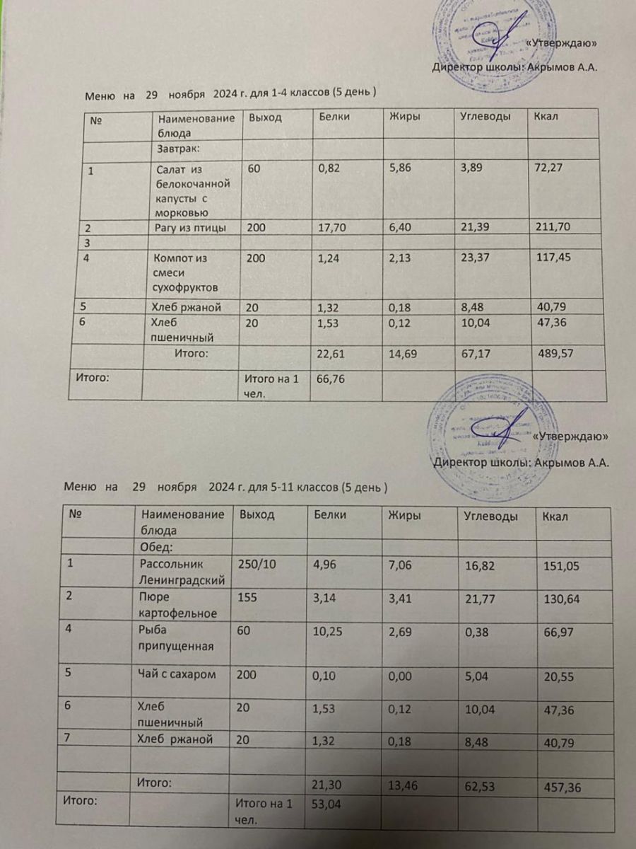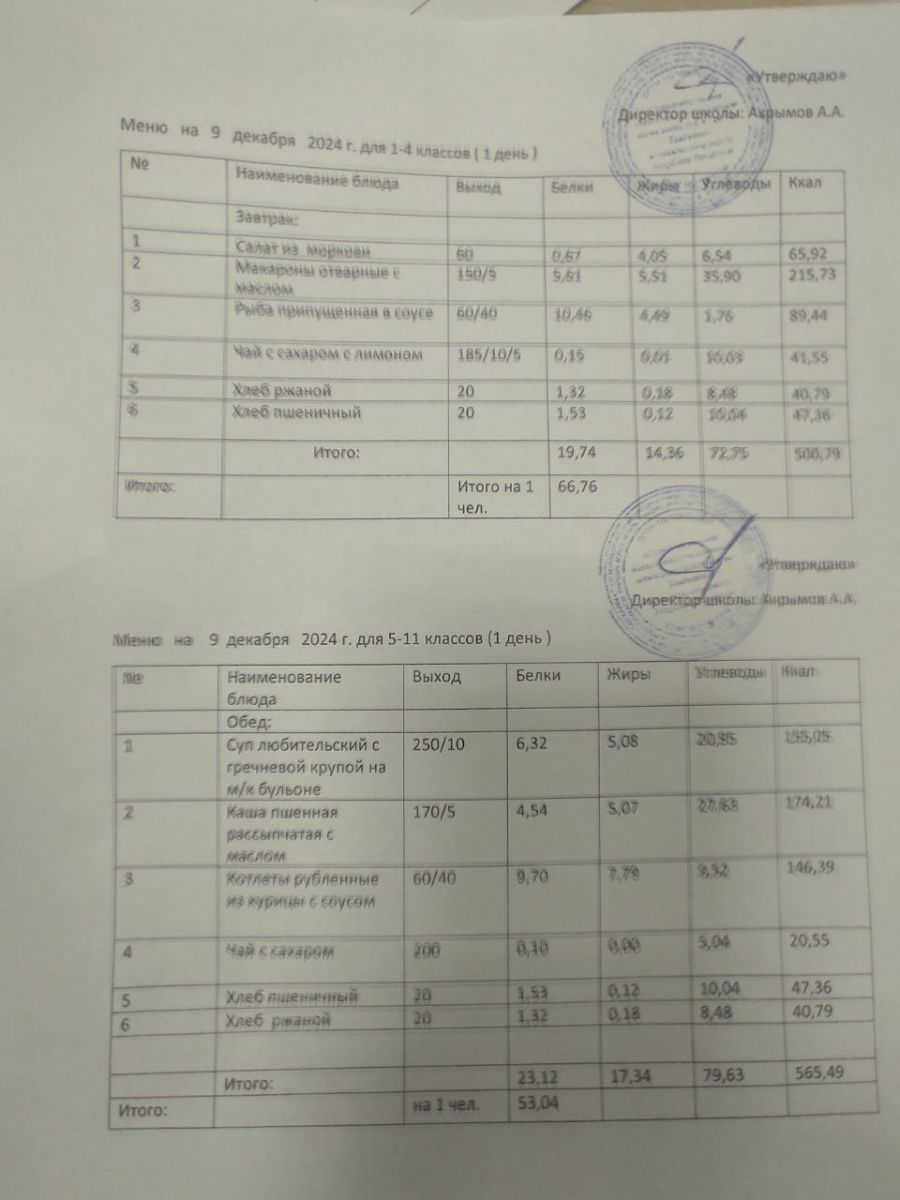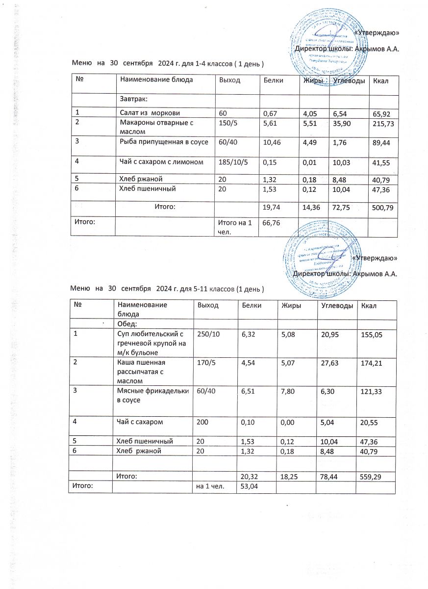 Ежедневное меню учащихся 1-4, 5-11 классов на 2024-2025 уч.год