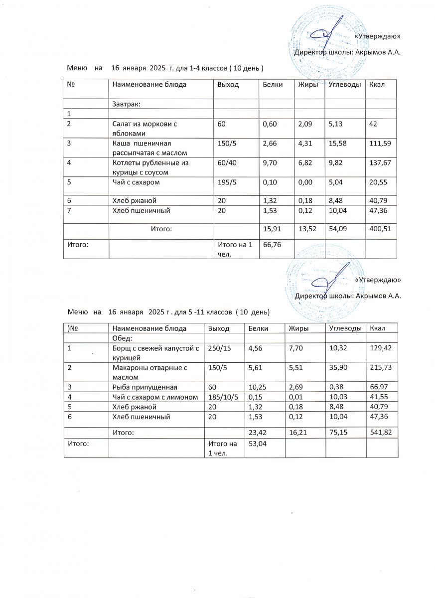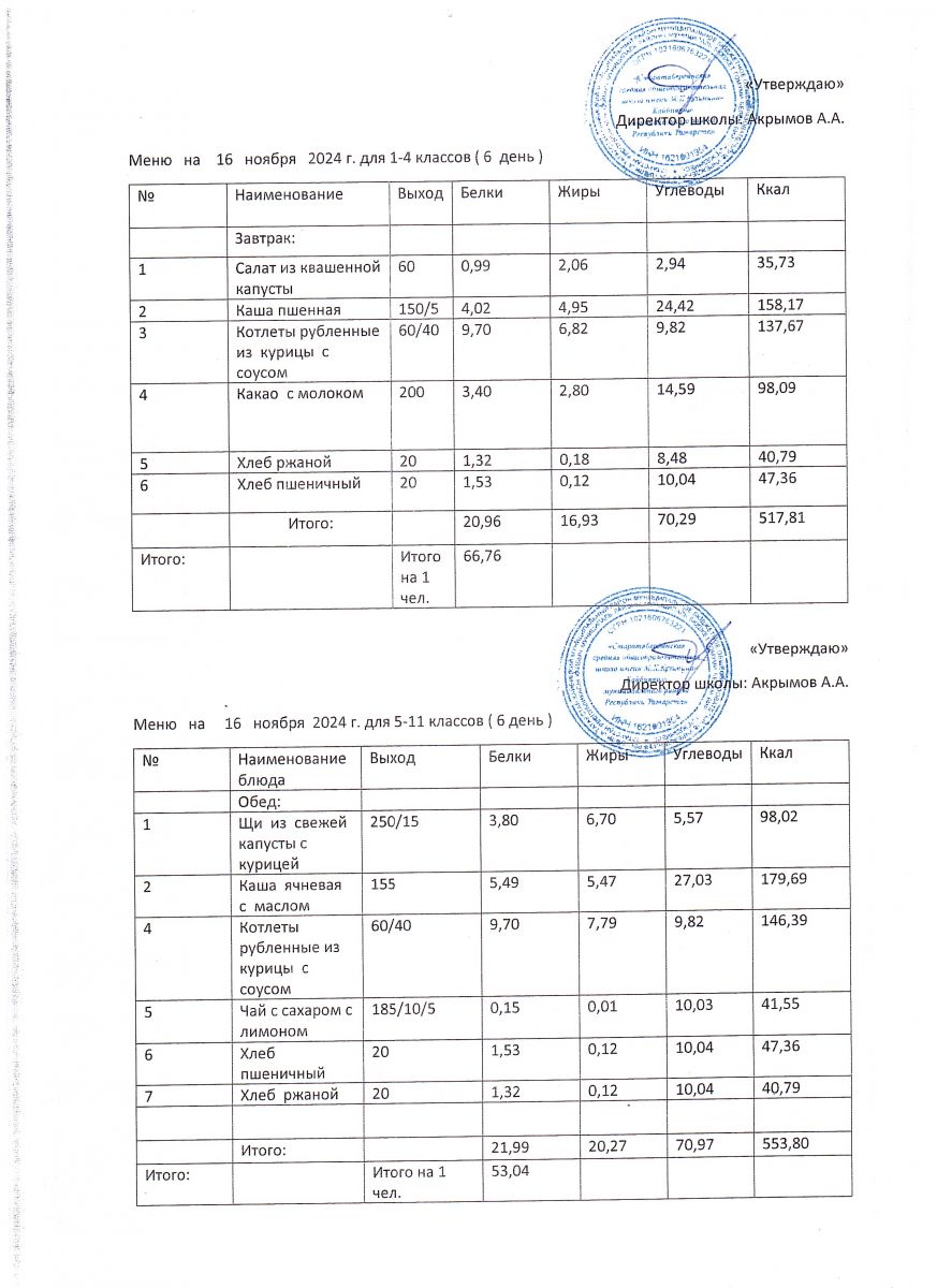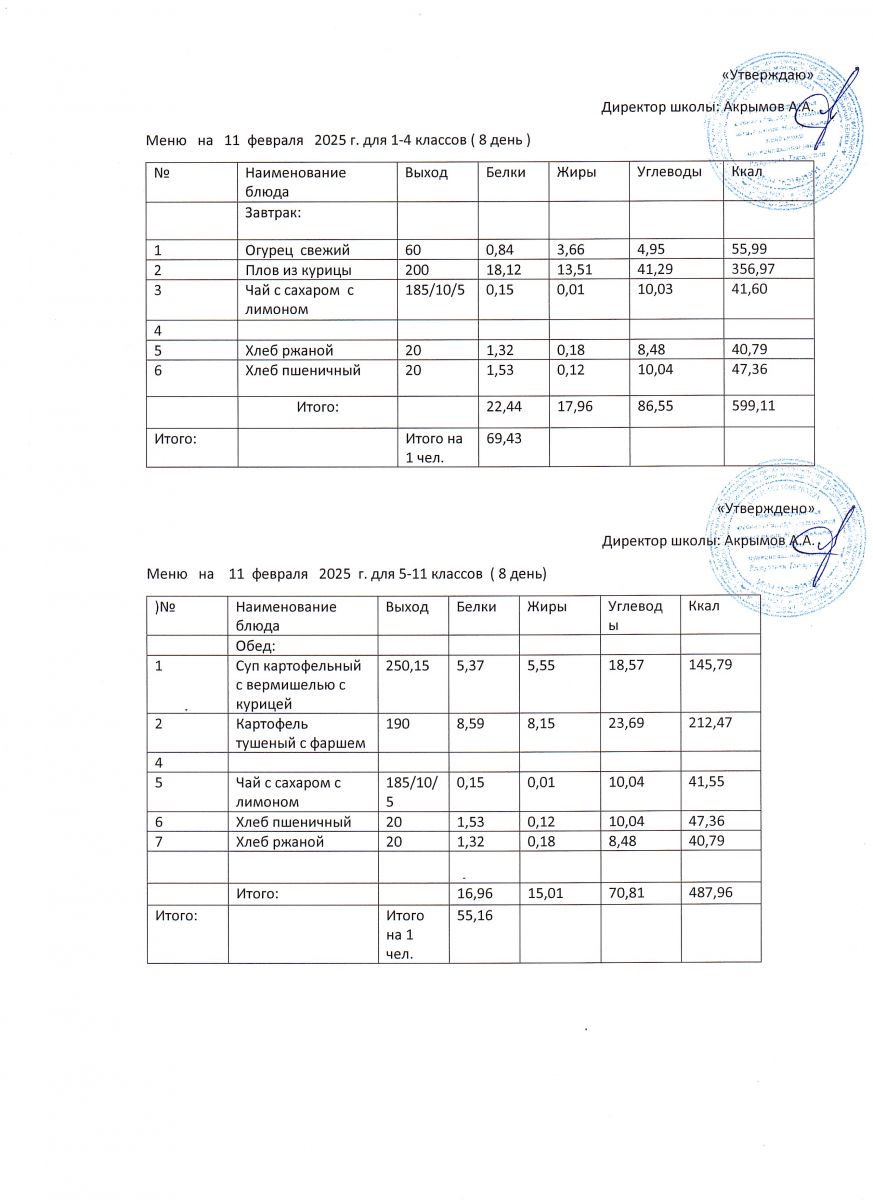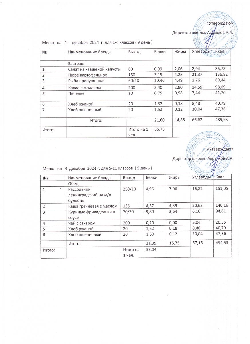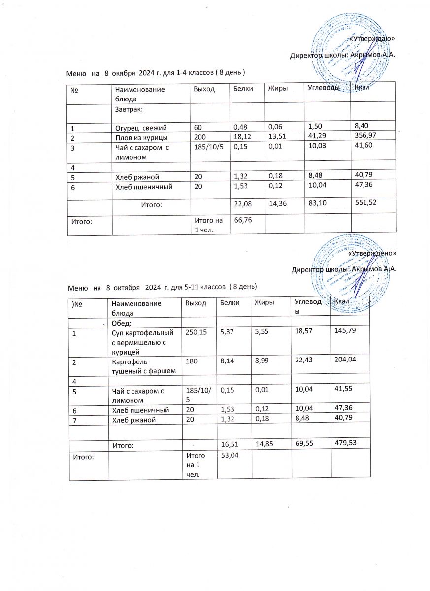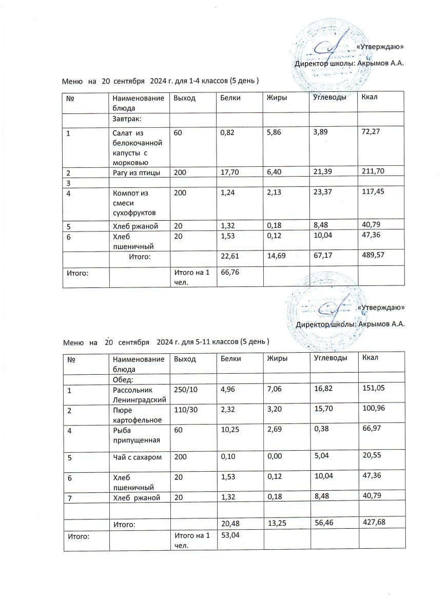 Ежедневное меню учащихся 1-4, 5-11 классов на 2024-2025 уч.год