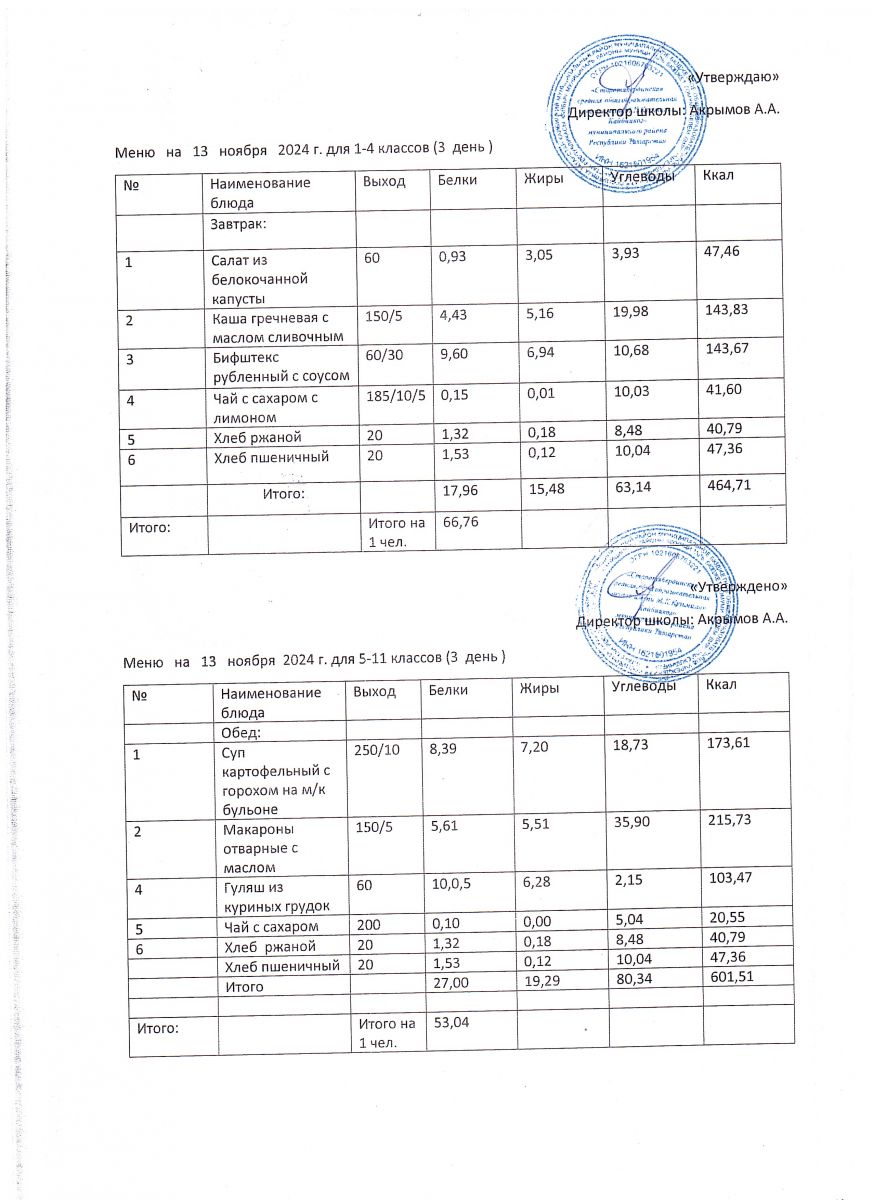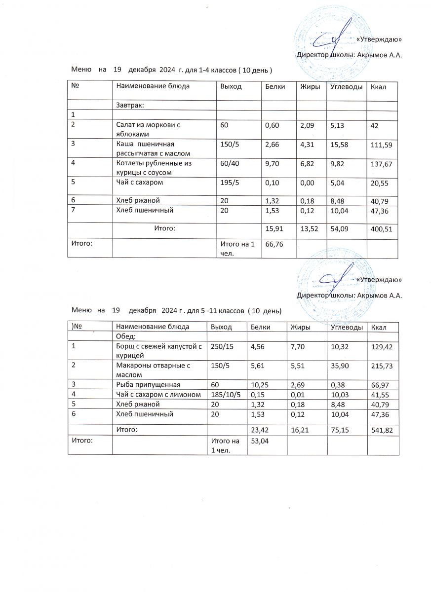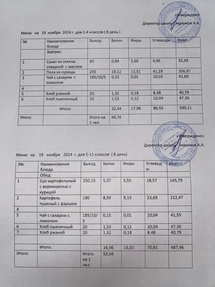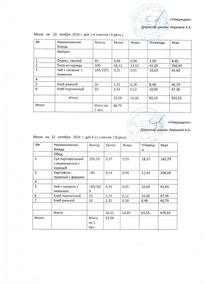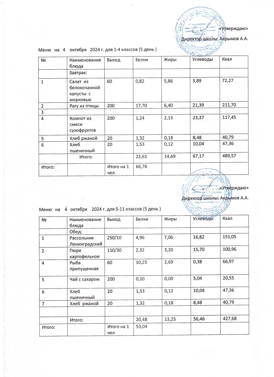 Ежедневное меню учащихся 1-4, 5-11 классов на 2024-2025 уч.год