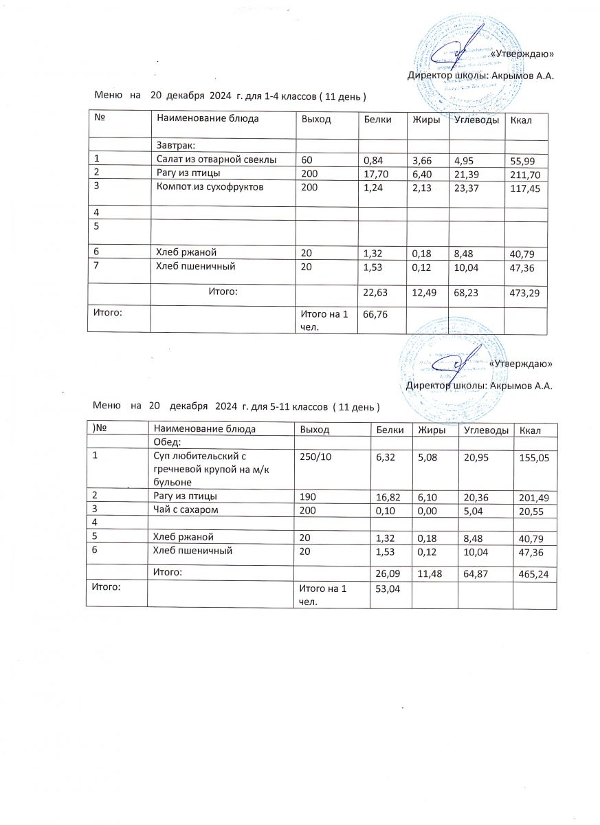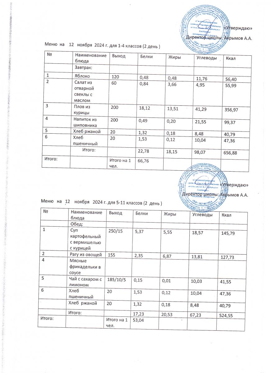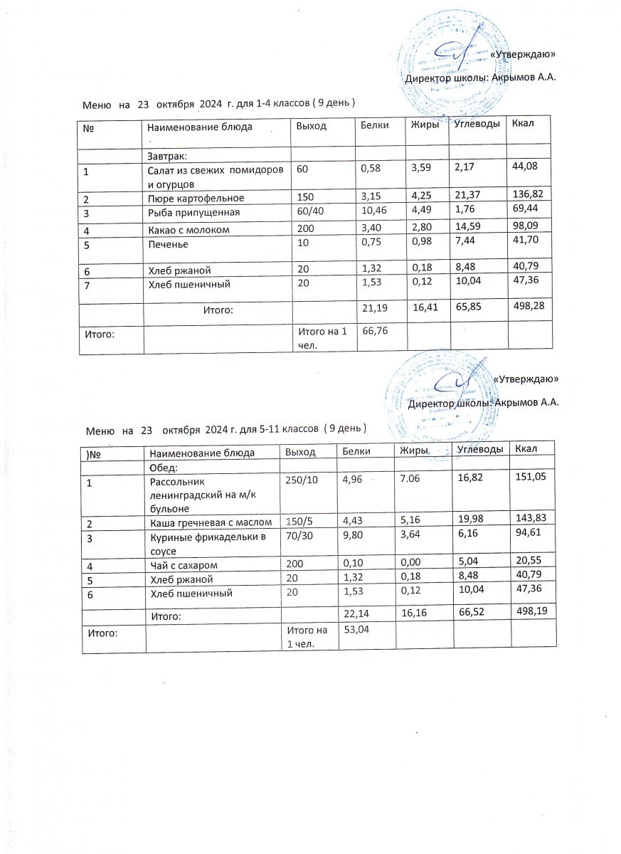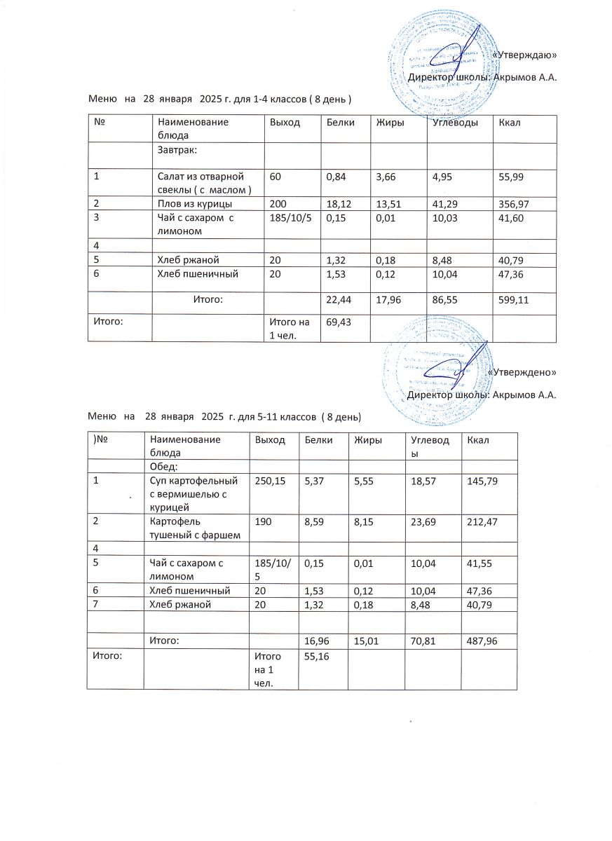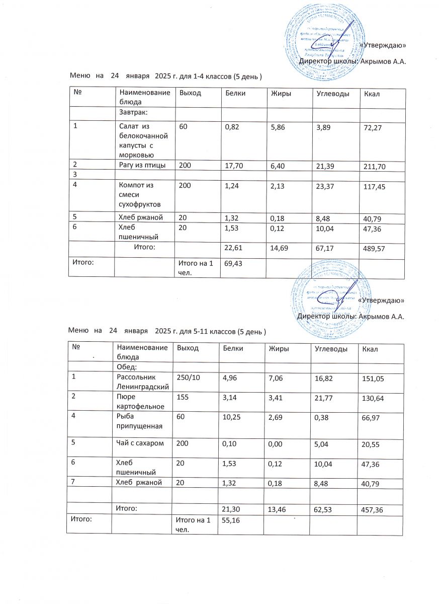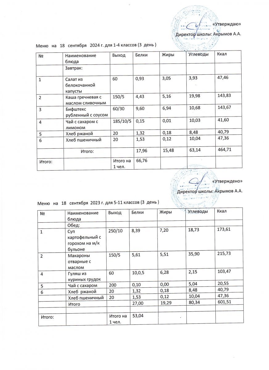 Ежедневное меню учащихся 1-4, 5-11 классов на 2024-2025 уч.год