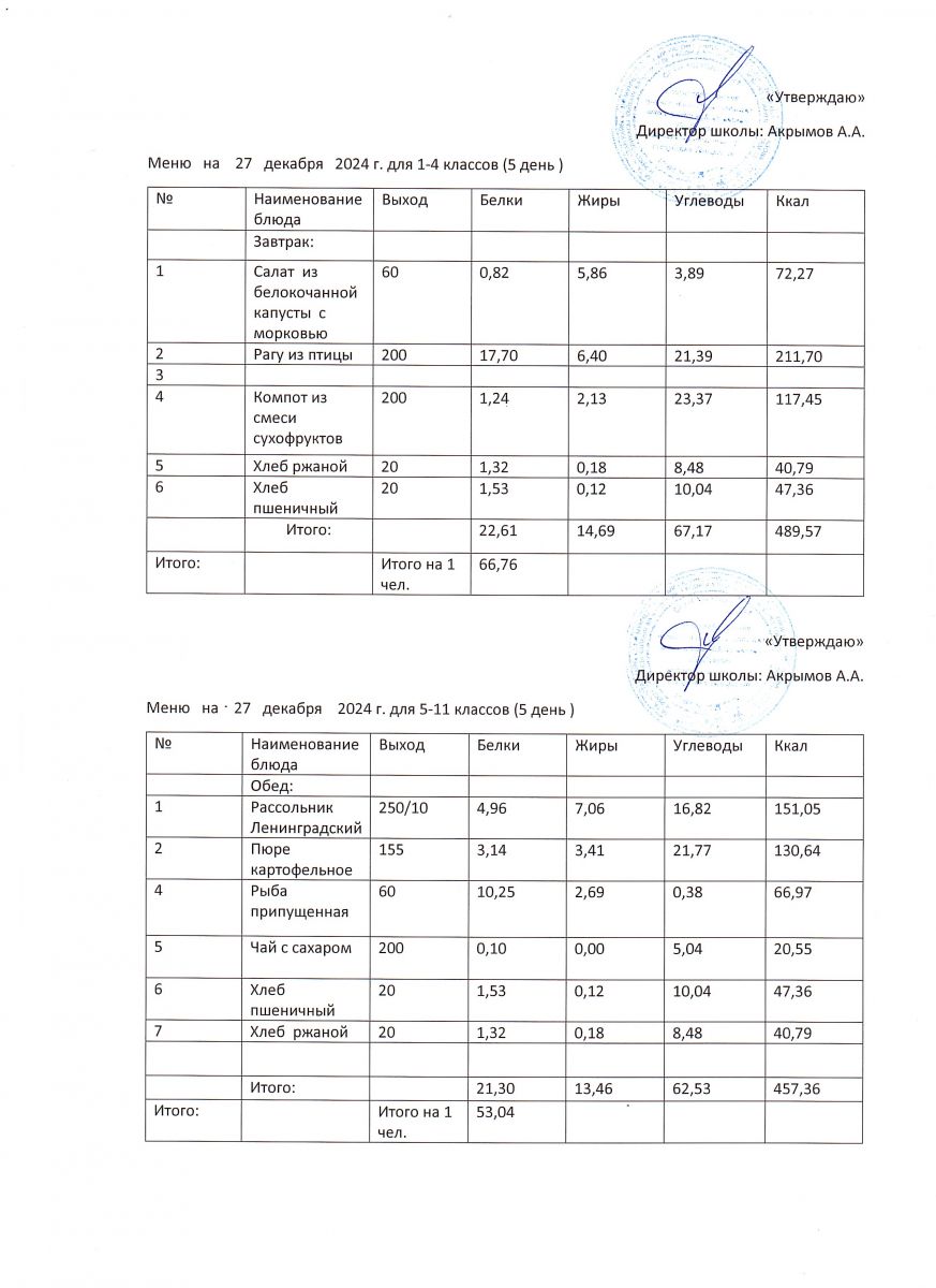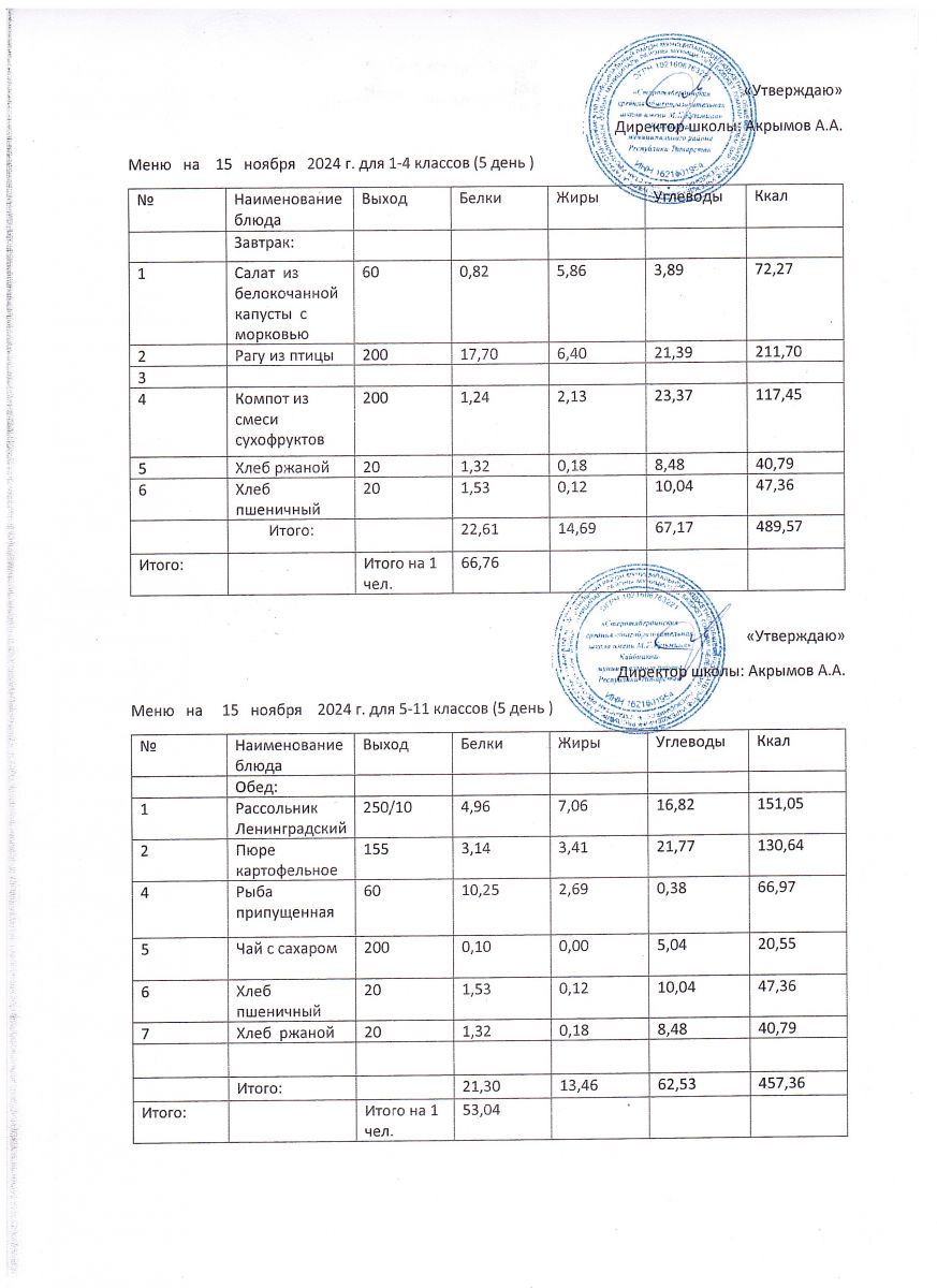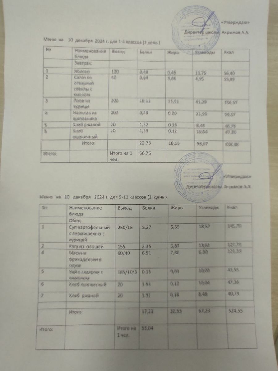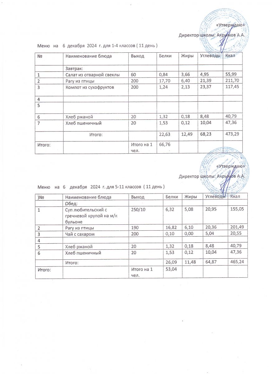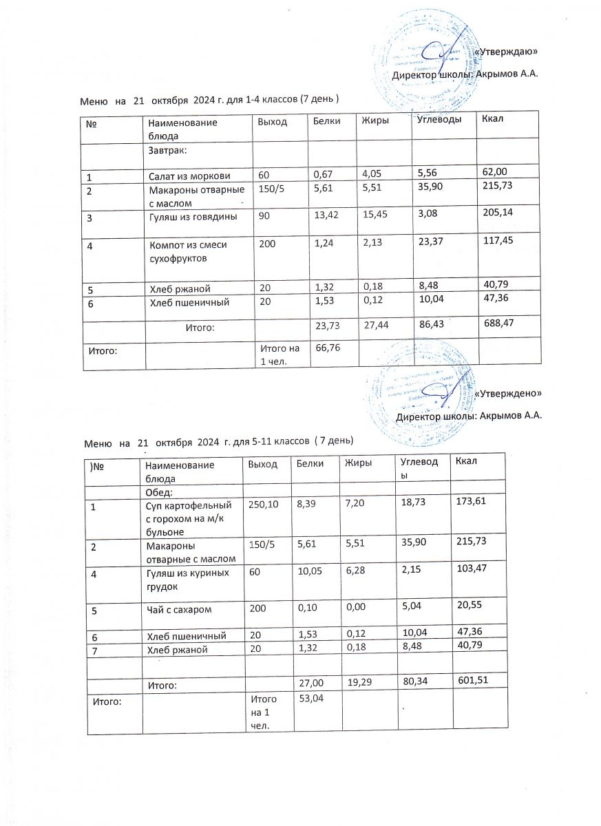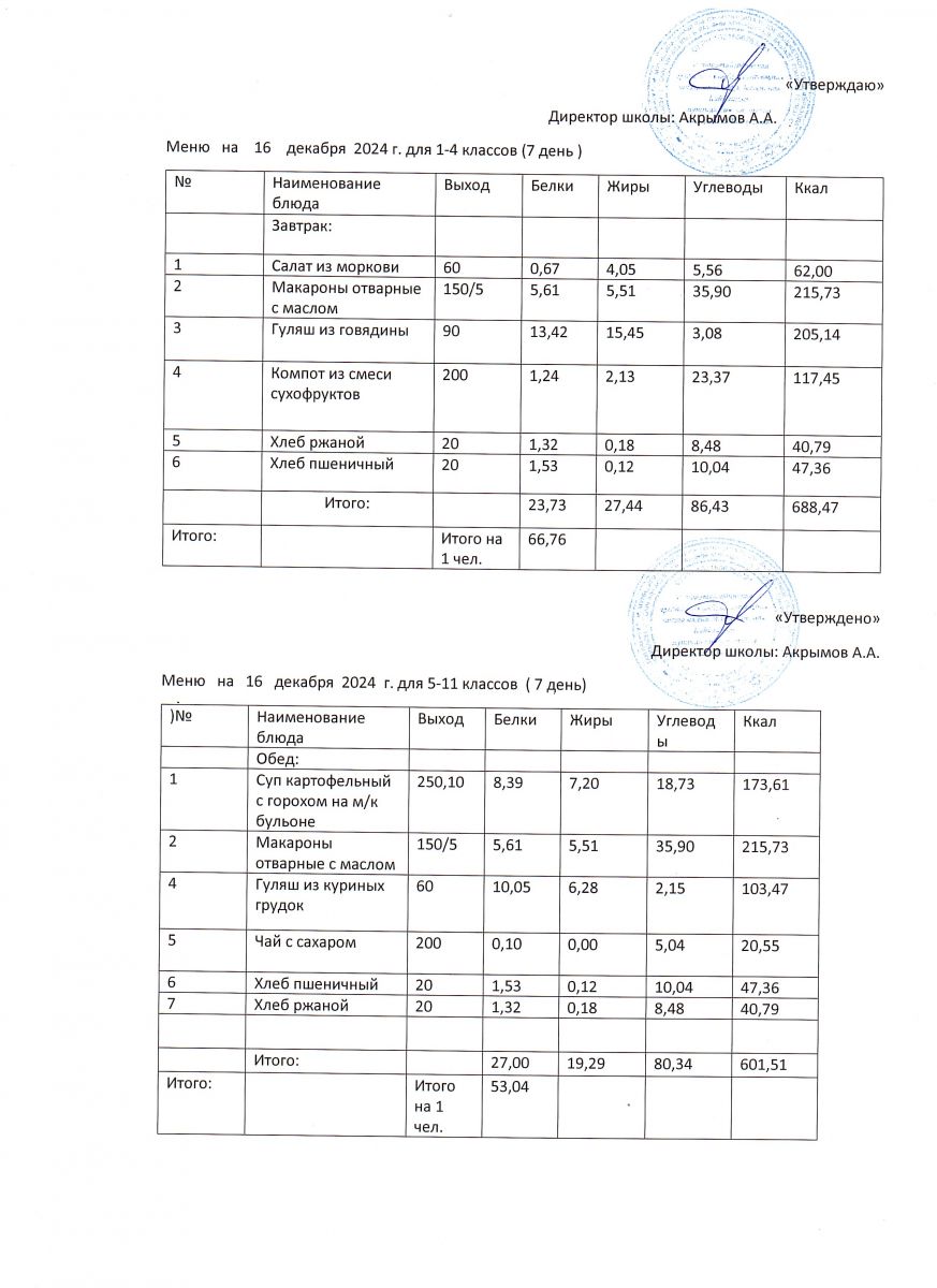 Ежедневное меню учащихся 1-4, 5-11 классов на 2024-2025 уч.год