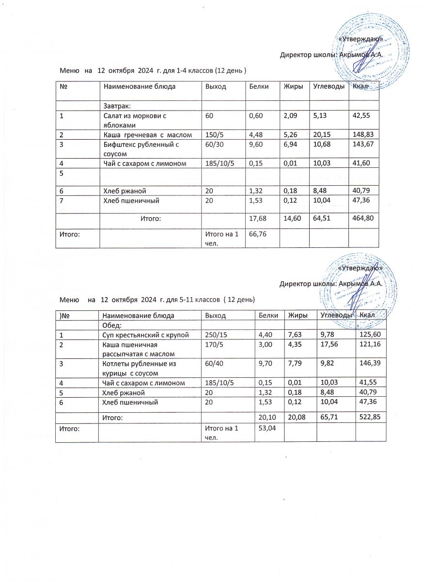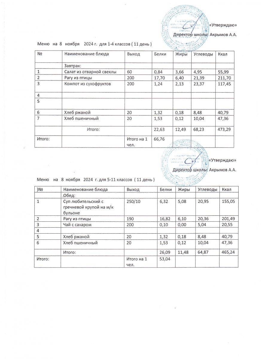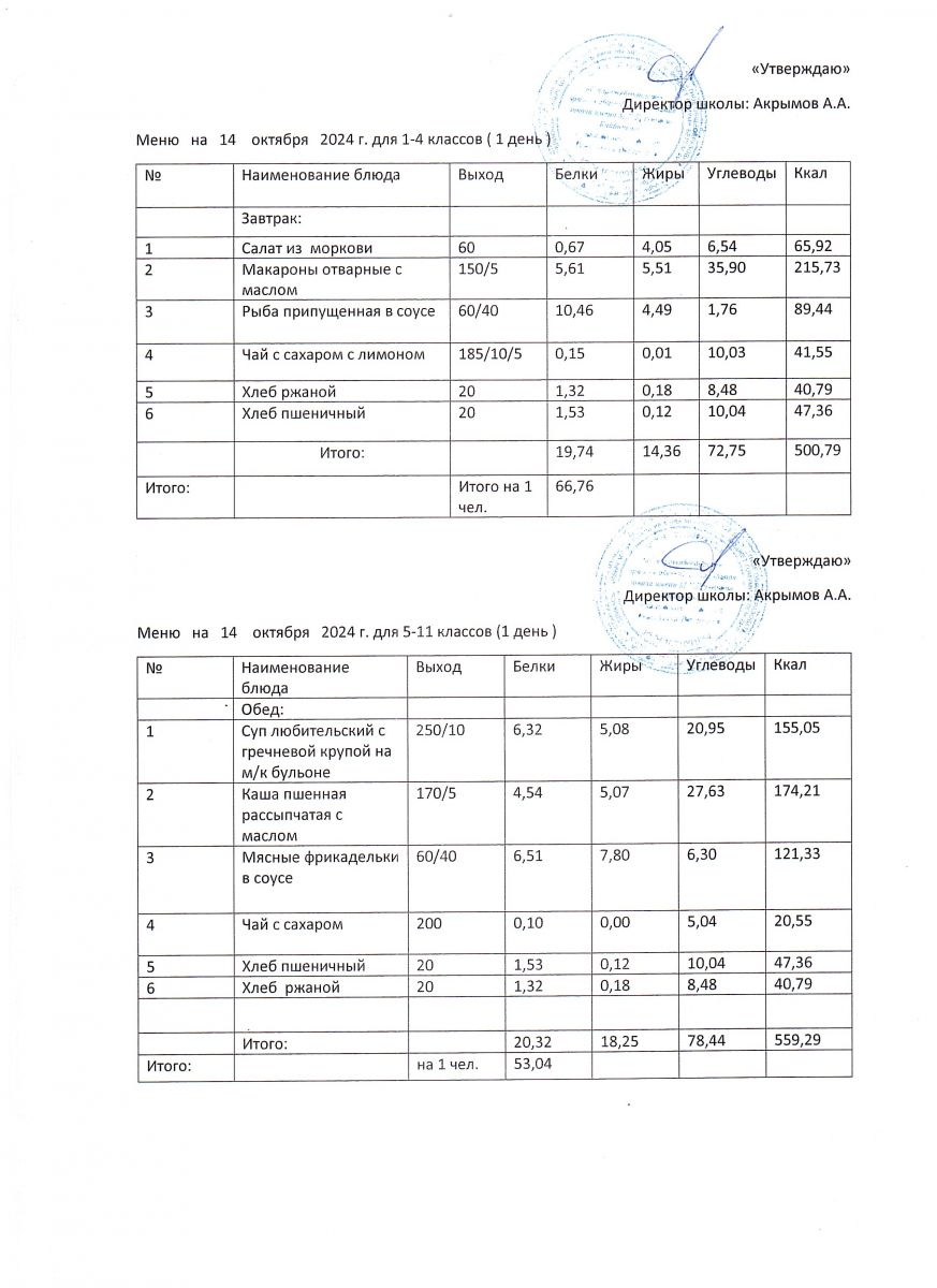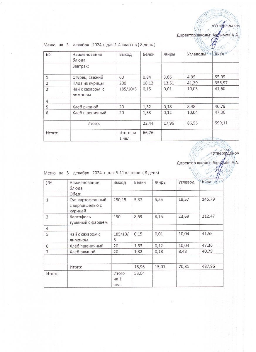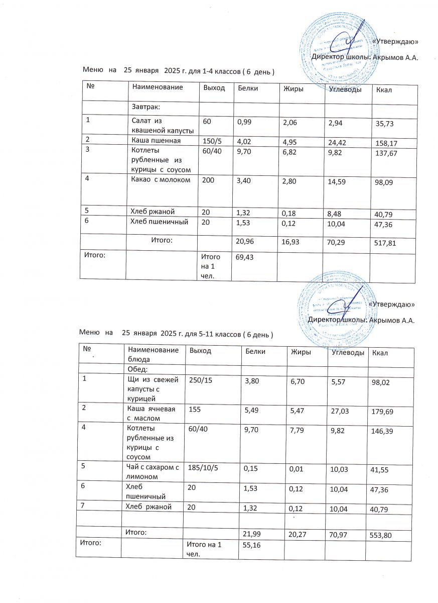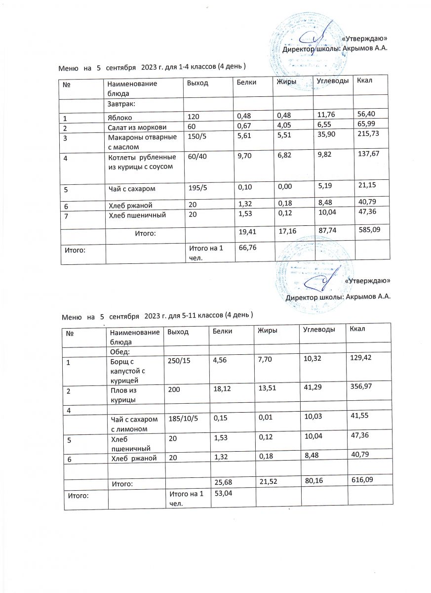 Ежедневное меню учащихся 1-4, 5-11 классов на 2024-2025 уч.год