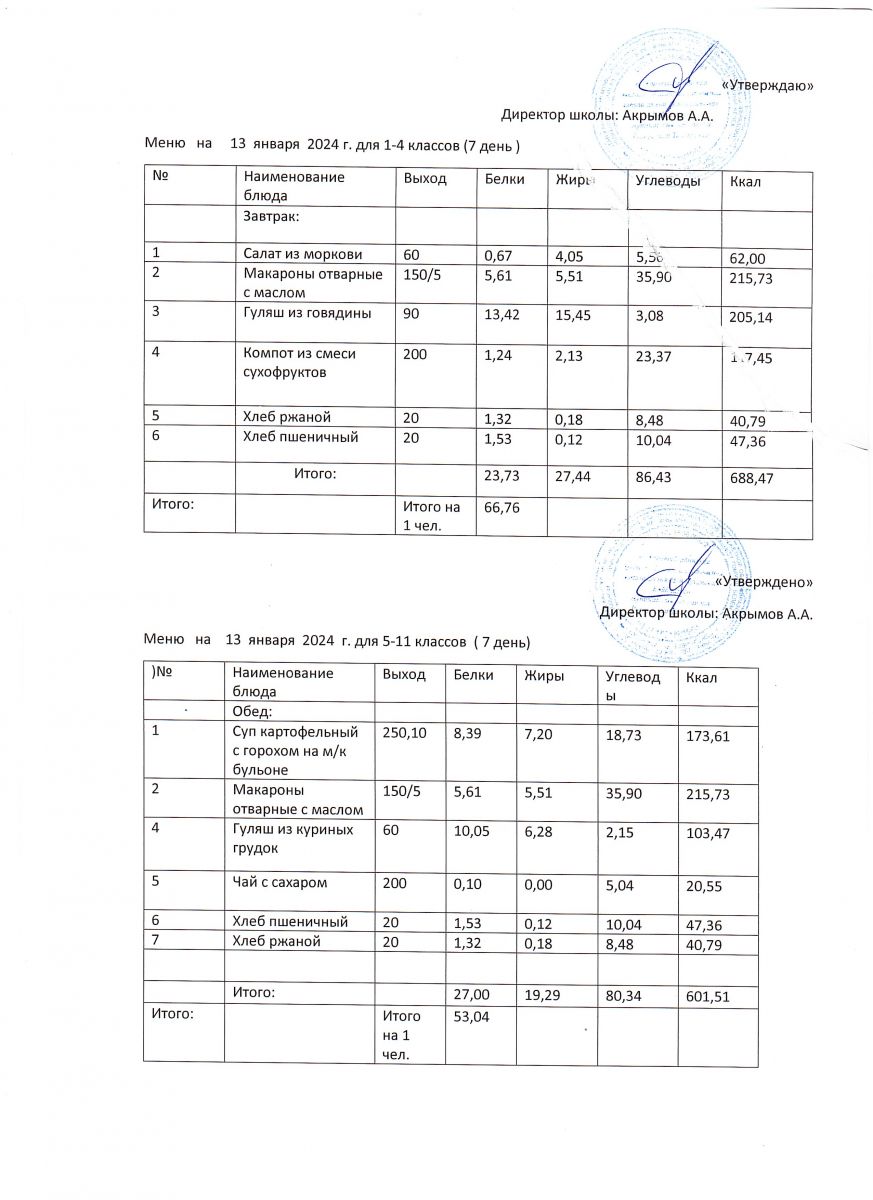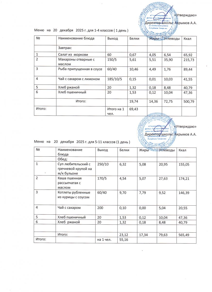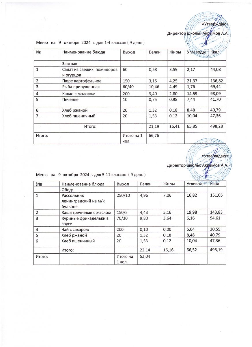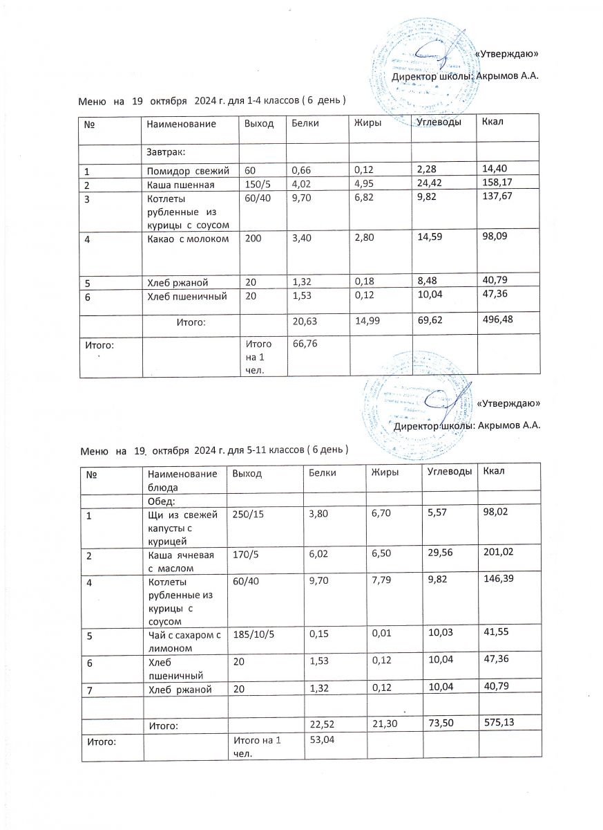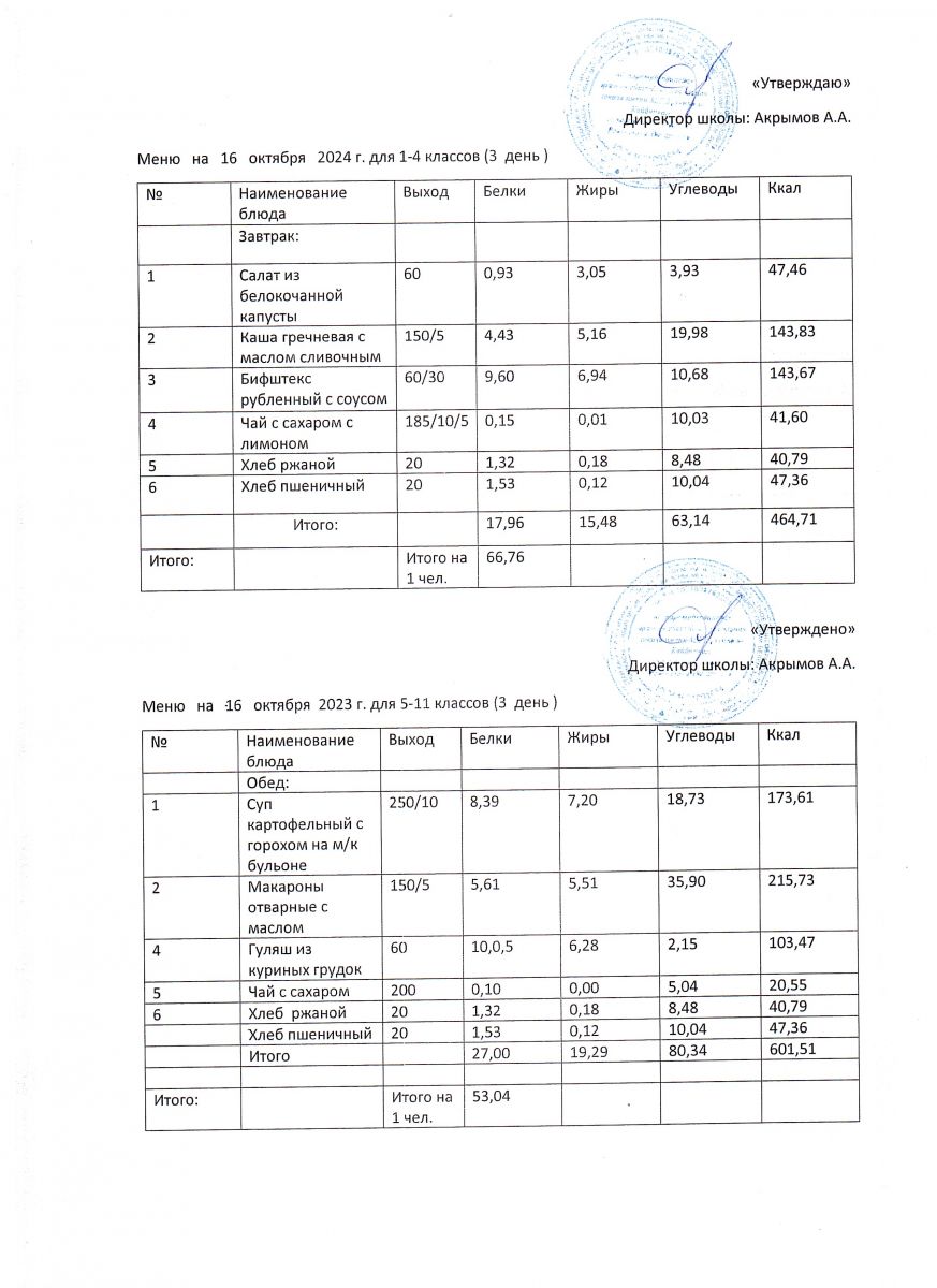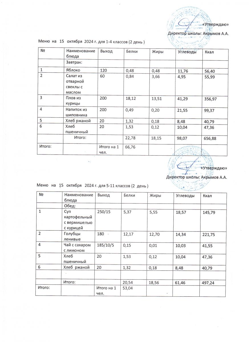 Ежедневное меню учащихся 1-4, 5-11 классов на 2024-2025 уч.год