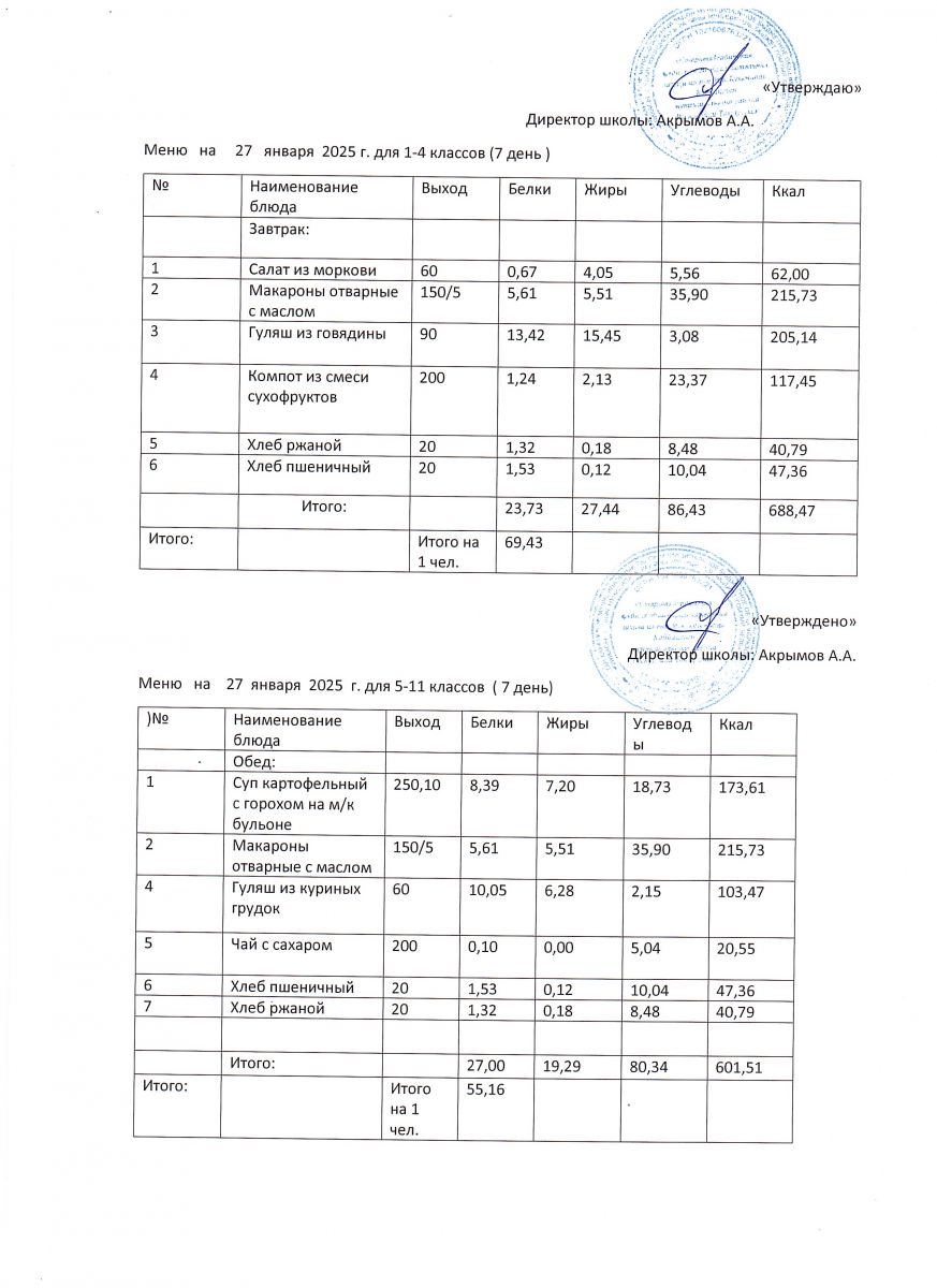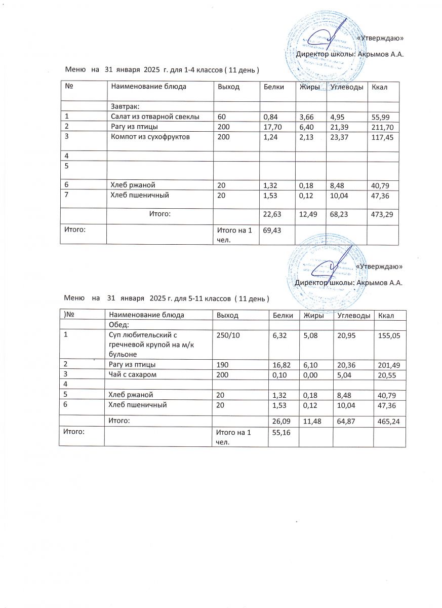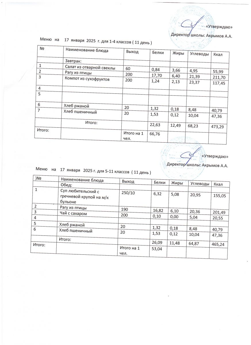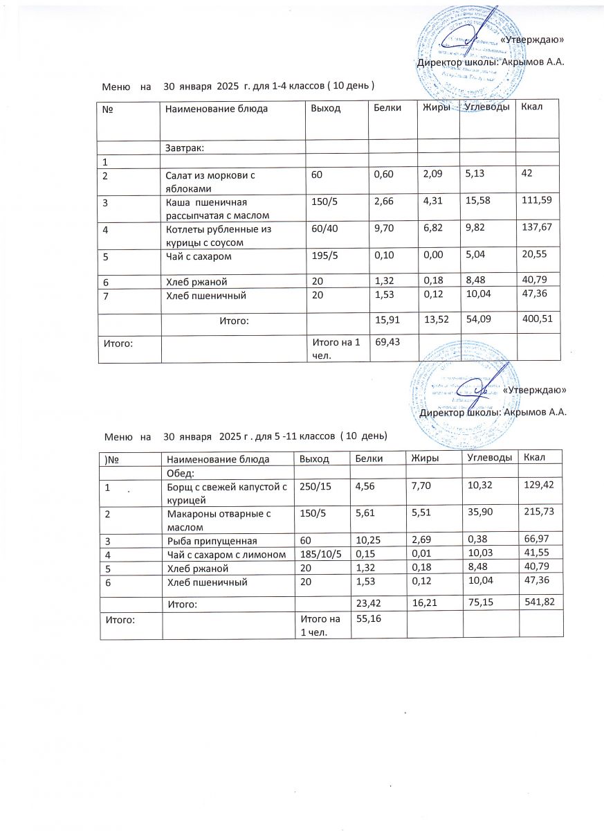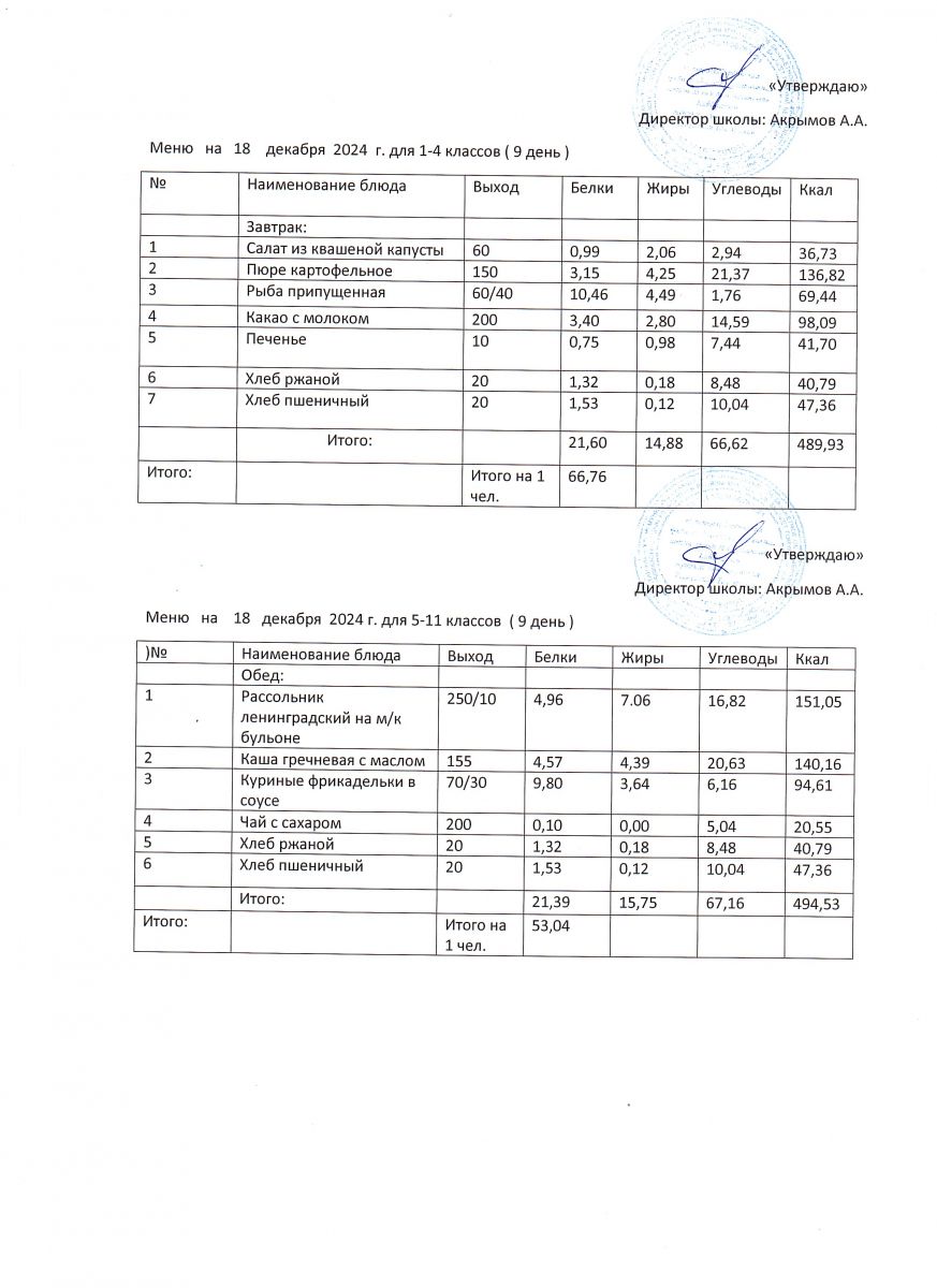 Ежедневное меню учащихся 1-4, 5-11 классов на 2024-2025 уч.год