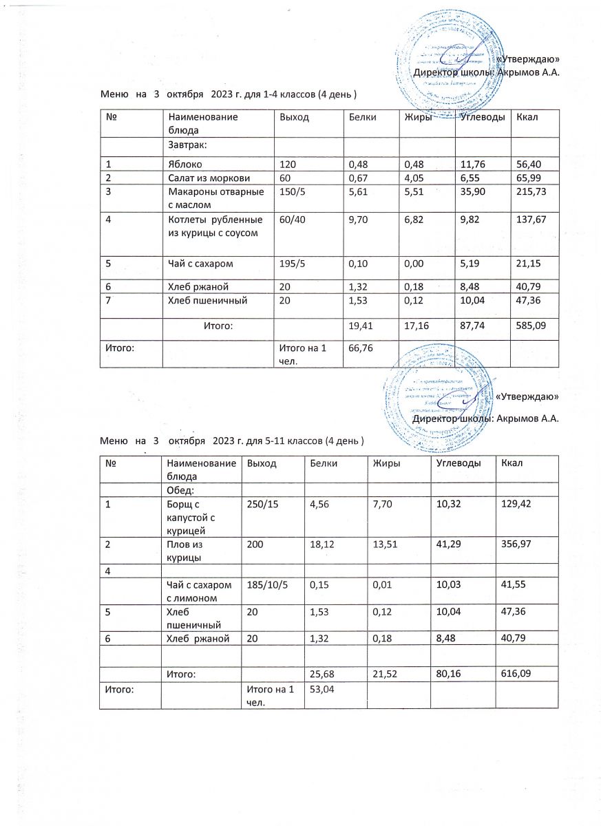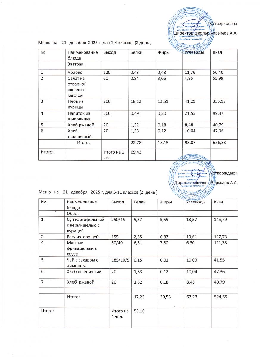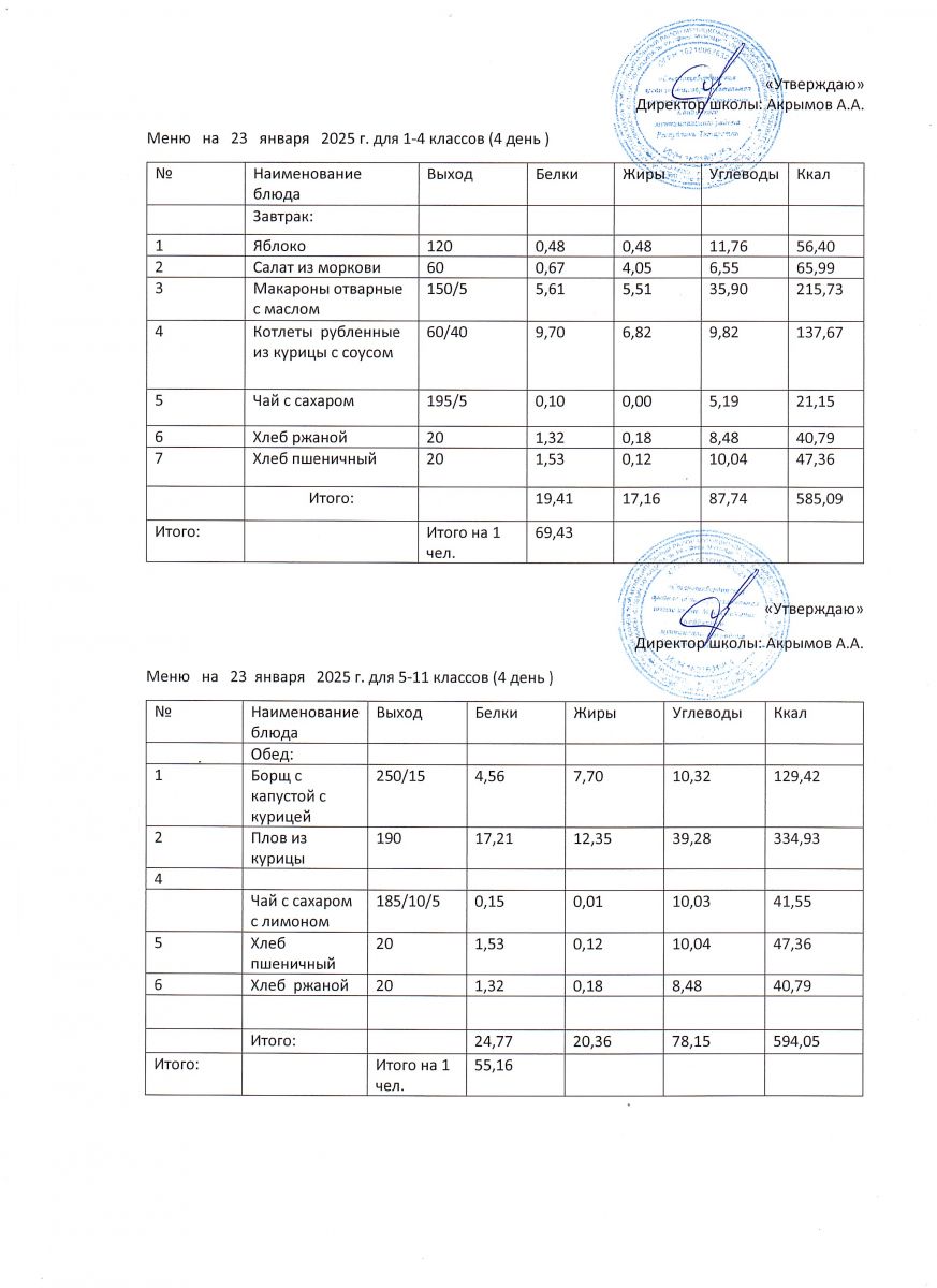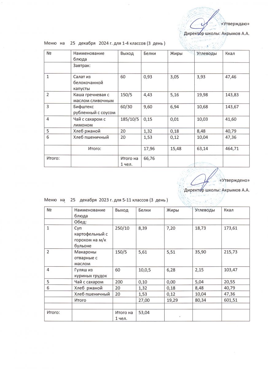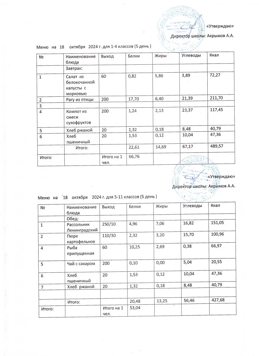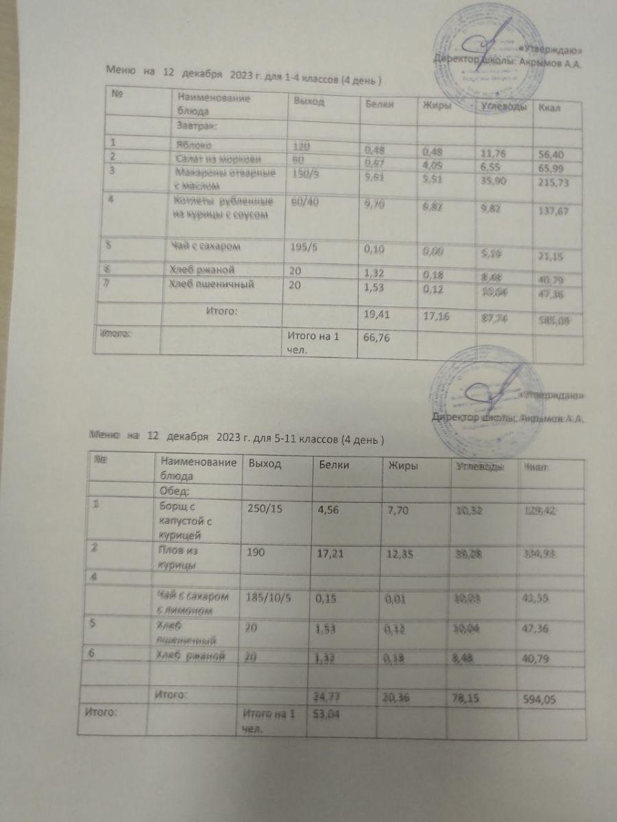 Ежедневное меню учащихся 1-4, 5-11 классов на 2024-2025 уч.год