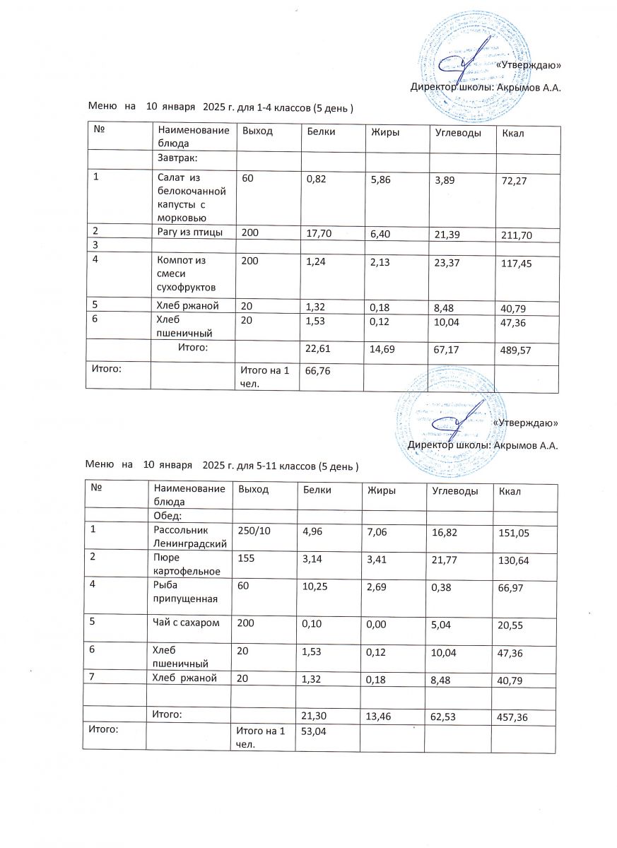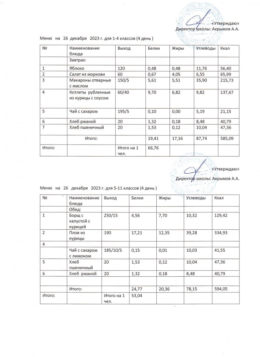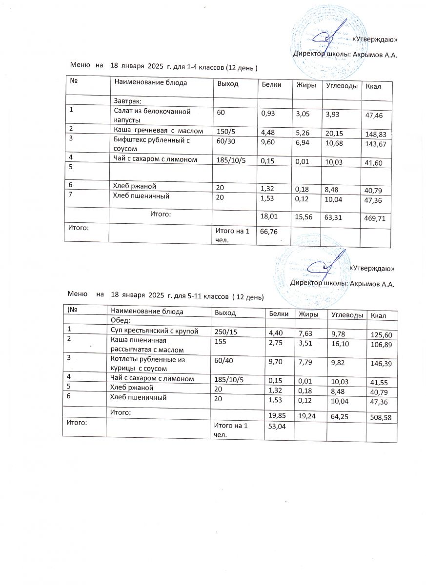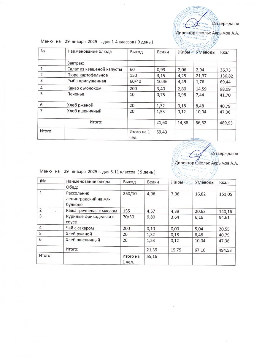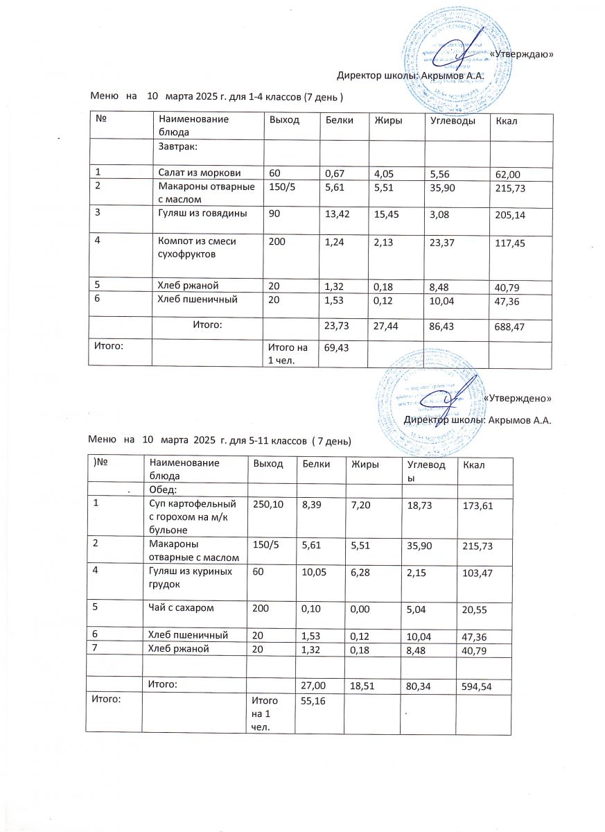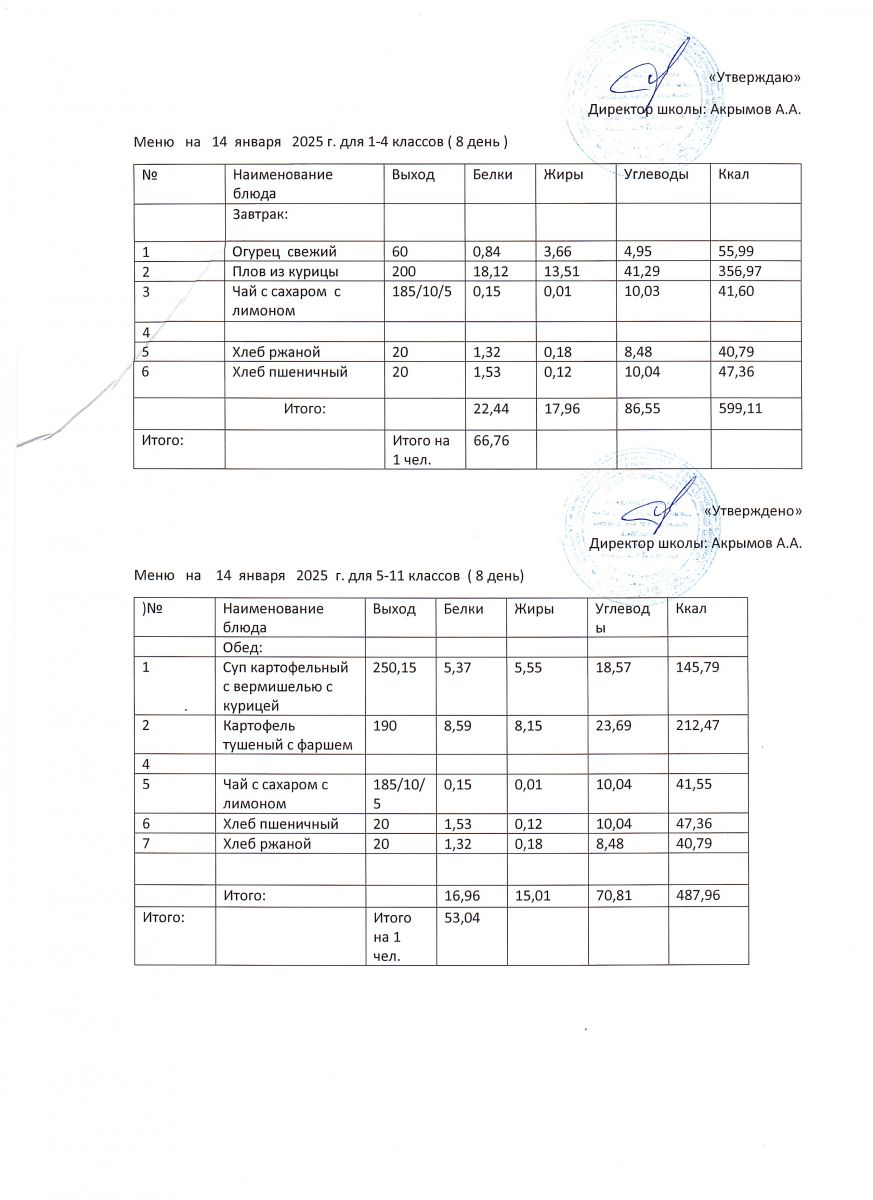 Ежедневное меню учащихся 1-4, 5-11 классов на 2024-2025 уч.год