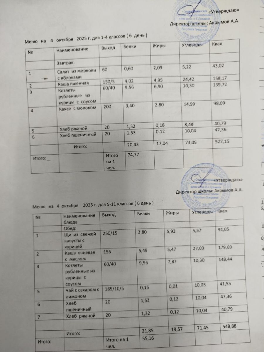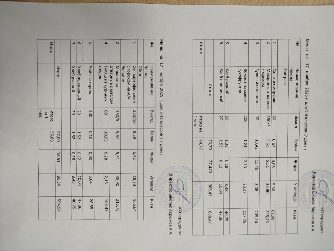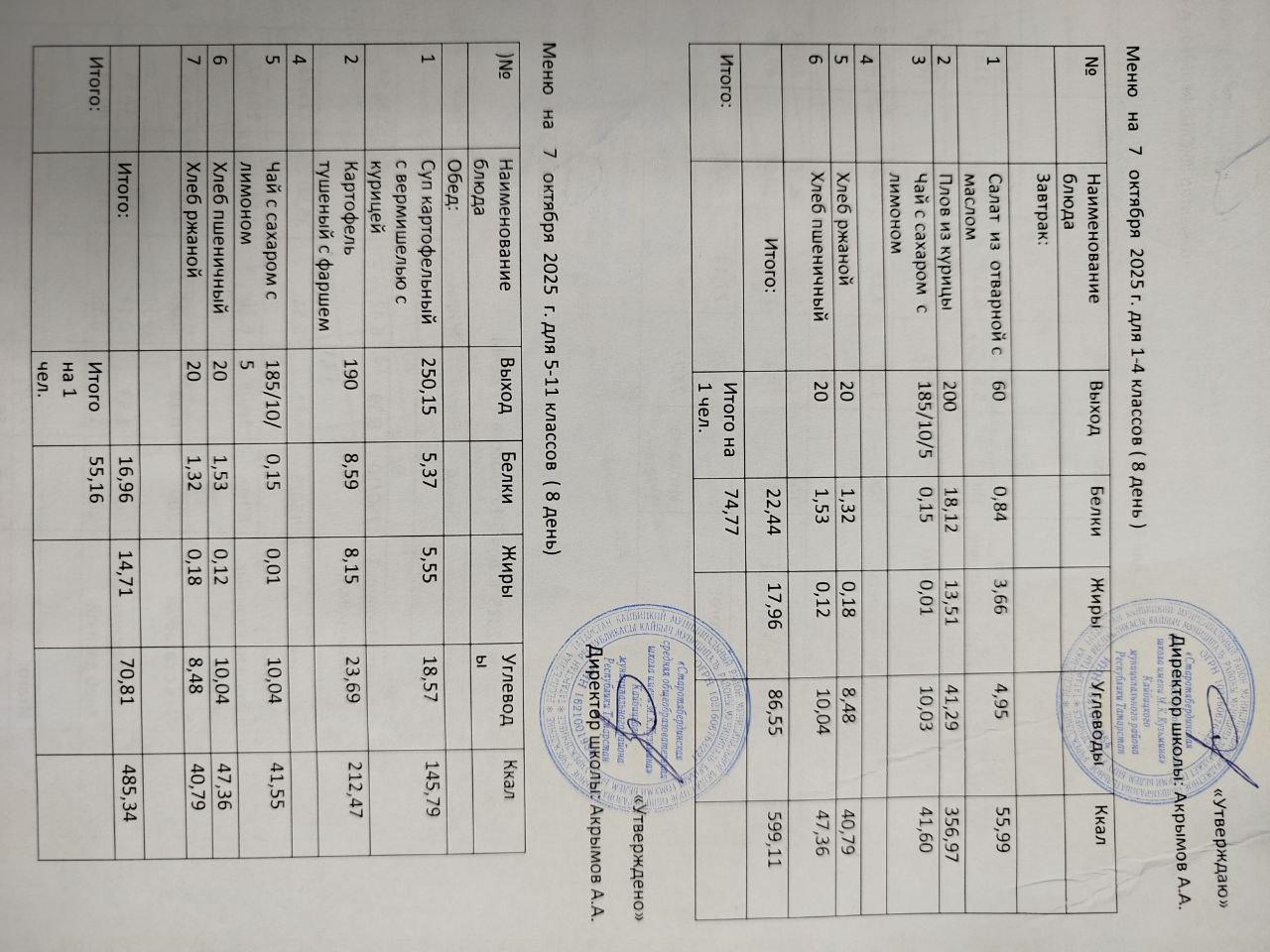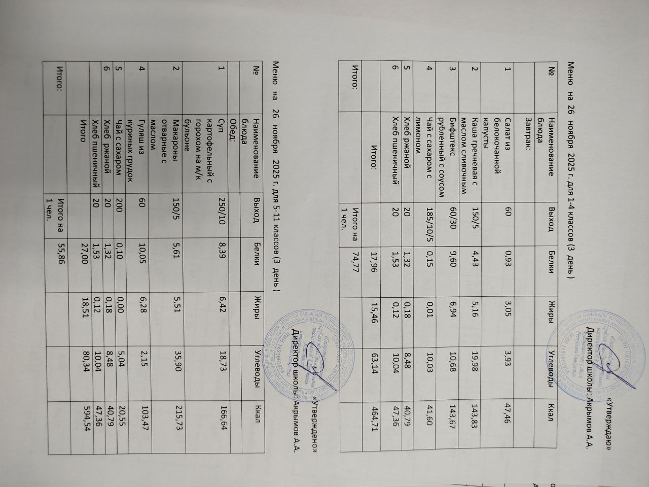 Ежедневное меню учащихся 1-4, 5-11 классов на 2025-2026 уч.год