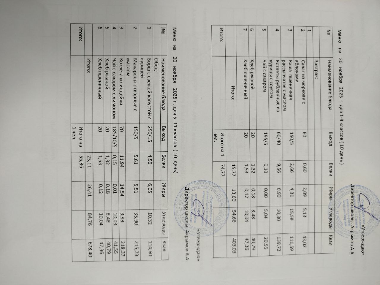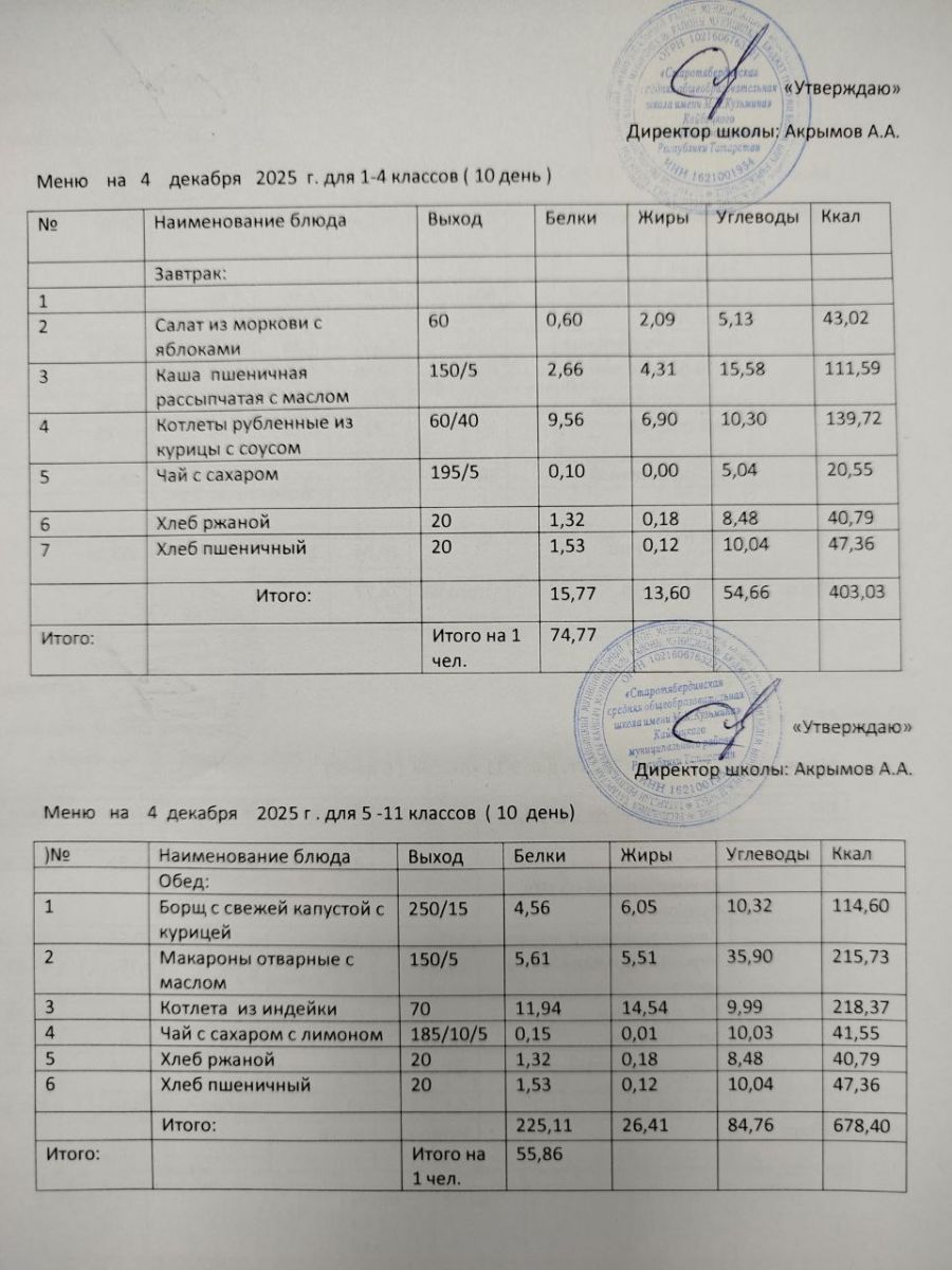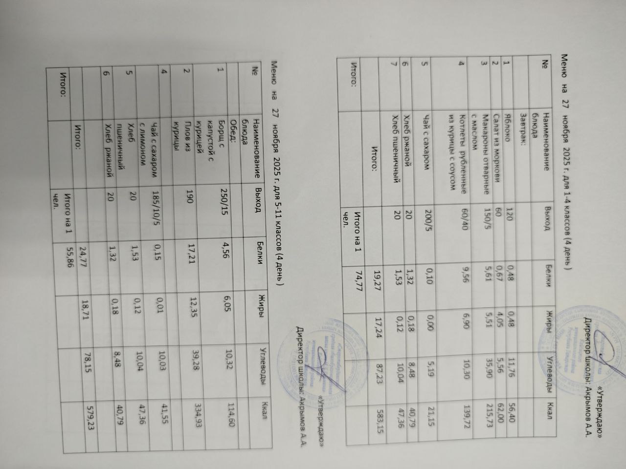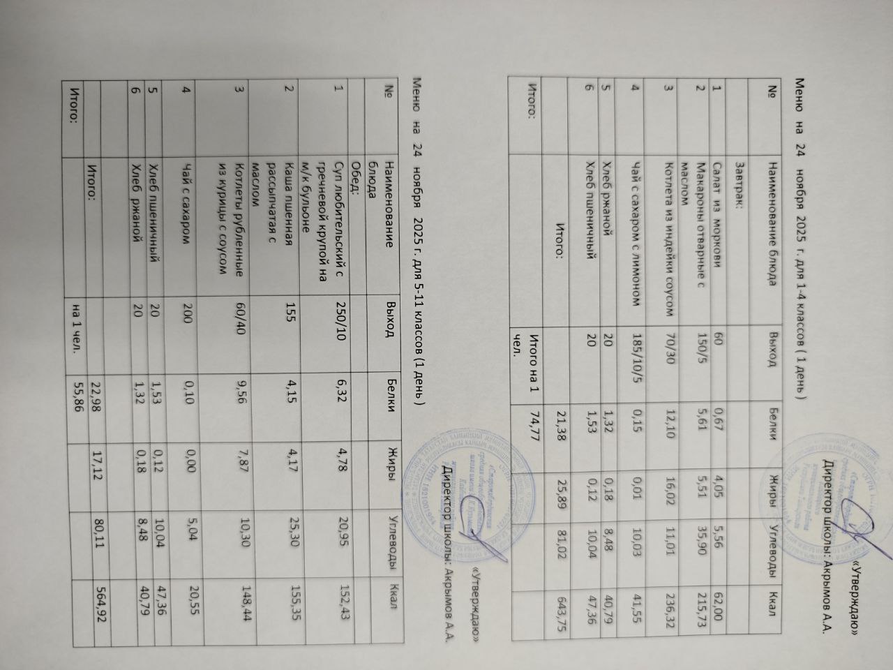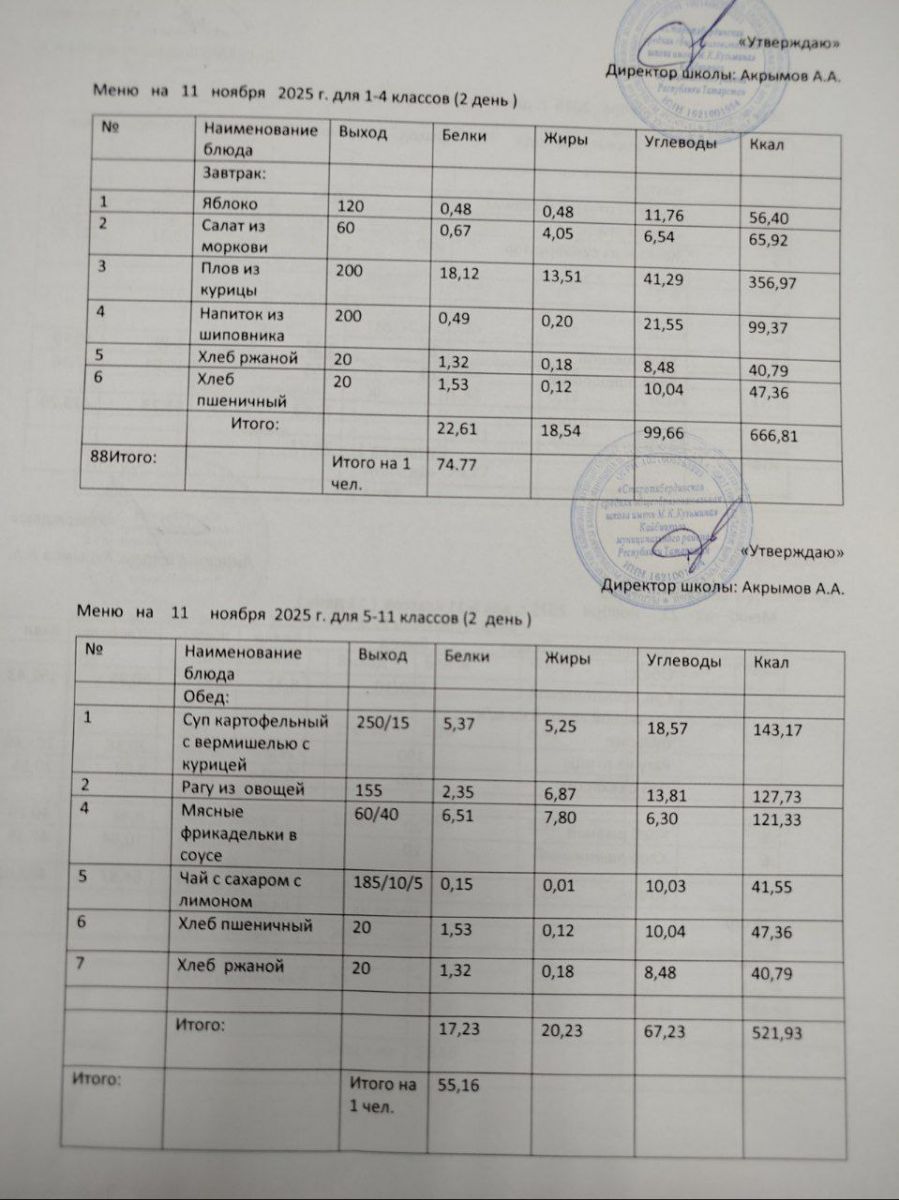 Ежедневное меню учащихся 1-4, 5-11 классов на 2025-2026 уч.год
