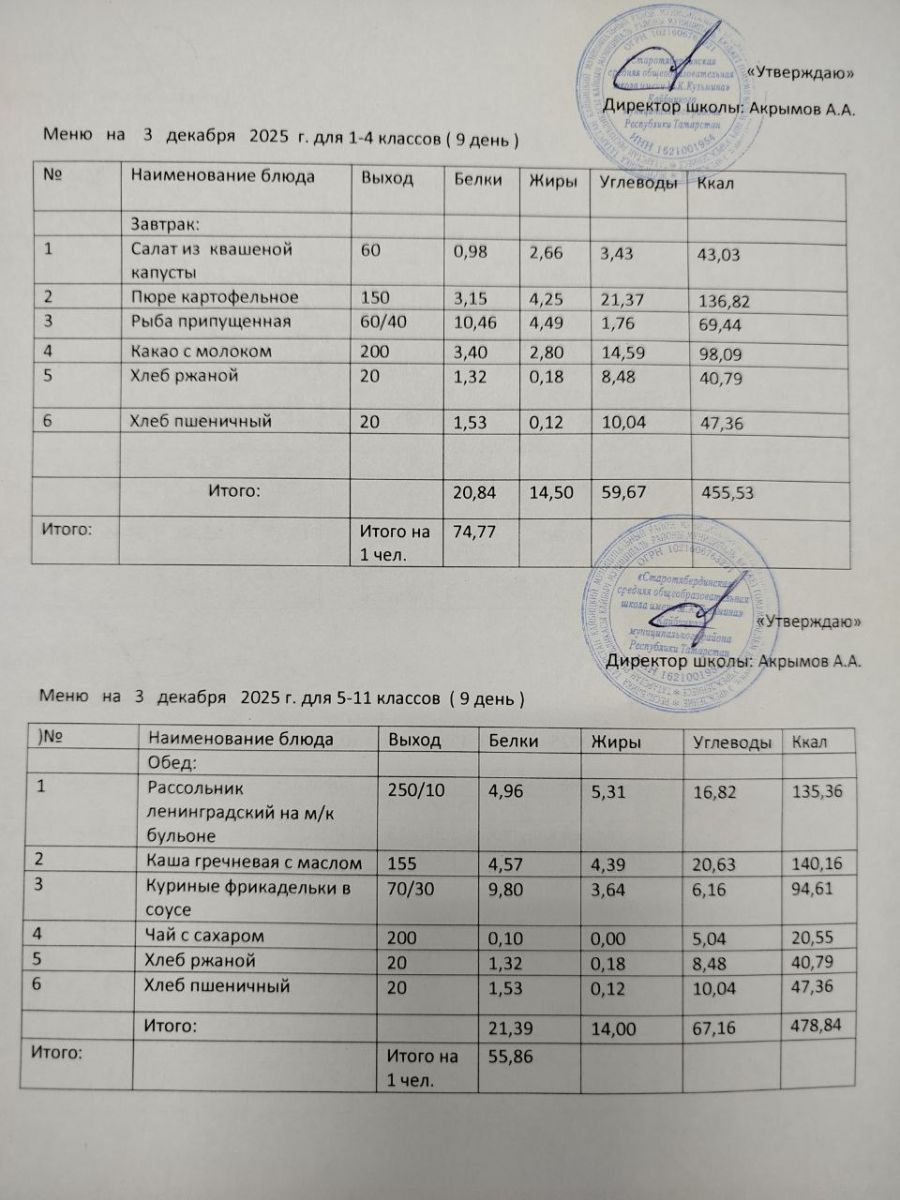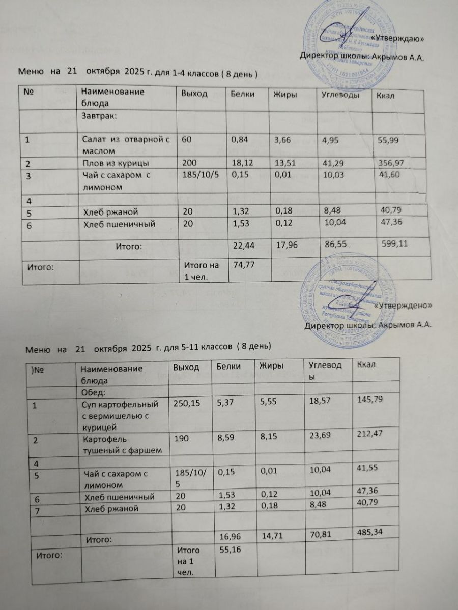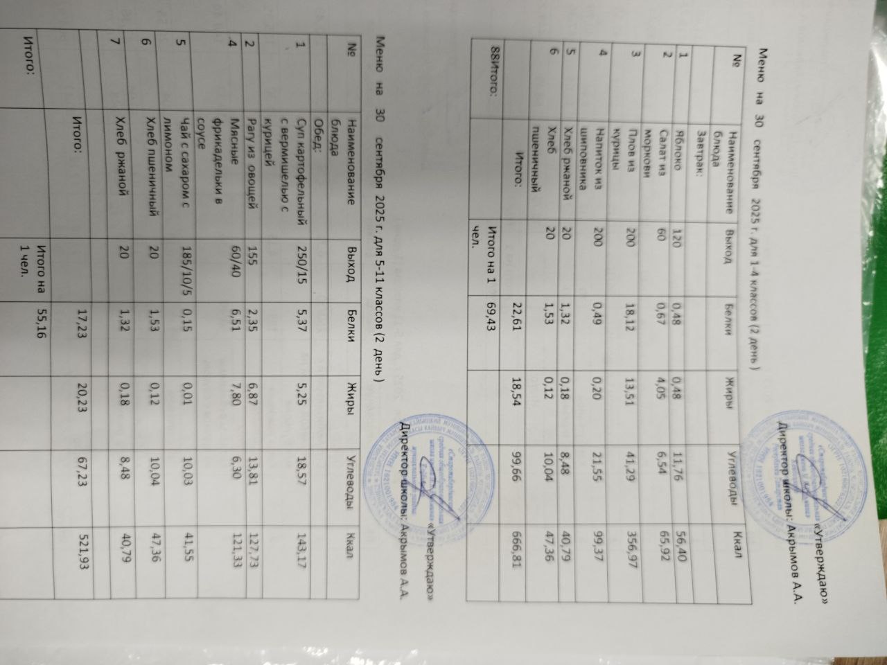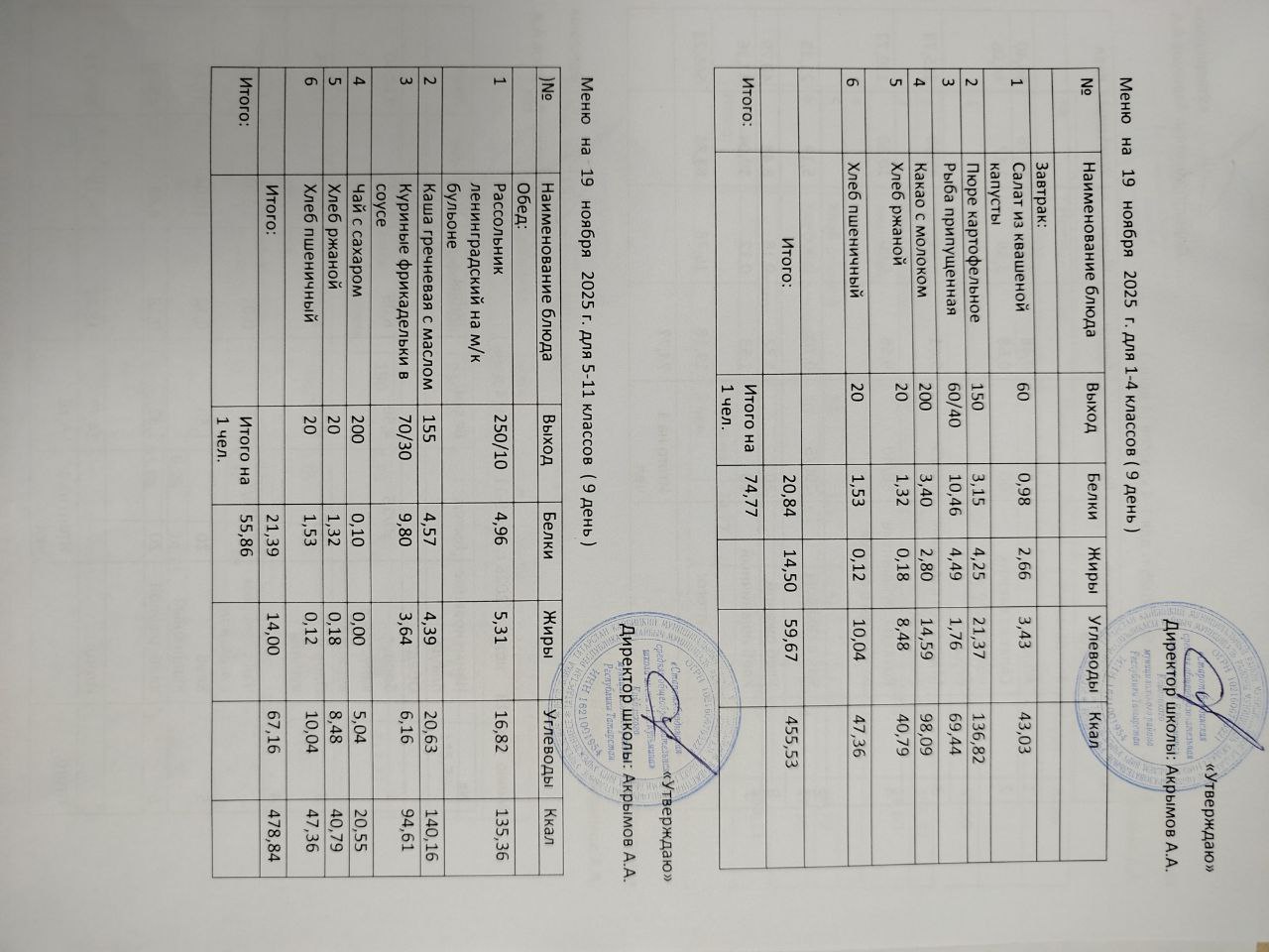 Ежедневное меню учащихся 1-4, 5-11 классов на 2025-2026 уч.год