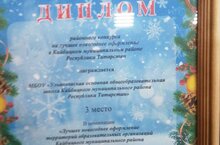 29 декабря в администрации Кайбицкого района состоялось торжественное мероприятие, посвященное итогам конкурса на лучшее новогоднее оформление «Новый Год-2024». Участников конкурса поблагодарила Глава Кайбицкого муниципального района А.И.Рахматуллин..Приятно то, что с каждым годом жители района, предприниматели, руководители организаций, школ, детских садов, учреждений культуры всё тщательнее подходят к новогоднему оформлению своих домов и организаций.Очень приятно нашему коллективу, что и наше новогоднее оформление не осталось без внимания, и наша школа была удостоена Диплома за 3 место в номинации "Лучшее новогоднее оформление территорий образовательных учреждений"