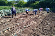 На пришкольном участке вовсю кипит работа. Учителя и учащиеся сегодня заняты уборкой репчатого лука. Несмотря на засушливое лето, урожай вырастили неплохой.