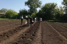 На пришкольном участке учащиеся под руководством учителей высадили рассаду капусты.