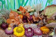 Одно из красивейших времён года по праву можно считать - осень. Осень - замечательная пора, которая своей безграничной красотой вдохновляет на что-то прекрасное. Дети и родители с большим удовольствием и энтузиазмом создавали свои работы, в которых проявили свои творческие способности. С радостью несли их в детский сад. Поделки были сделаны из различного материала: осенних листьев, овощей, шишек, желудей, веточек ягод, травы, коры деревьев, каштанов и цветов. Вот какое богатство природы было взято для создания замечательных работ!