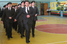 Сегодня в гимназии состоялся "Смотр строя и песни", посвященный Дню Защитника Отечества. Все участники смотра, начиная с учащихся начальной школы и старшеклассники, показали отличную подготовку. Четким шагом и с песней маршировали отряды и взводы. Они представляли разные рода войск. На празднике присутсвовали гости - шефы из военной части, которые вручили грамоты победителям. Проигравших не было!!!