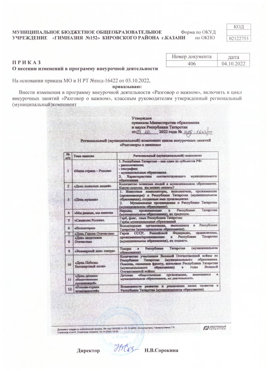 Рабочая программа курса внеурочной деятельности «Разговоры о важном» (НАЧАЛЬНОЕ ОБЩЕЕ ОБРАЗОВАНИЕ ОСНОВНОЕ ОБЩЕЕ ОБРАЗОВАНИЕ СРЕДНЕЕ ОБЩЕЕ ОБРАЗОВАНИЕ) на 2024-2025 учебный годПлан профориентационной работы МБОУ «Гимназия №152» Кировского района г.Казани на2024-2025учебныйгод