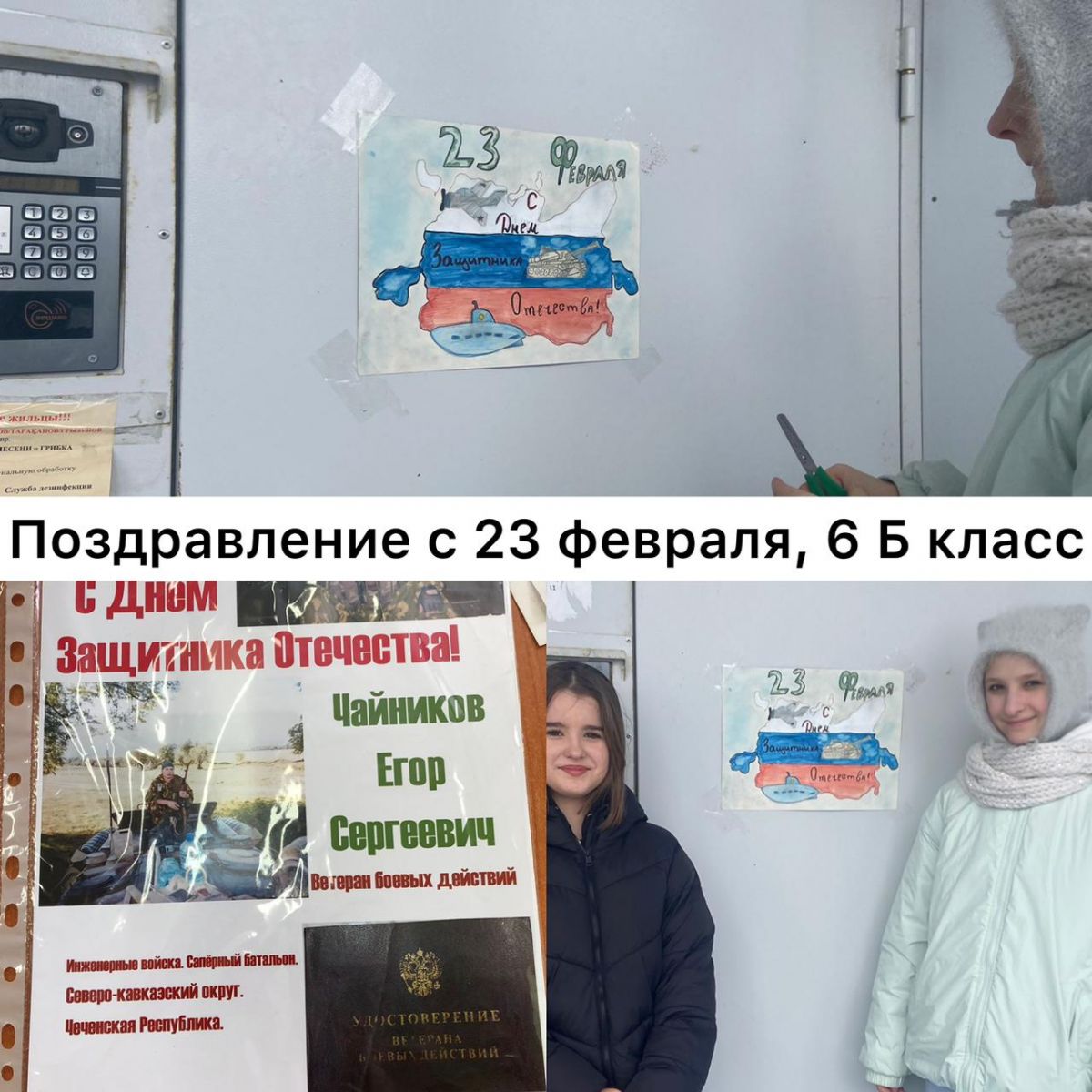 Опубликовано: 22.02.2024Сегодня обучающиеся 6 Б класса нашей гимназии поздравили Ветерана боевых действий с 23 февраля! Ребята в знак уважения сделали ему плакат и пожелали здоровья, благополучия, долгих лет жизни и всего самого доброго.