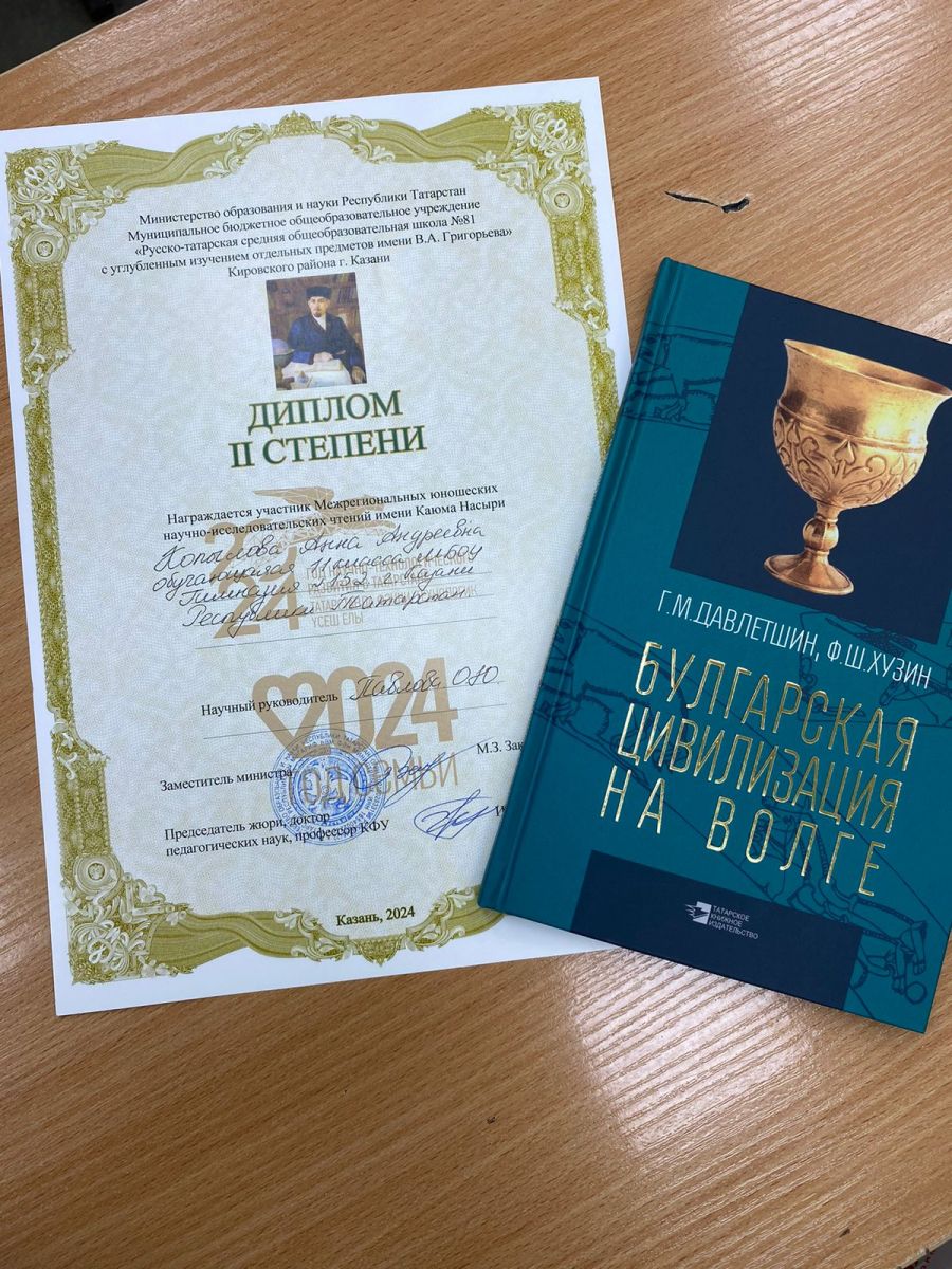 Опубликовано: 26.04.2024Сегодня ученица 11э класса, ППК модуля - Копылова Анна заняла II место на Межрегиональных юношеских чтениях имени Каюма Насыри. Поздравляем нашу победительницу и желаем дальнейших успехов!