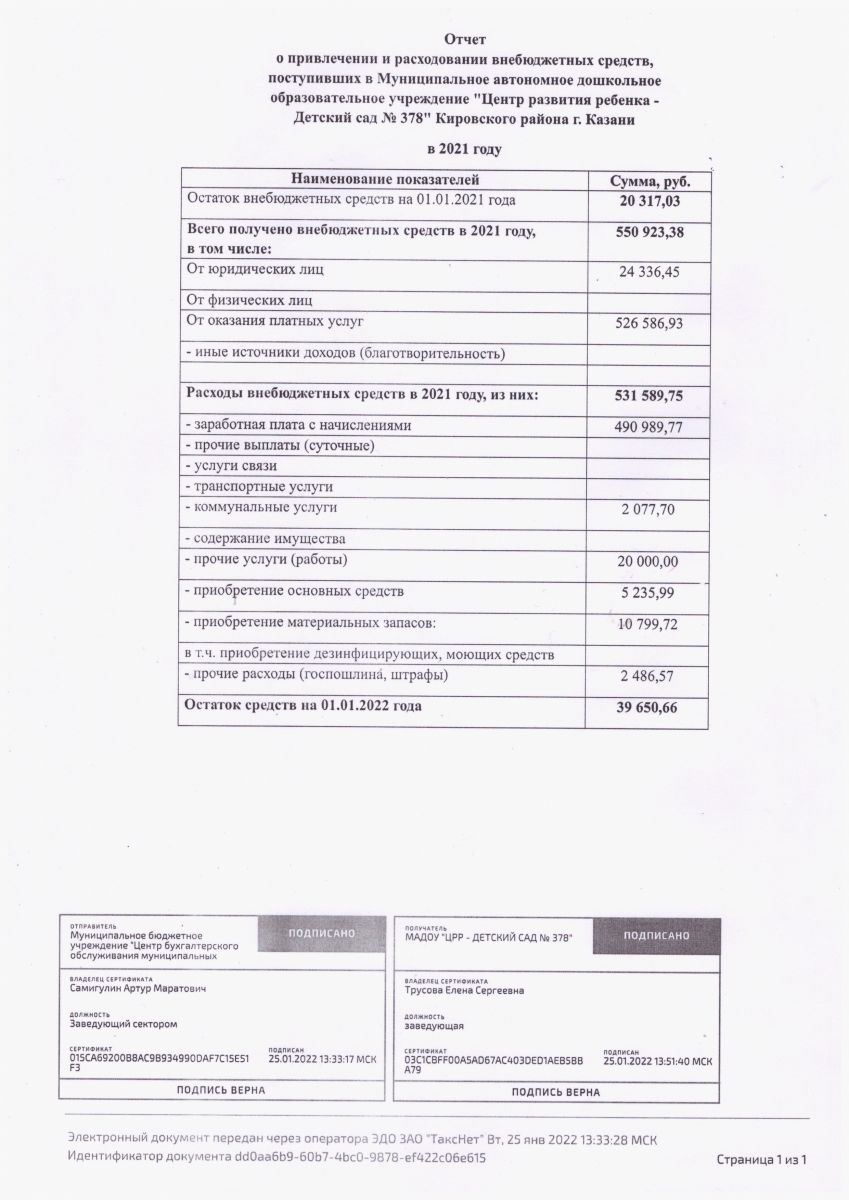 Отчет о привлечении и расходовании внебюджетных средств в 2021 г.