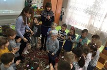 В детском саду прошло агитационно-пропагандиское мероприятие "В стране дорожных знаков". Шлакова Галина Аркадьевна, ведущий специалист отдела профилактики ТУ в г.Казани ГБУ "БДД" провела с детьми познавательные беседы. Ребята поиграли в игры "Собери дорожные знак", посмотрели обучающие мультфильмы "Дорожные дорог".