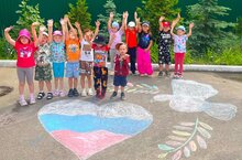 Ребята торжественно стоя послушали Гимн нашей страны, участвовали в игре "Я люблю Россию», вспомнили официальные и неофициальные символы России, танцевали, отгадывали загадки, читали стихи. По окончанию торжественной части дети вышли на улицу и рисовали мелками.