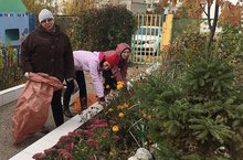 На субботник вышли дружно,Все сегодня уберем,Грабли, метлы, все, что нужноМы с собою принесем!