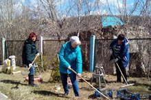На субботник вышли дружно,Все сегодня уберем,Грабли, метлы, все, что нужноМы с собою принесем!Хорошо работать вместе,Ну, дружнее налегай!Станет чисто в этом месте,Приходи зеленый Май!Поработаем на славу,А потом и отдохнем,Всю страну, свою державуМы сегодня уберем!Волчинский Н.И. -