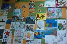Ребята детского сада вместе с родителями организовали выставку детских рисунков, посвященную Дню Победы.