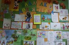 Выставка рисунков по мотивам татарских мультфильмов проходит в нашем детском саду. Все группы принимают в ней участие.