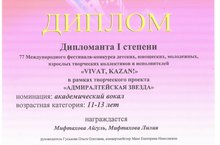 ПОЗДРАВЛЯЕМ ДИПЛОМАНТОВ 77 МЕЖДУНАРОДНОГО ФЕСТИВАЛЬ-КОНКУРСА ДЕТСКИХ, ЮНОШЕСКИХ, МОЛОДЕЖНЫХ, ВЗРОСЛЫХ ТВОРЧЕСКИХ КОЛЛЕКТИВОВ И ИСПОЛНИТЕЛЕЙ "VIVAT, KAZAN!" В РАМКАХ ТВОРЧЕСКОГО ПРОЕКТА "АДМИРАЛТЕЙСКАЯ ЗВЕЗДА" 21.02.2018
