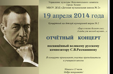 19 апреля 2014 г. в концертном зале Детской музыкальной школы № 2 состоялся отчетный концерт, посвященный творчеству величайшего пианиста, композитора и дирижера 20 века Сергея Васильевича Рахманинова