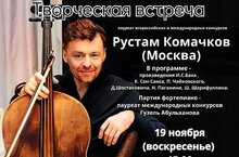 Вчера в зале Детской школы искусств №2 состоялась творческая встреча с одним из самых одаренных виолончелистов своего времени, лауреатом всероссийских и международных конкурсов Рустамом Комачковым (Москва). Музыкантом была представлена программа из произведений И.С.Баха, К.Сен-Санса, Н.Паганини, А.Пьяццоллы и Ш.Шарифуллина. Партию фортепиано исполнила лауреат международных конкурсов Гузель Абульханова. Публика была поражена проникновенностью исполнения музыканта,его необыкновенным звуком, тончайшим пианиссимо, темпераментом и слаженностью ансамбля.После окончания встречи артиста долго не хотели отпускать со сцены,зрители брали автографы,фотографировались с музыкантом,общались.Казань надолго запомнит удивительное звучание виолончели Рустама Комачкова!