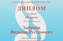 Международная музыкальная премия «SFORZANDO» Садриева Гузель - Лауреат 1. Хамидуллина Диана - Лауреат1. Додин Платон & Абульханова Гузель Шамильевна - Лауреат 2. Файзетдинова Марта - Лауреат 3. Ненастина Валерия - Лауреат 3. Галявиева Риана - Лауреат 3. Городской конкурс юных дарований «Живи. Твори. Побеждай.» Мезин Михаил - Лауреат1. Князева София - Лауреат2. Хамидуллина Диана - Лауреат 2. Залялутдинова Камилла - Лауреат 3. Преподаватели Абульханова Гузель Шамильевна, Гарифзянова Диляра Сагитовна, Видеман Светлана Леонидовна. Желаем новых свершений и побед!
