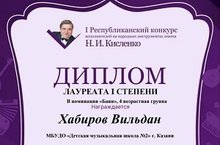 Поздравляем победителя I Республиканского конкурса исполнителей на народных инструментах имени Н.И. Кисленко