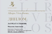 Поздравляем Лауреат I степени V Международного конкурса исполнительского мастерства Allegro. Vivo. Presto SFORZANDO 14.11.2021