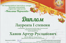 Поздравляем Лауреата I степени XXI Международного фестиваль-конкурса детского, юношеского и взрослого творчества «Поколение творчества» 21.11.2021