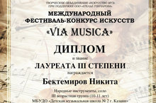 Поздравляем лауреата Международного фестиваль-конкурса искусств «VIA MUSICA” ! 25.10.2021