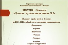 ДЕТСКАЯ МУЗЫКАЛЬНАЯ ШКОЛА №2 ОБЪЯВЛЯЕТ ПРИЁМ УЧАЩИХСЯ НА 2020-2021 УЧЕБНЫЙ ГОД 01.06.2020