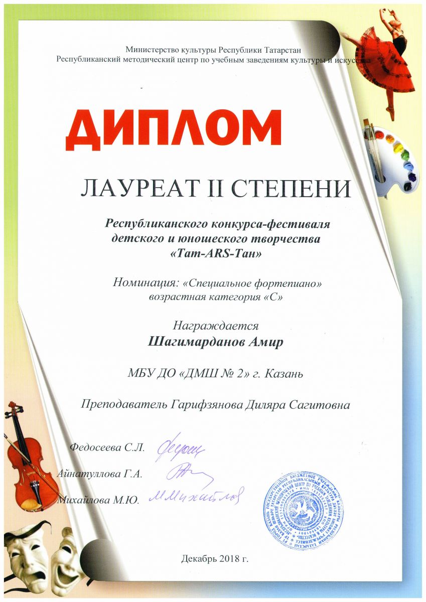 Шагимарданова Амира, с присвоением звания ЛАУРЕАТ II СТЕПЕНИ Класс преподавателя Д.С.Гарифзяновой.