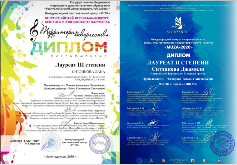 ДЖАМИЛЮ СИТДИКОВУ (фортепиано) с присвоением звания ЛАУРЕАТ II СТЕПЕНИ Международного конкурса "MUZA-2020", класс преподавателя Т.А.ФЁДОРОВОЙ;